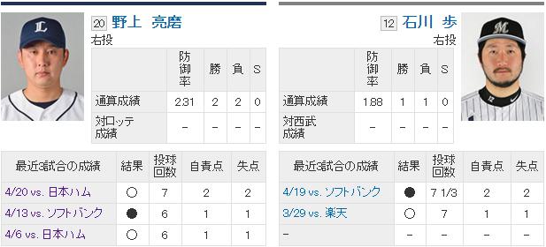 野上は順番的にたぶん次のロッテ戦の初戦やね