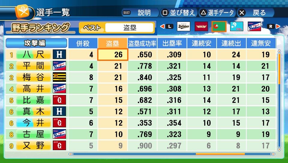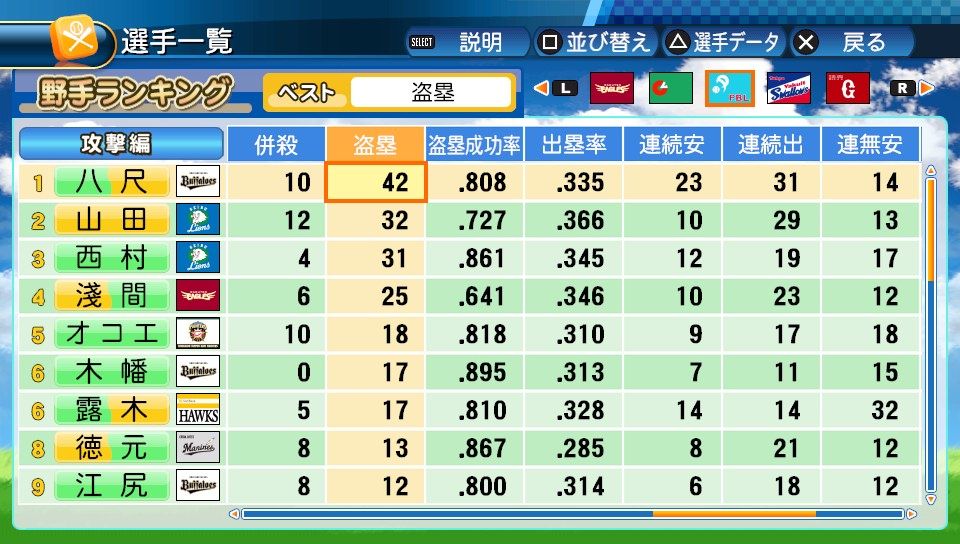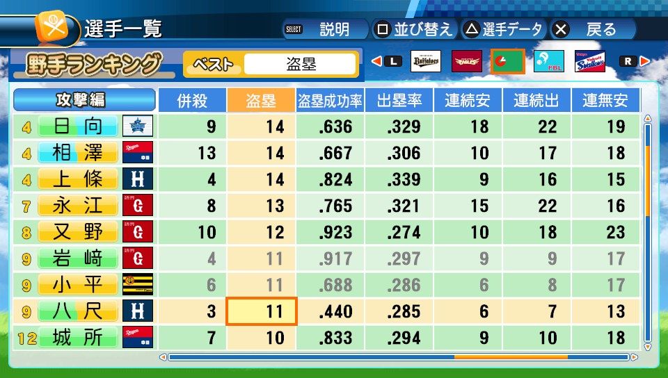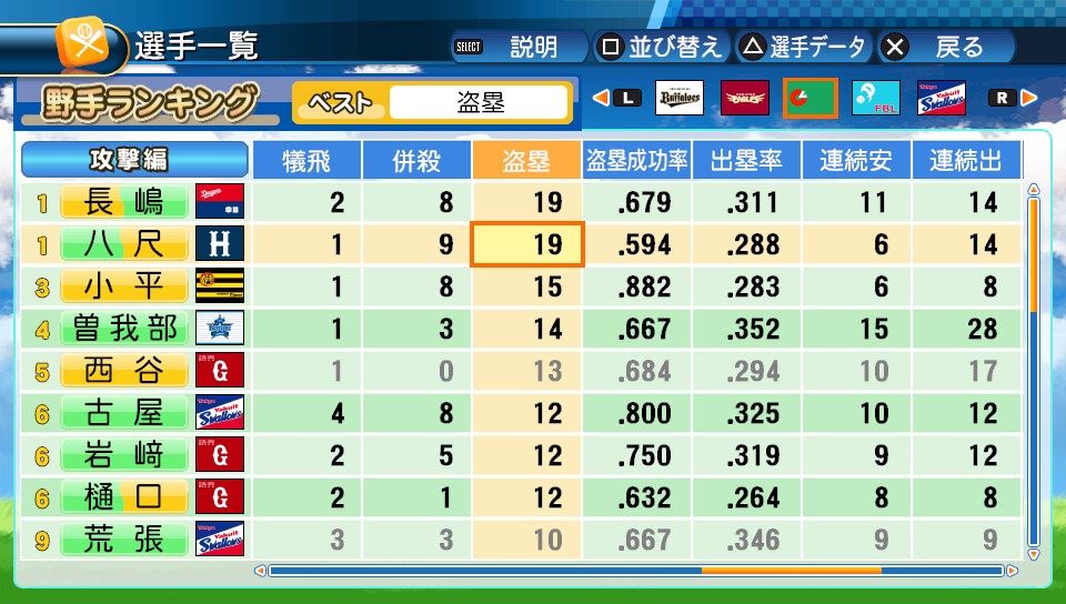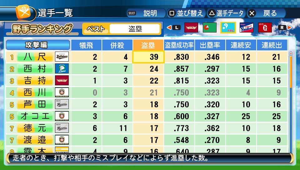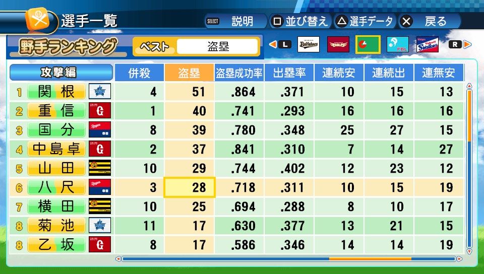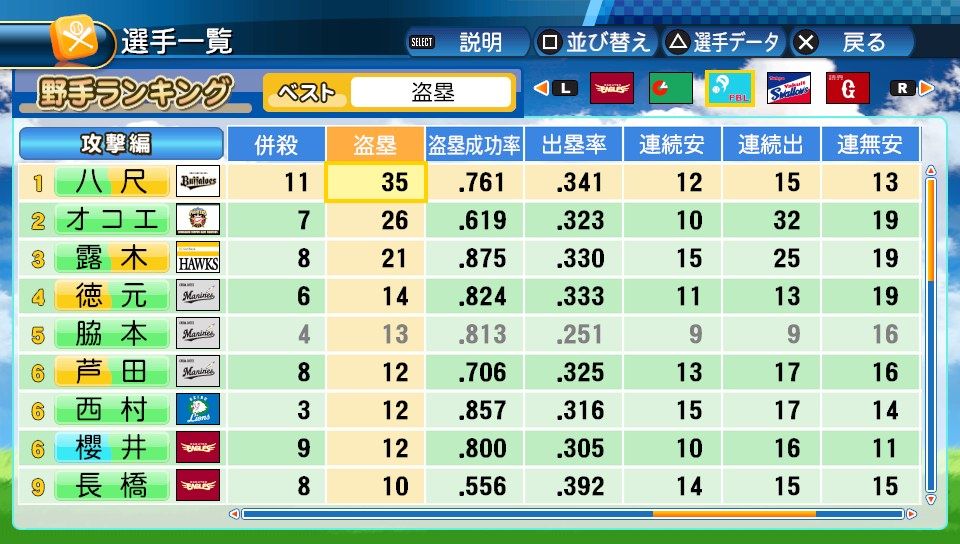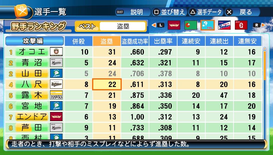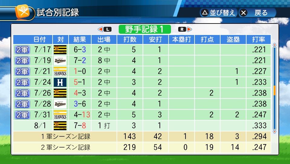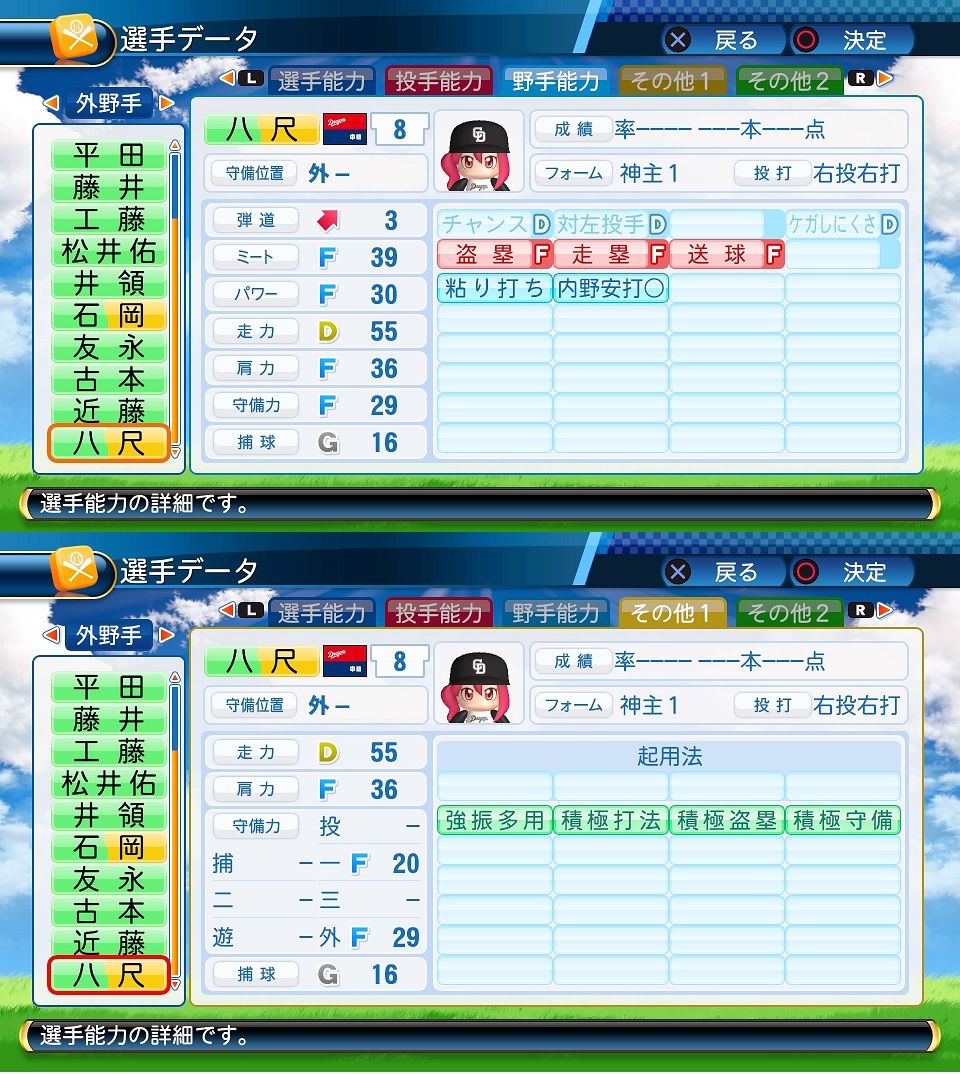 弾3FFCFFG 盗塁F 走塁F 送球F 粘り打ち 内野安打○