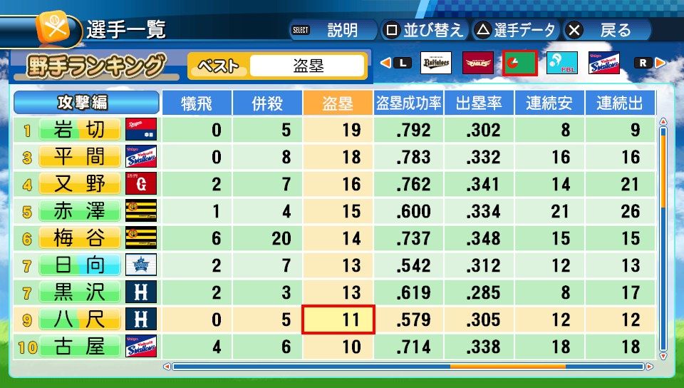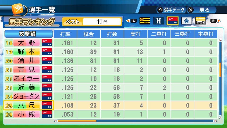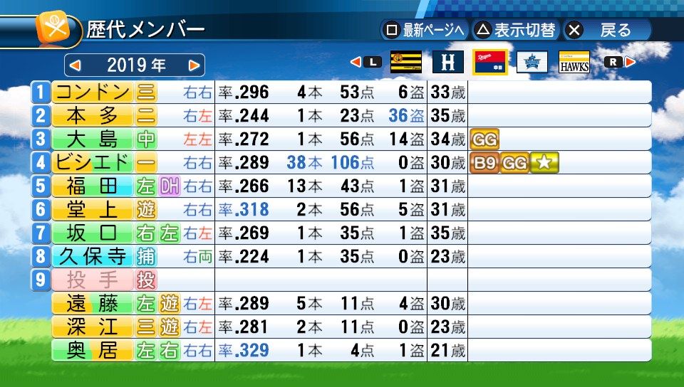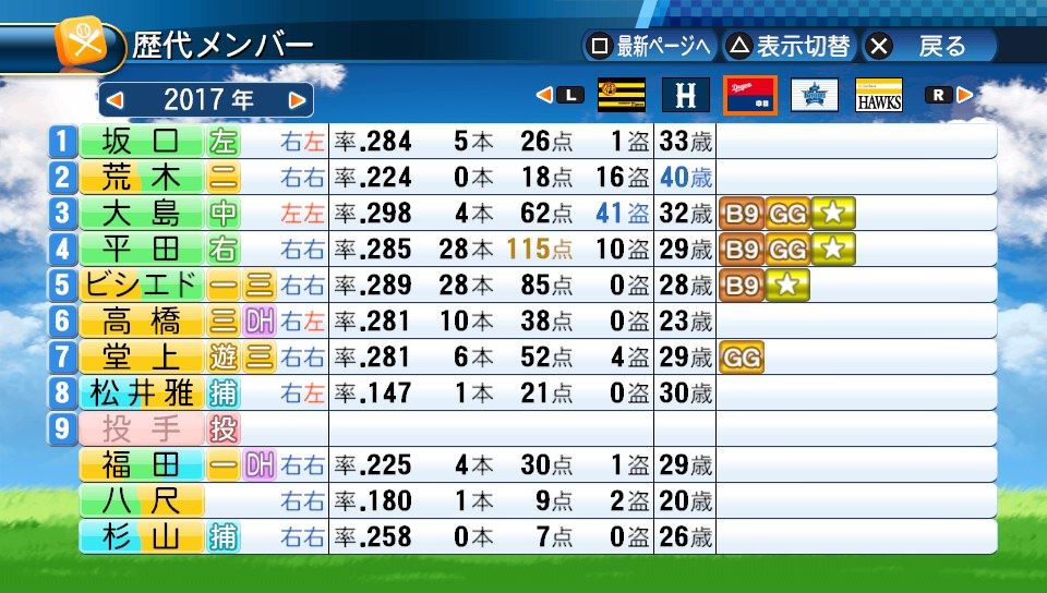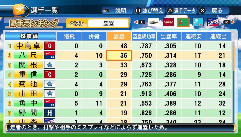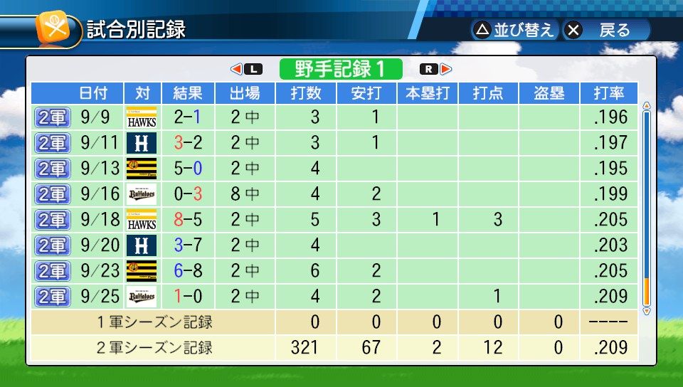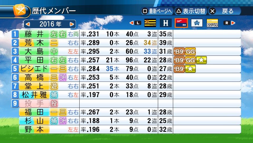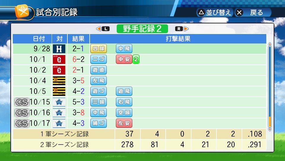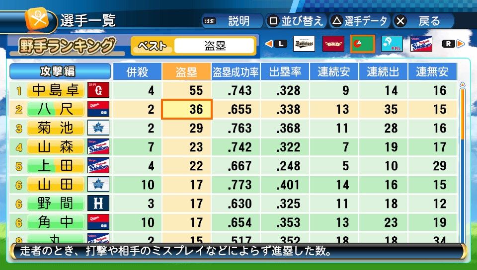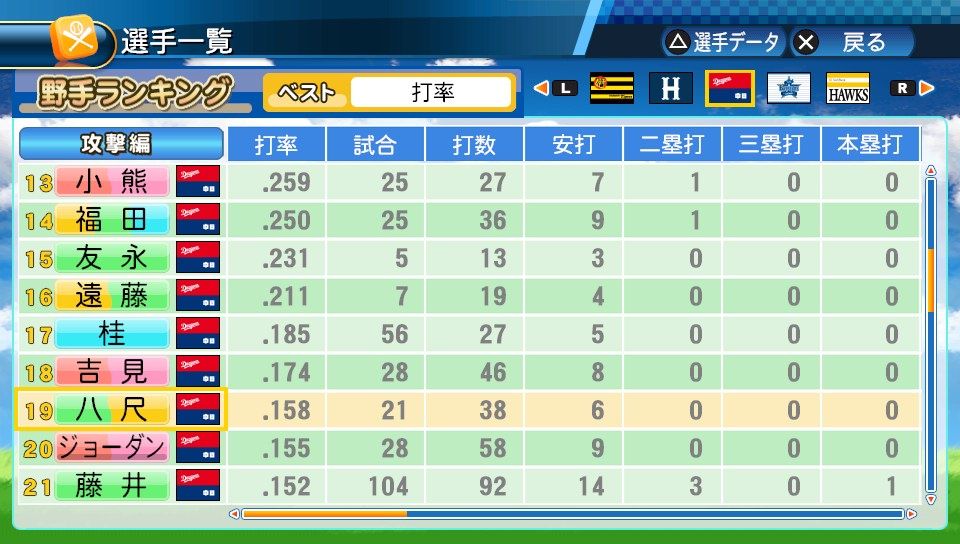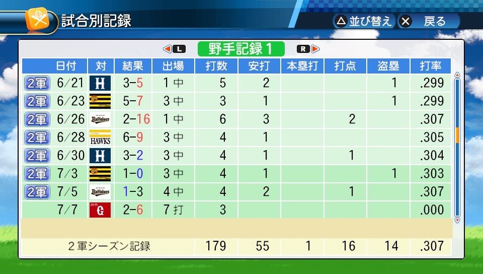 弾3FFCFFG 盗塁F 走塁F 送球F 粘り打ち 内野安打○