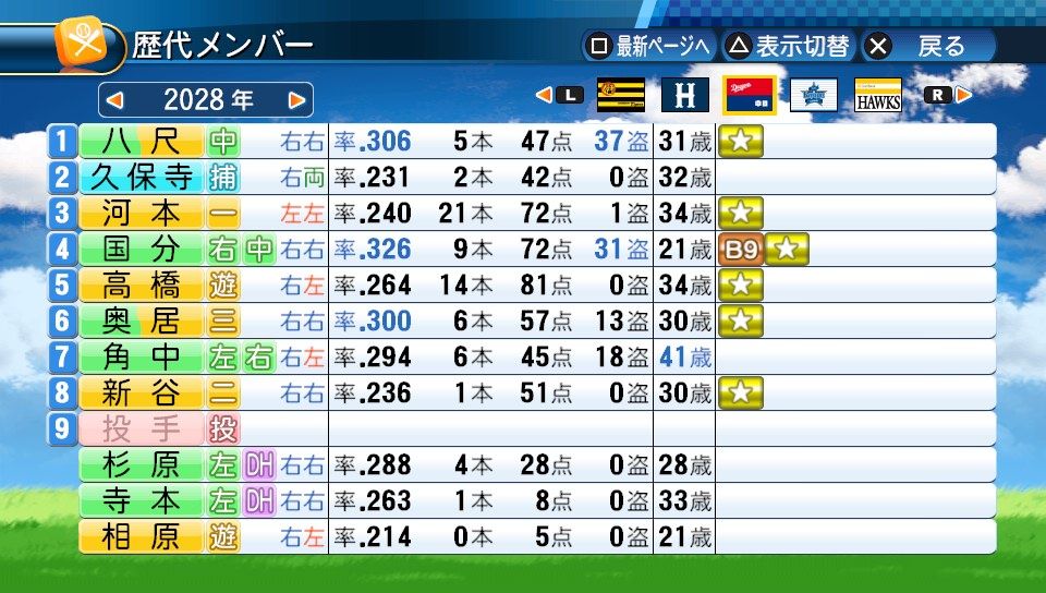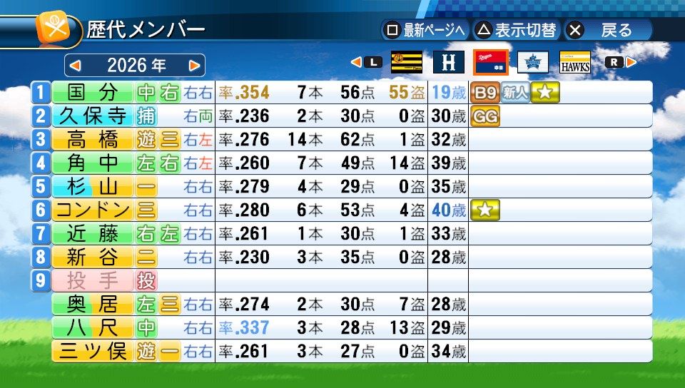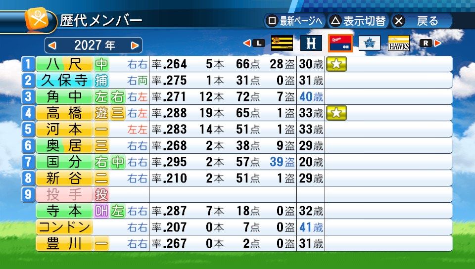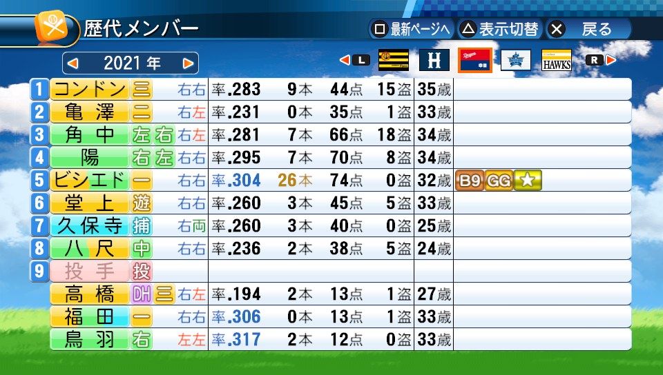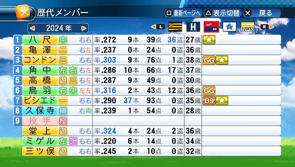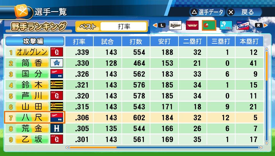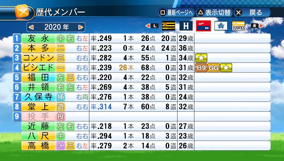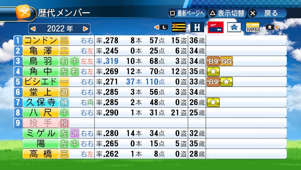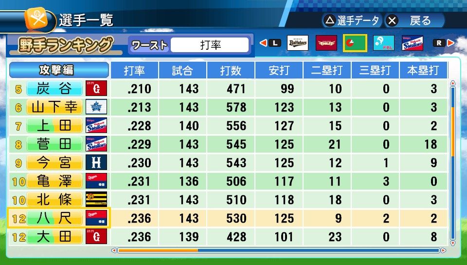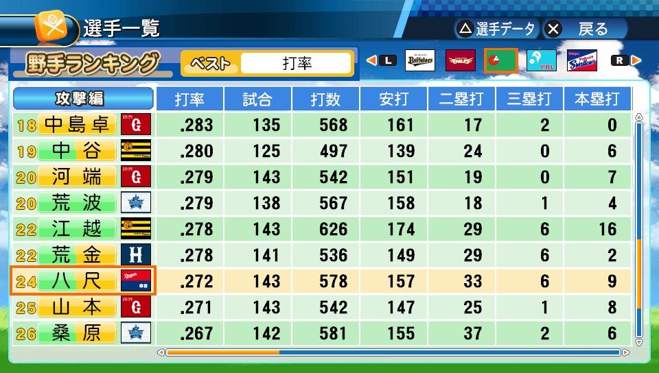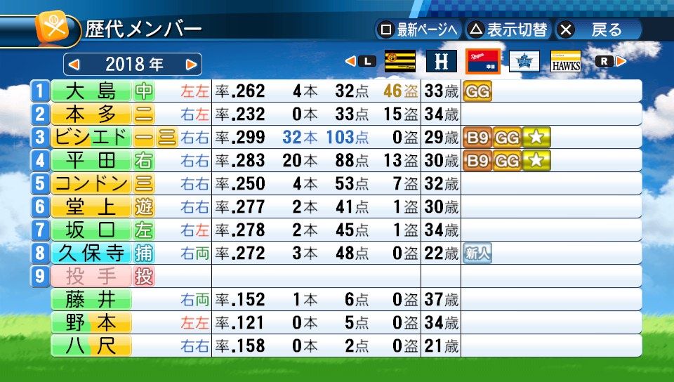 弾3FFCFFG 盗塁F 走塁F 送球F 粘り打ち 内野安打○