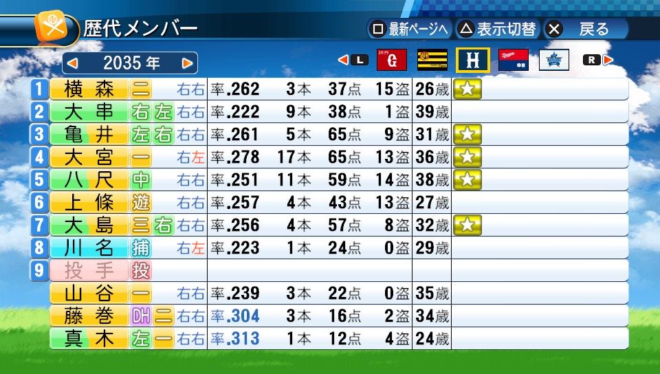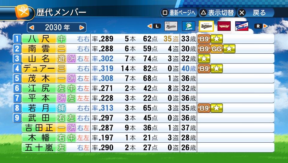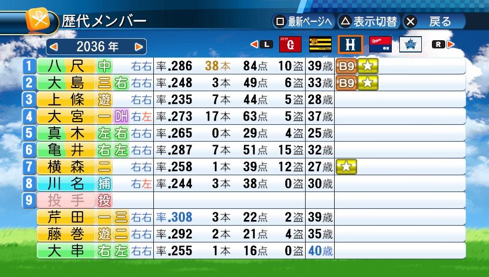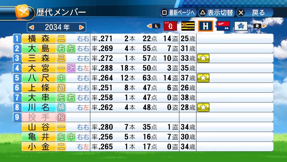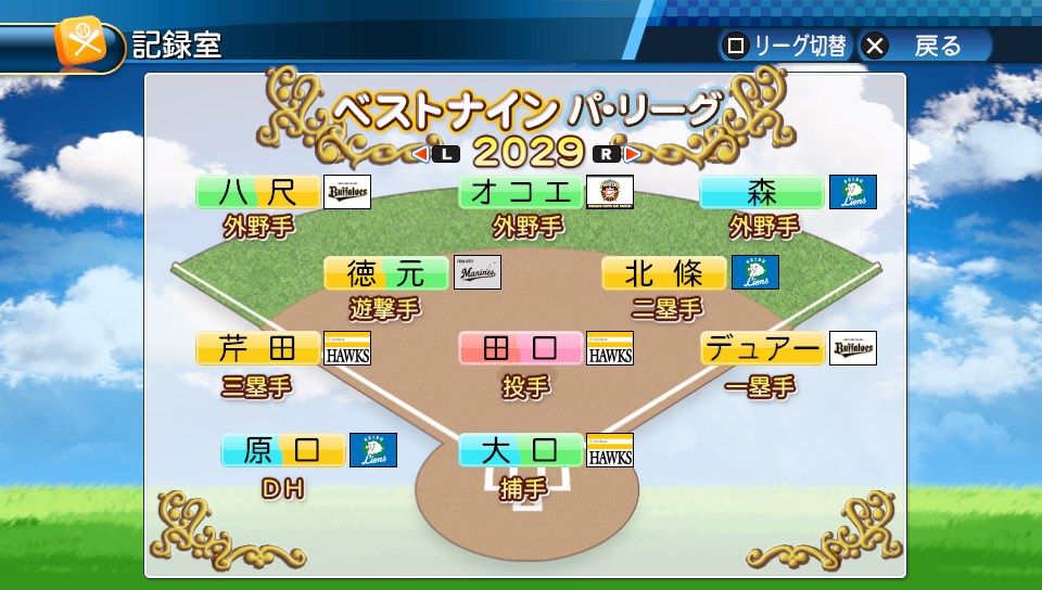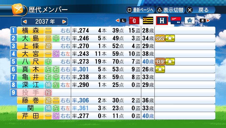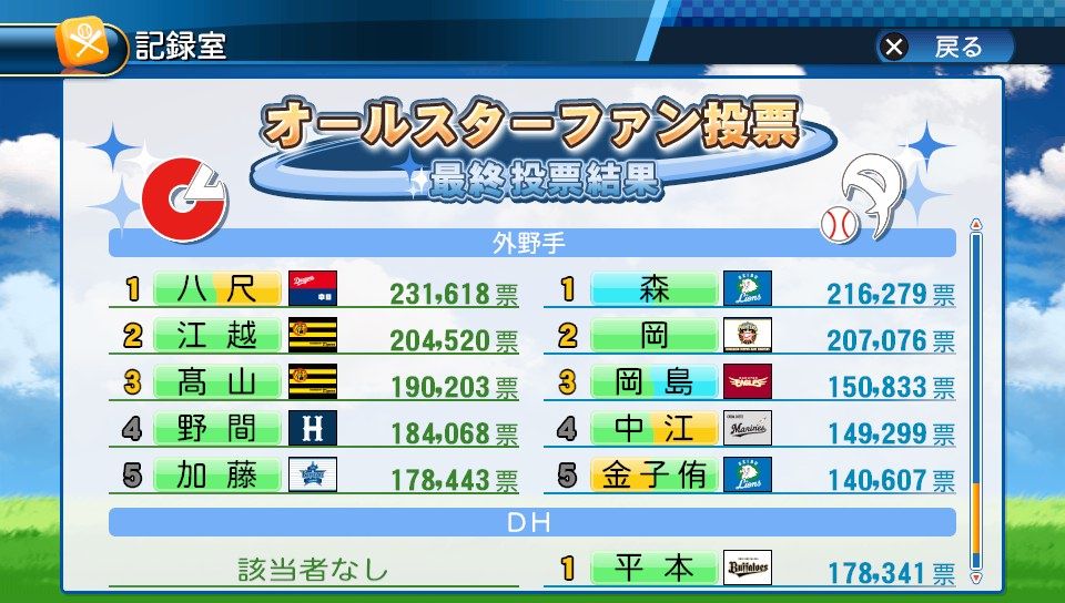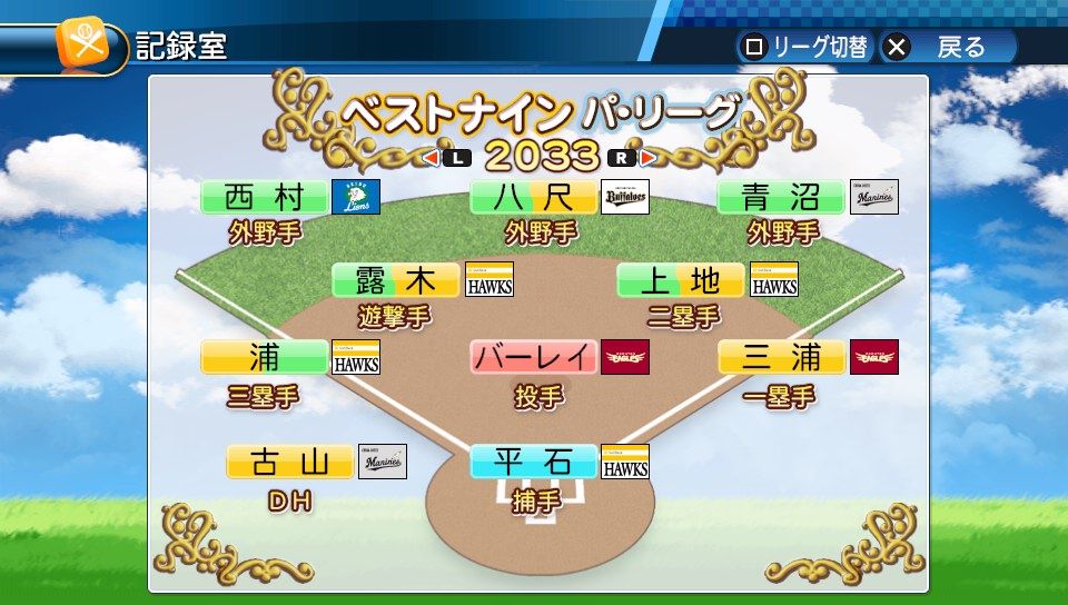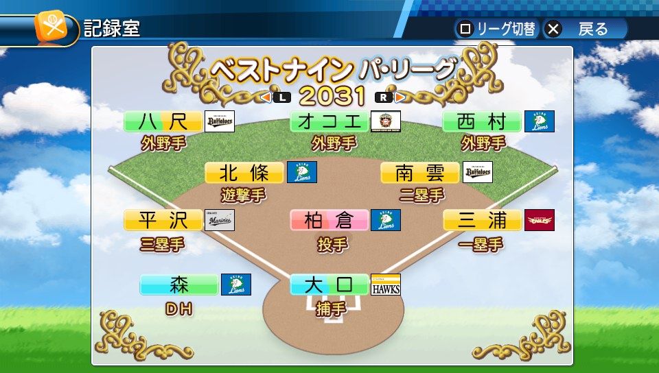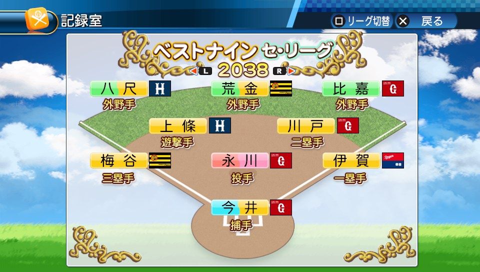 ベストナイン外野手 7回(2029~2031・2033・2036~2038)