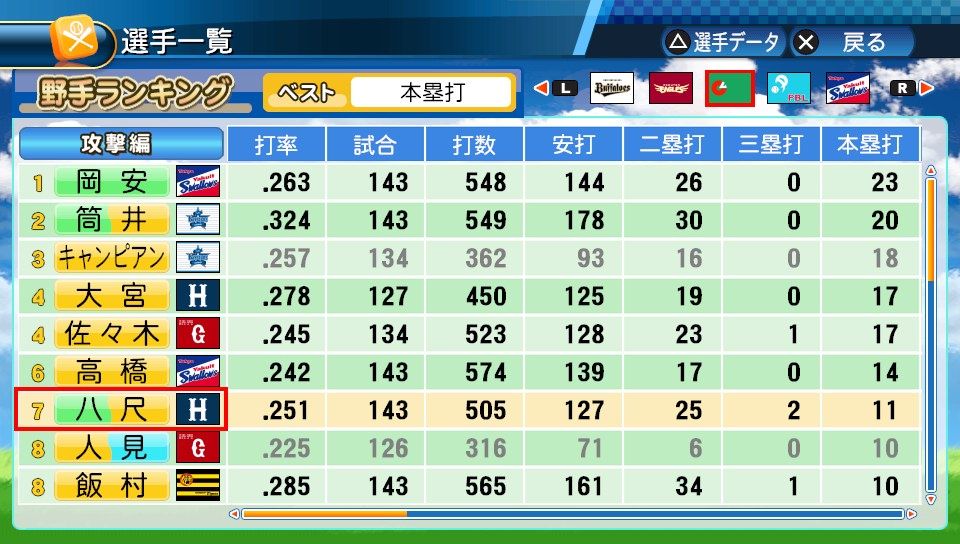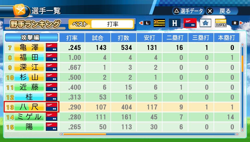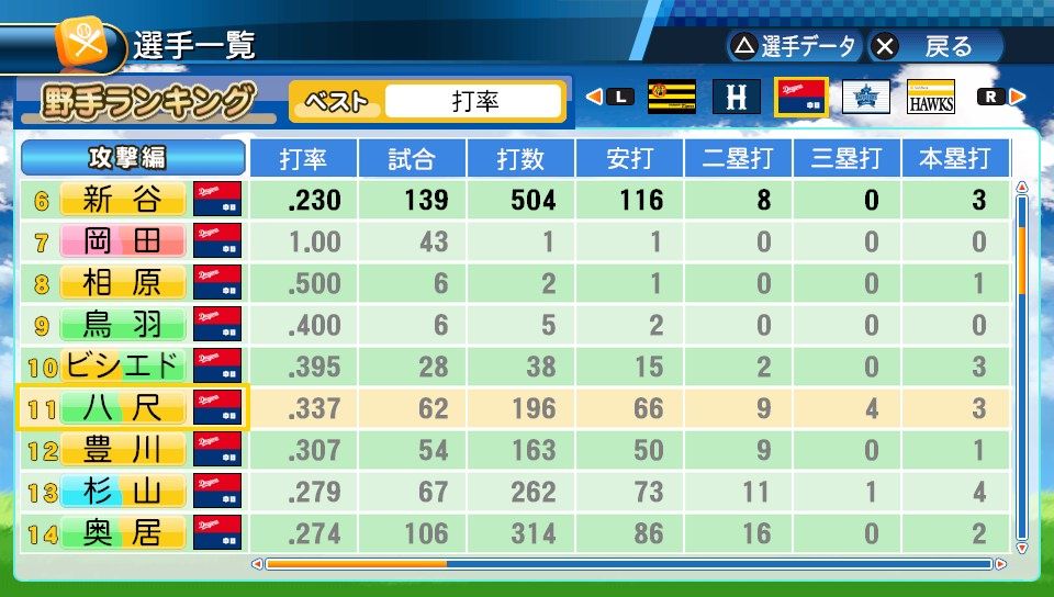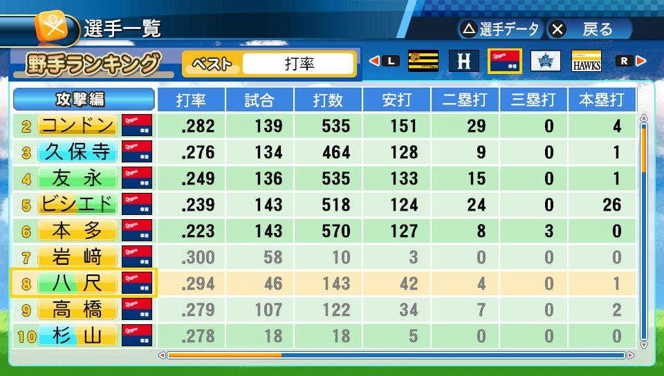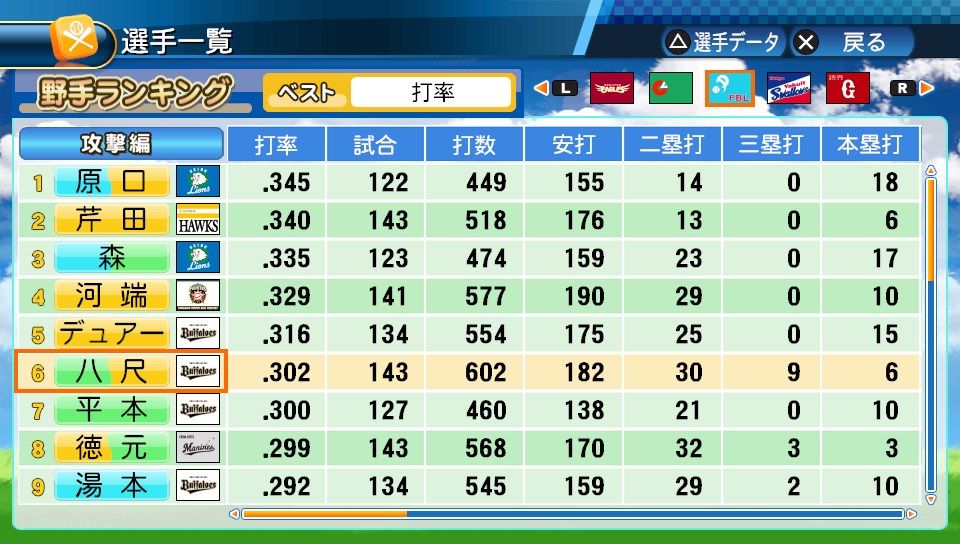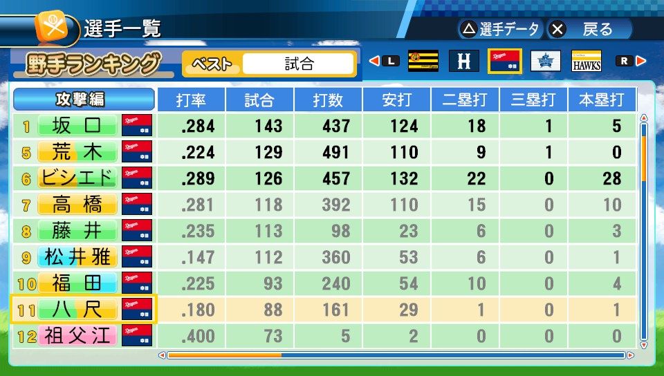 弾3FFBFFG 盗塁F 走塁F 送球F 粘り打ち 内野安打○