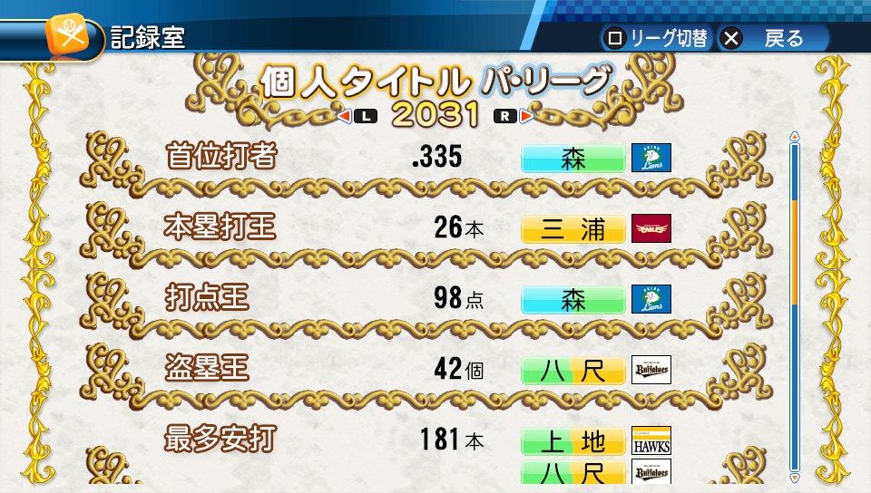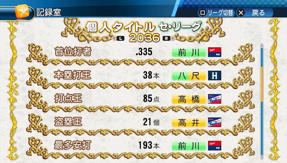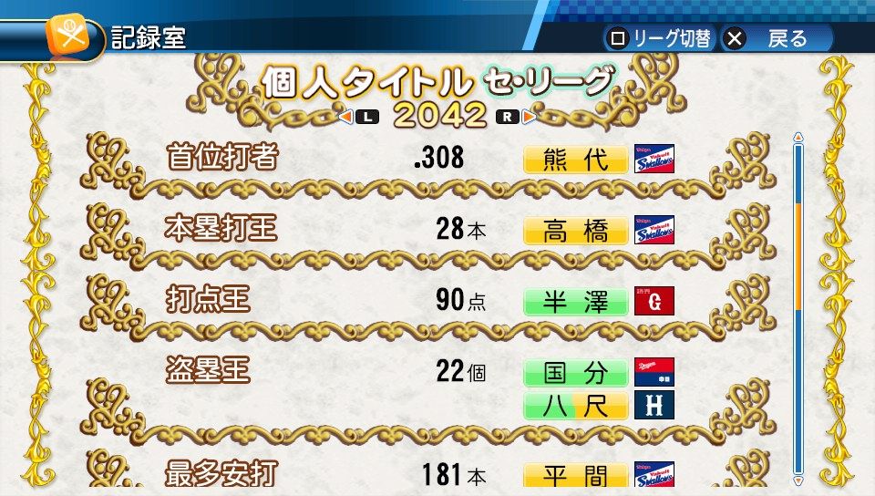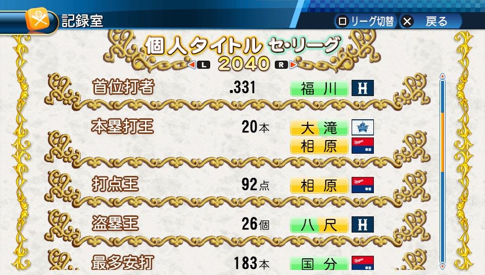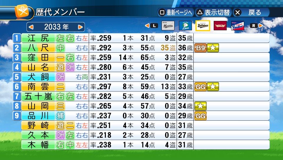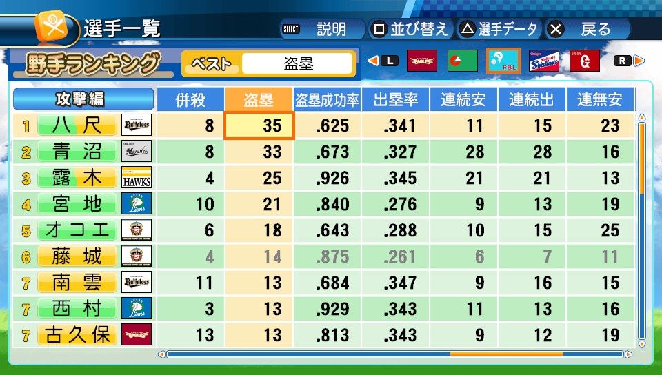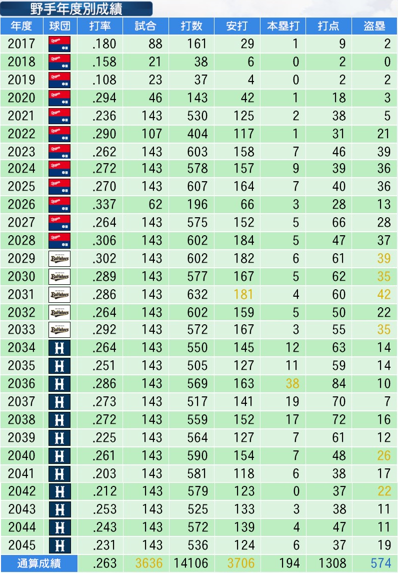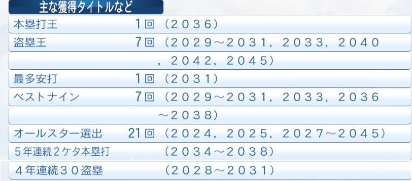 盗塁王 7回(2029~2031・2033・2040・2042・2045)
