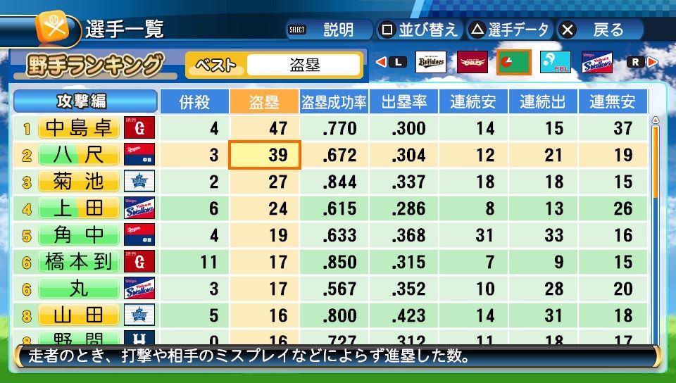 11盗塁は記録するも盗塁成功率が5割を切るなど