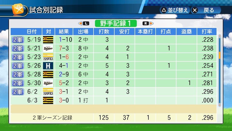 .296(125打数37安打) 1本塁打 5点 2盗塁