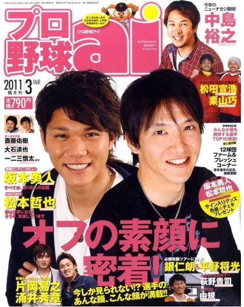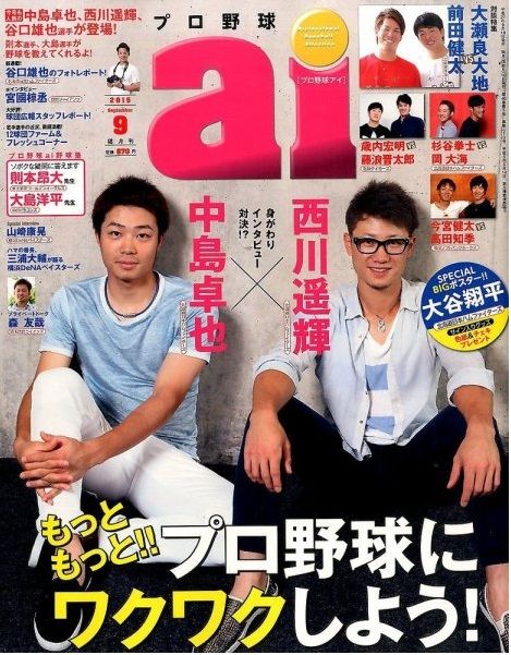 ファイターズ特集を7月号でやった直後の9月号で西川・中島のW表紙。特集の売り上げが良かったためか・・・