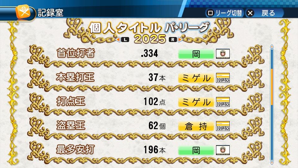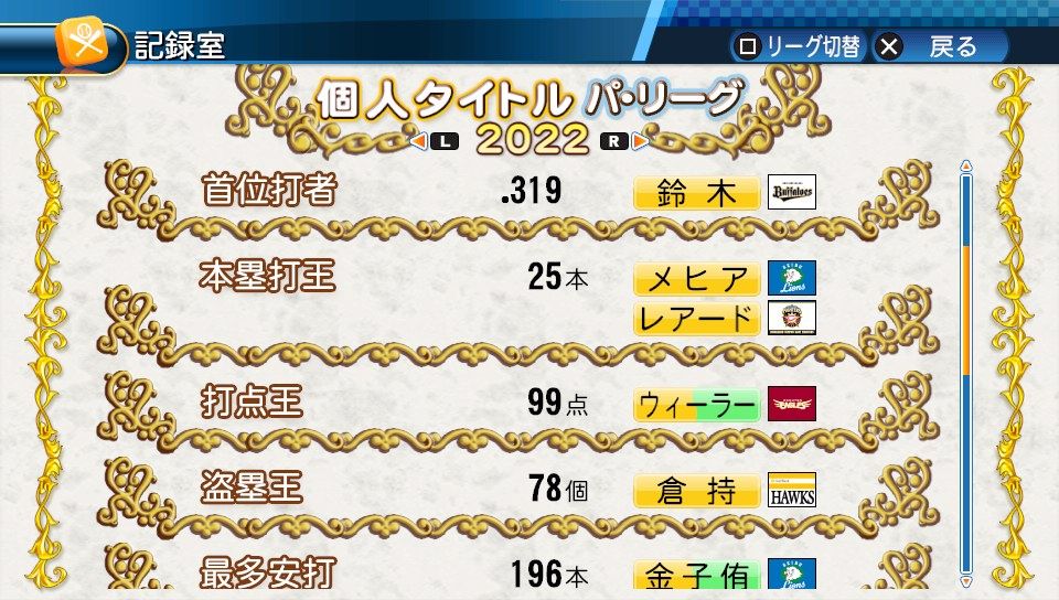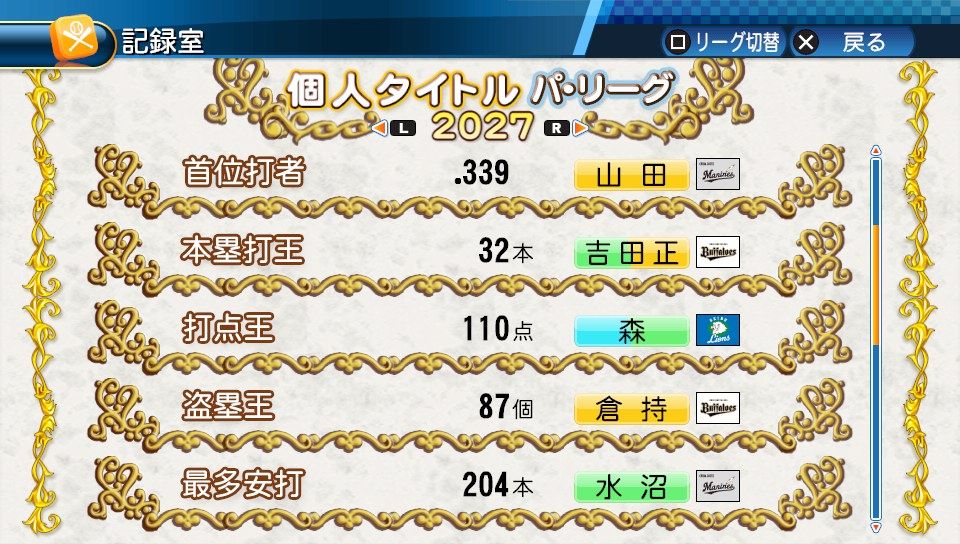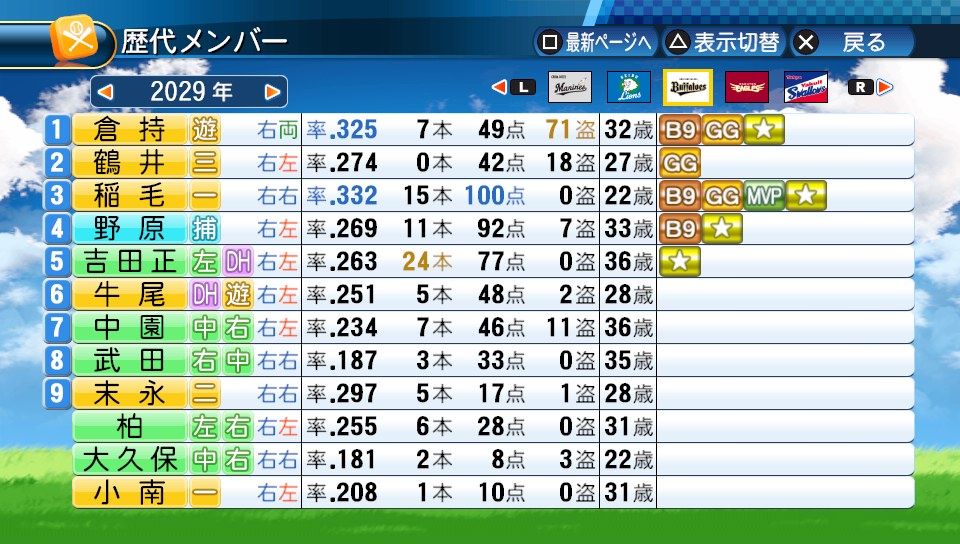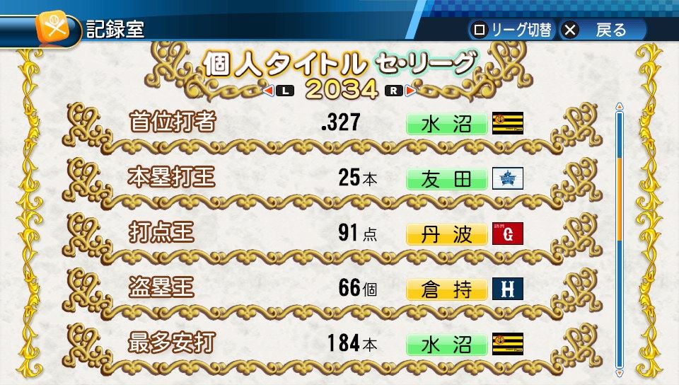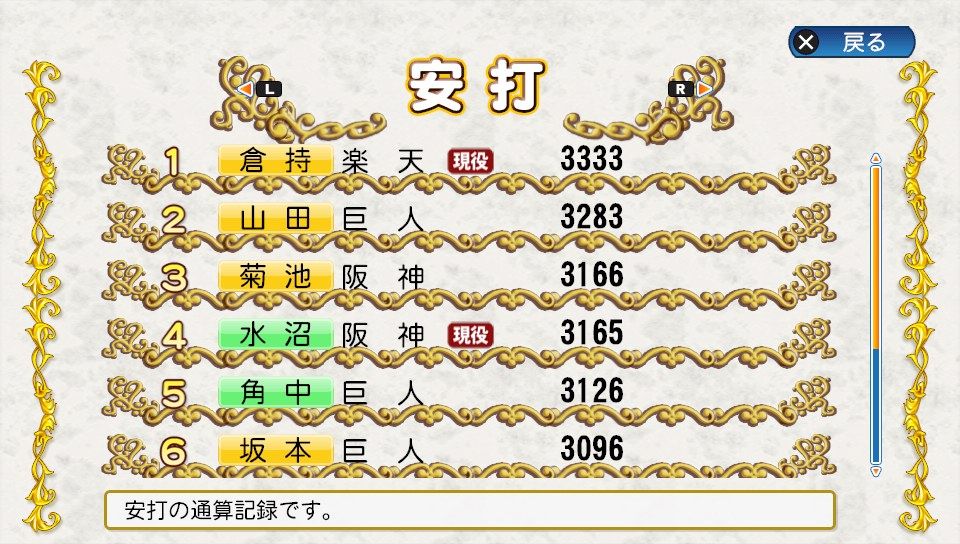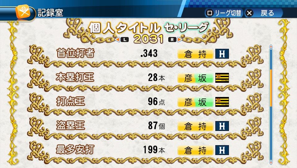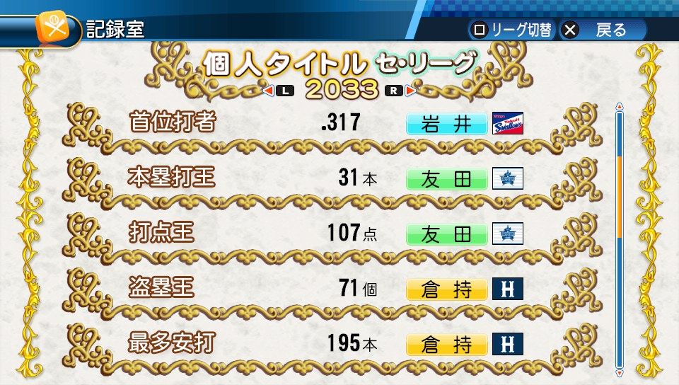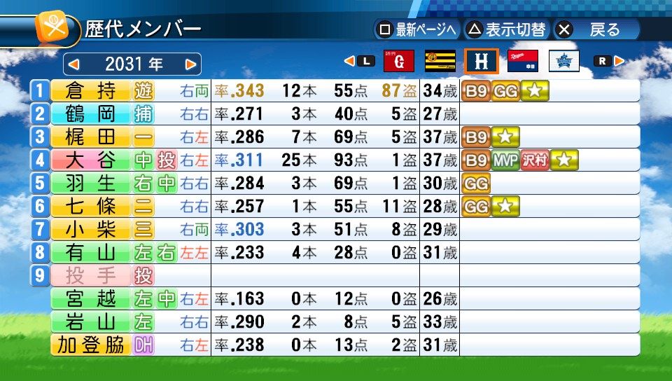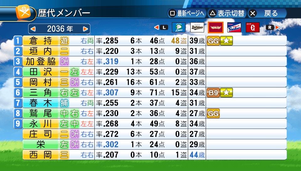 弾2DEADBC 対左B ケガC 盗塁A 走塁C 送球B バント○ 内野安打○ 固め打ち チャンスメーカー 三振 満塁男 サヨナラ男 ヘッスラ 守備職人