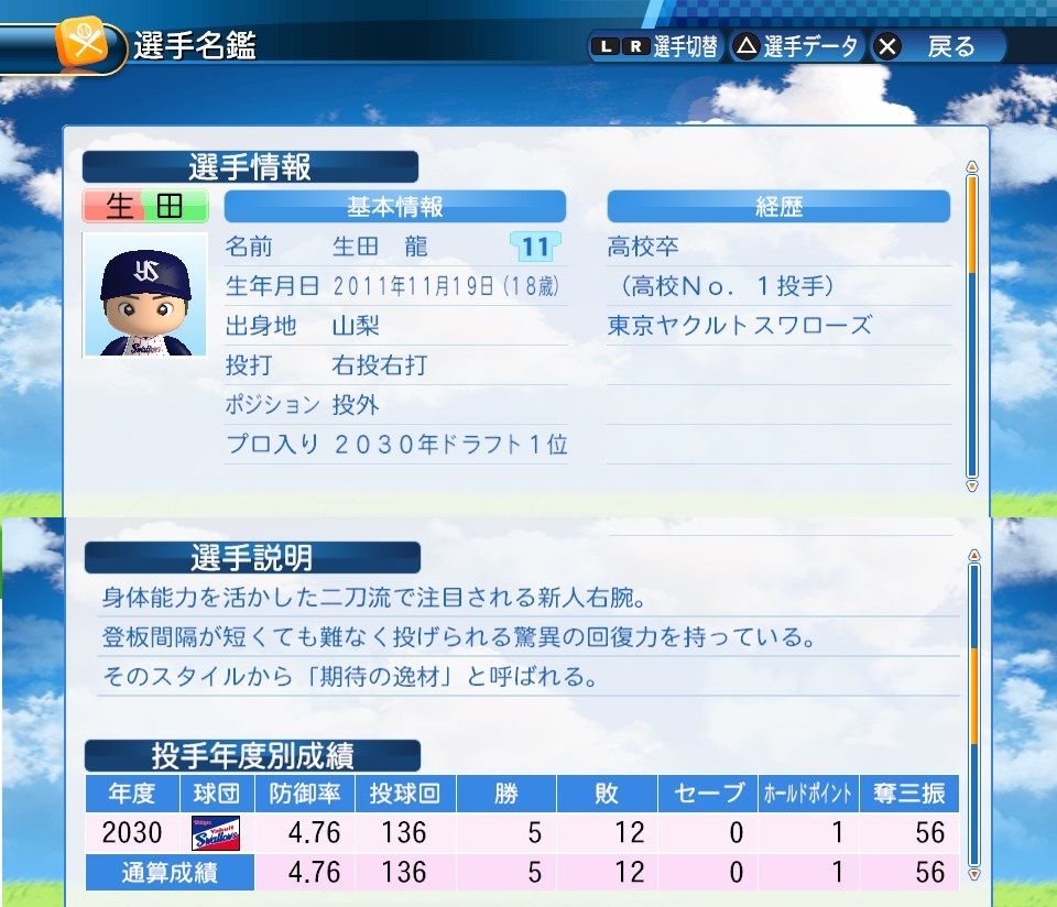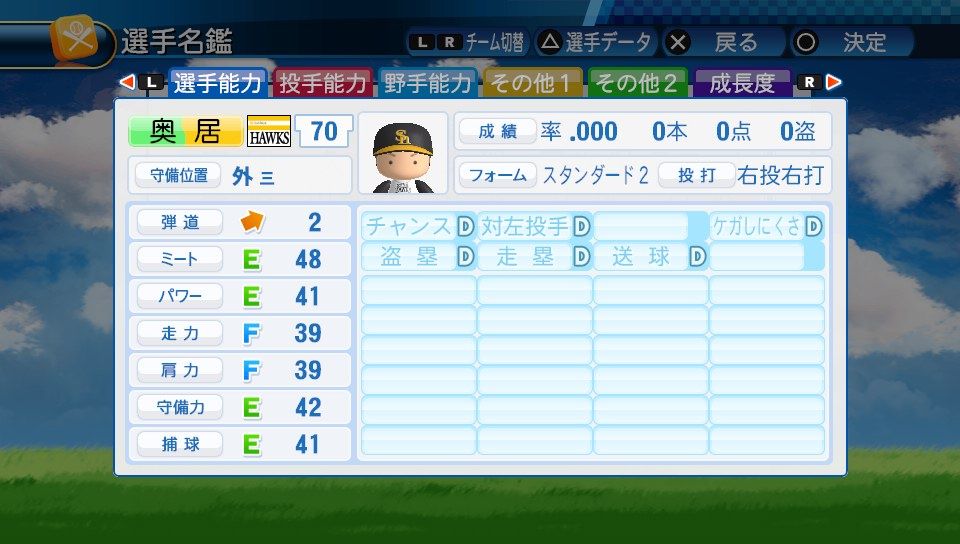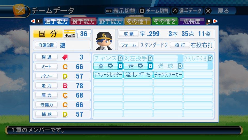 弾2DDSECB チャンスC 盗塁A 走塁B 送球B バント○ 内野安打○ チャンスメーカー ヘッスラ 守備職人