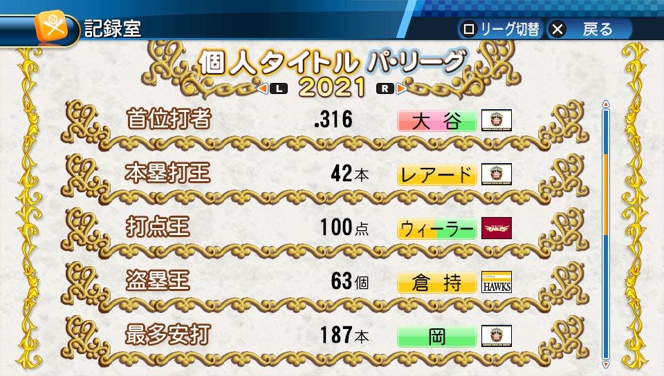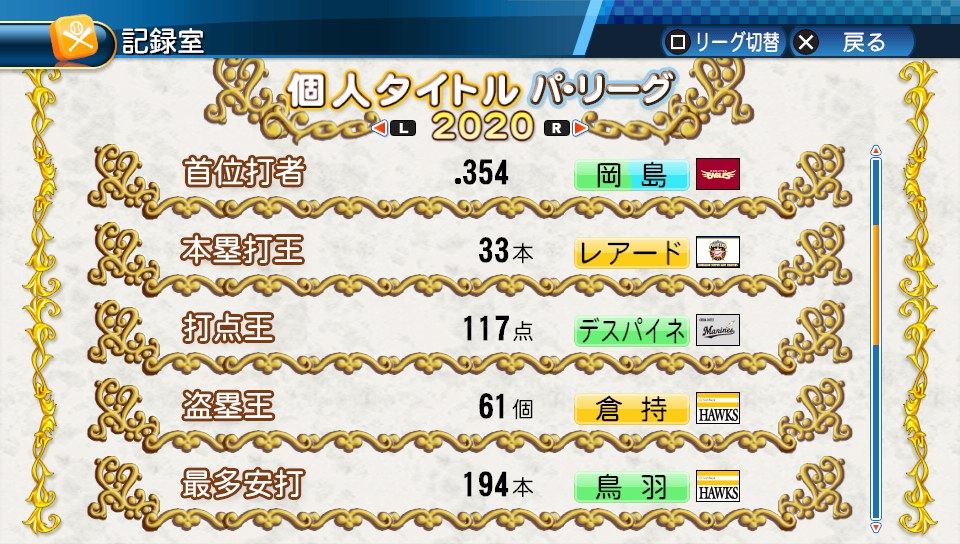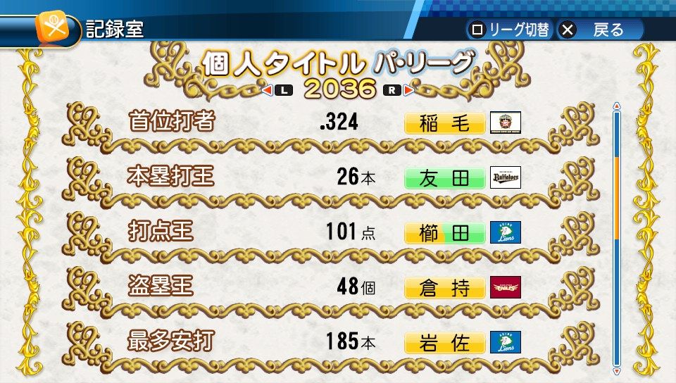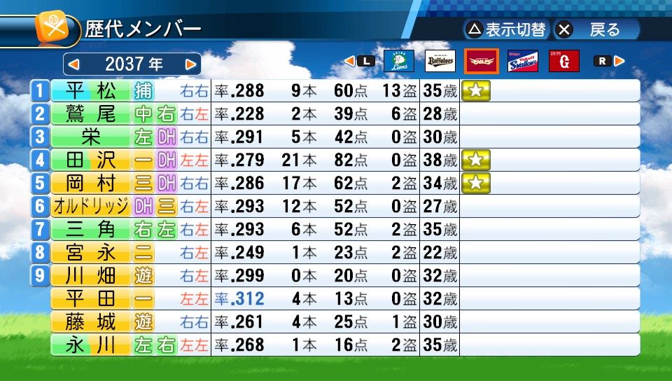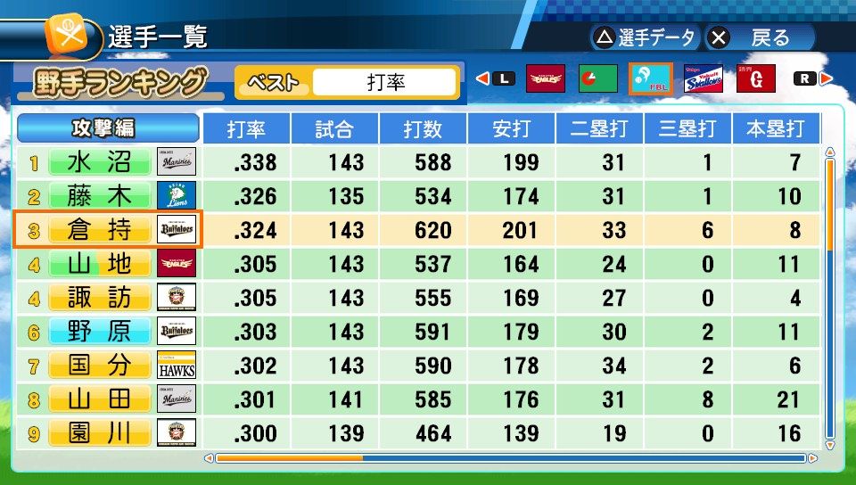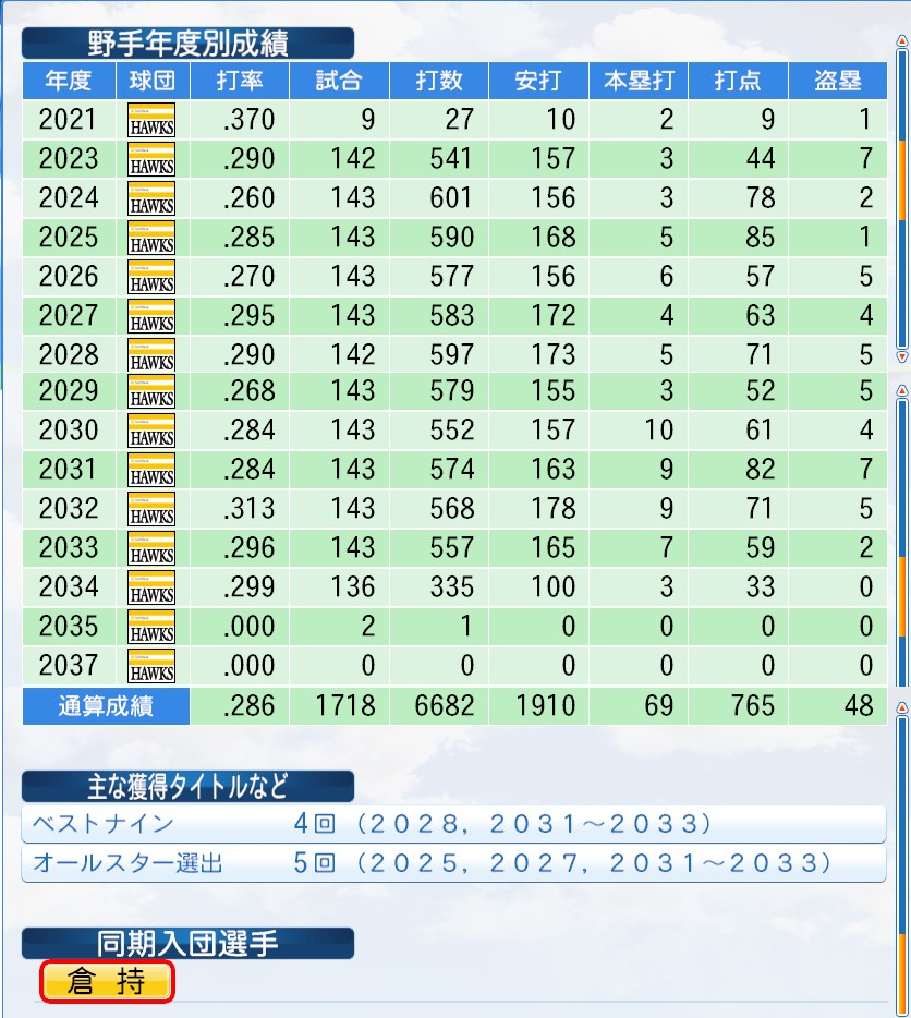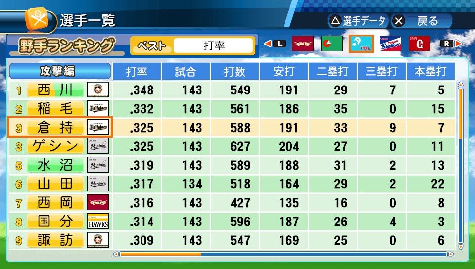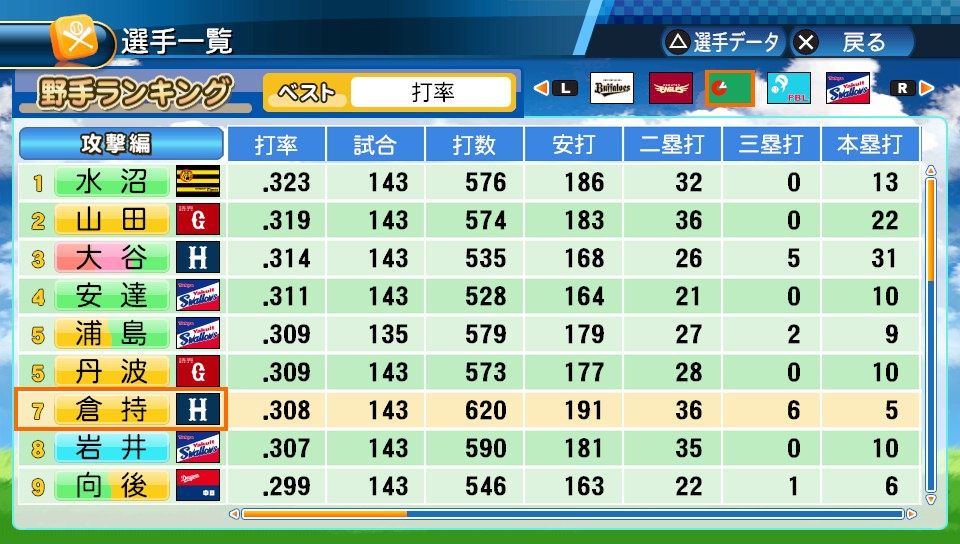 弾2DEBDBC 対左B ケガC 盗塁A 走塁B 送球B バント○ 内野安打○ 固め打ち チャンスメーカー 三振 満塁男 サヨナラ男 ヘッスラ 守備職人
