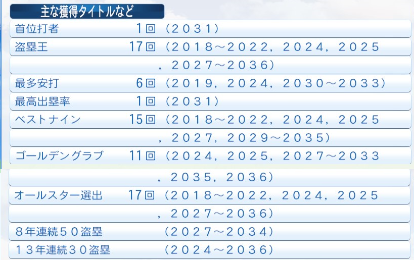 盗塁王 17回 (2018~2022・2024・2025・2027~2036)