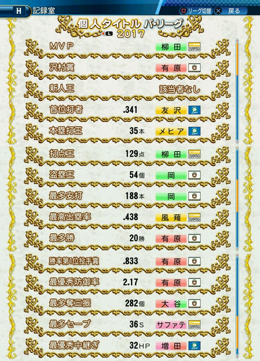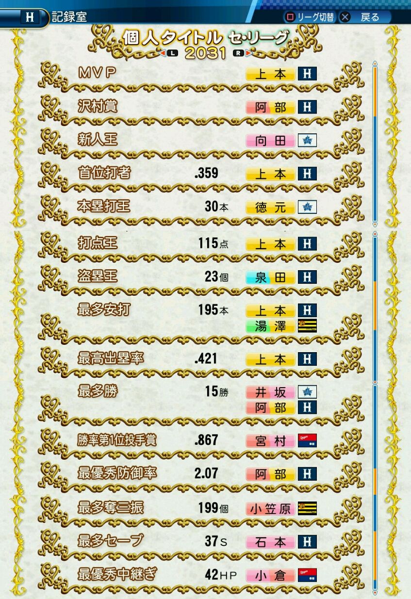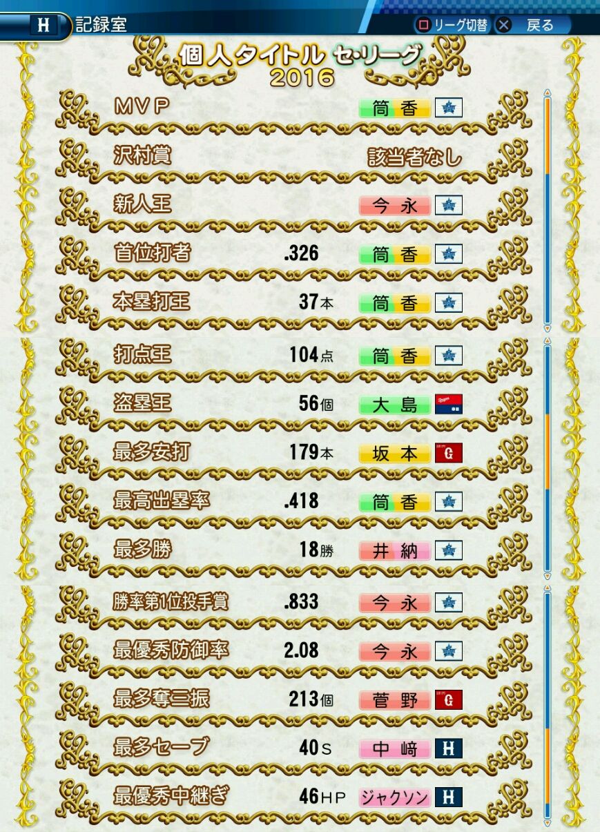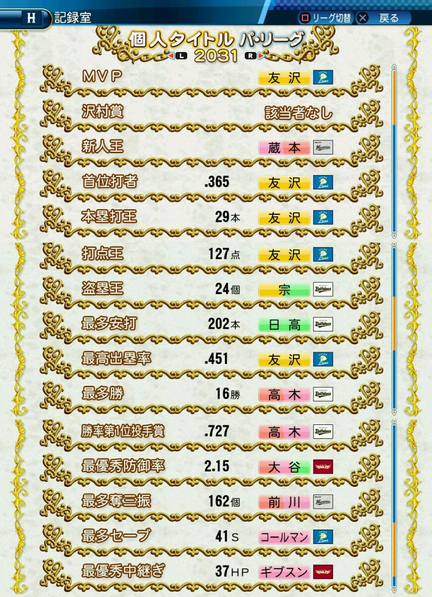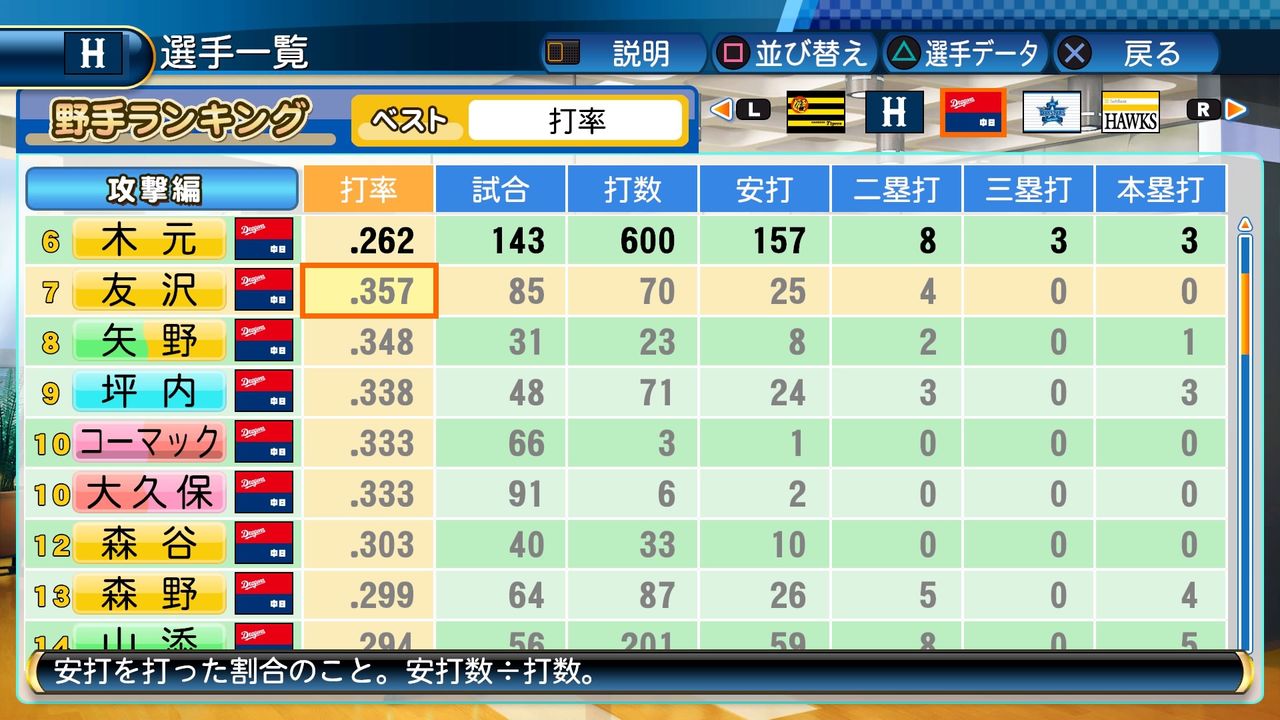 タイトルなしだから引き分け!wもそうだけど、所属チーム違うと打点だとかチーム事情によるレギュラーの取りやすさとか色々と条件が違くなるんだからこのシリーズの致命的な部分だよなあ