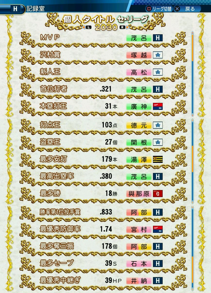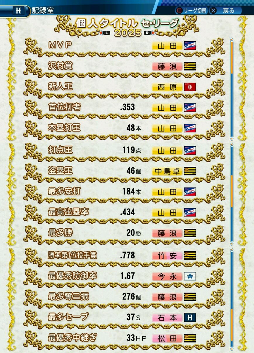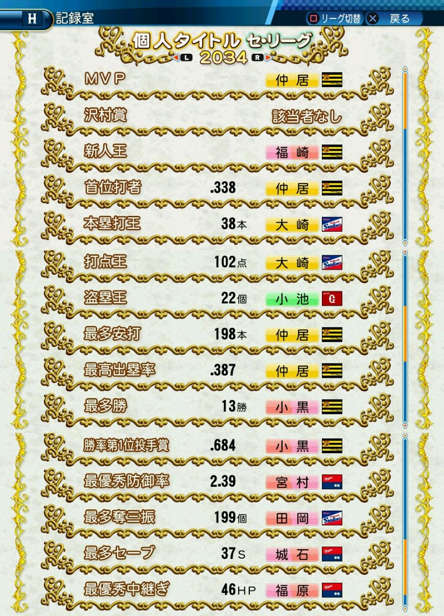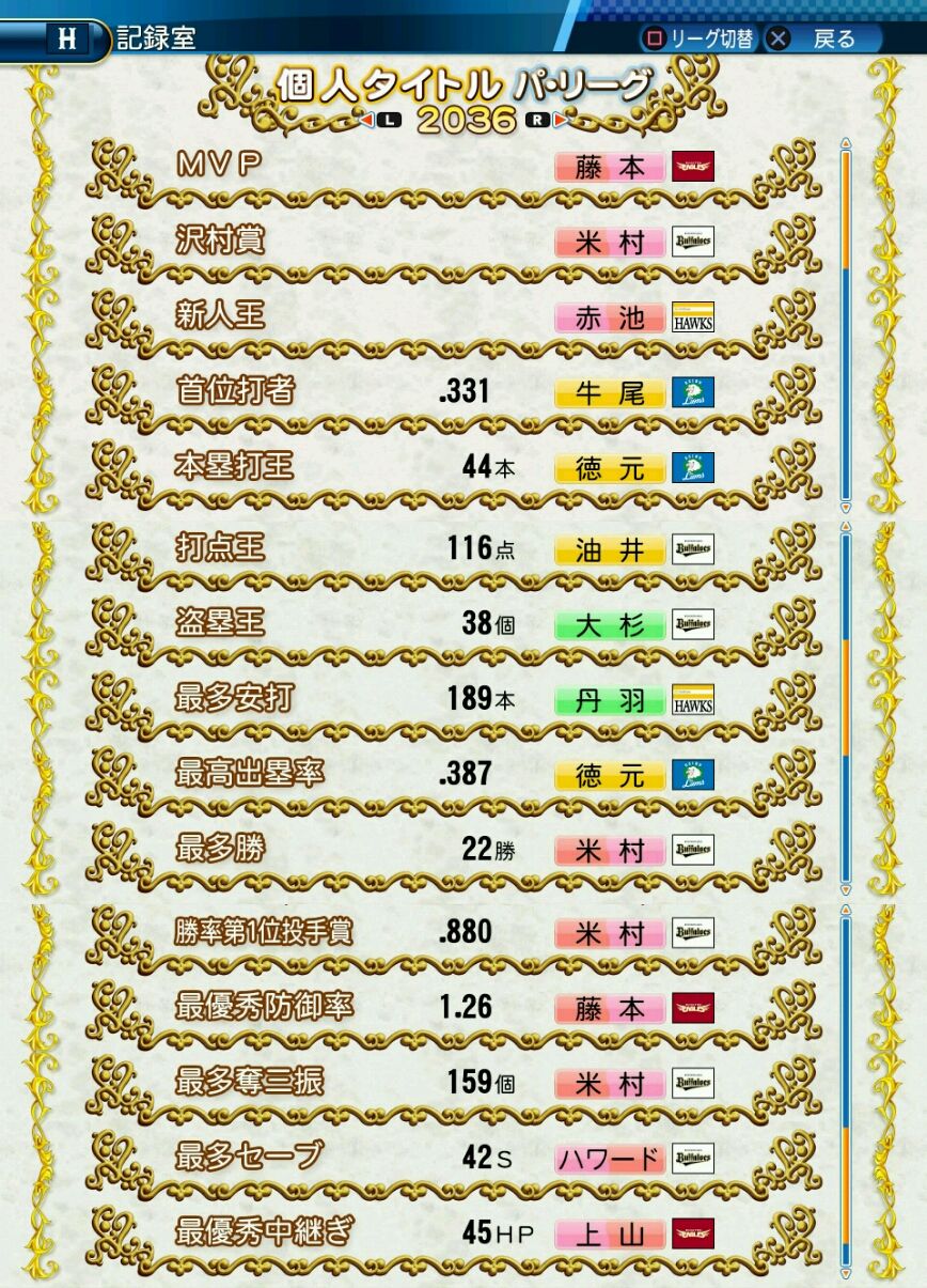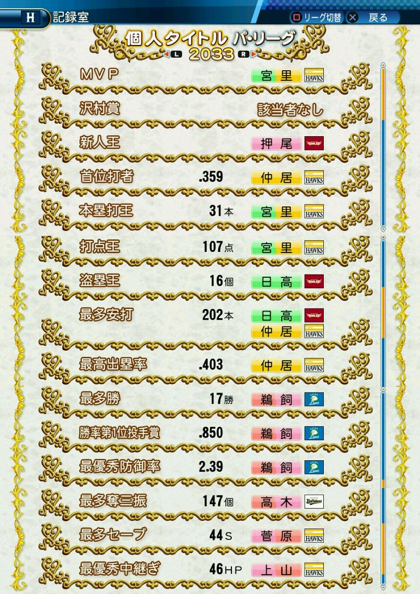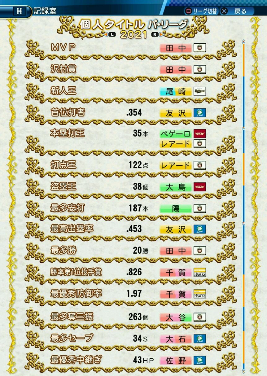 タイトルなしだから引き分け!wもそうだけど、所属チーム違うと打点だとかチーム事情によるレギュラーの取りやすさとか色々と条件が違くなるんだからこのシリーズの致命的な部分だよなあ
