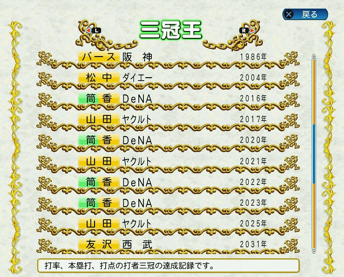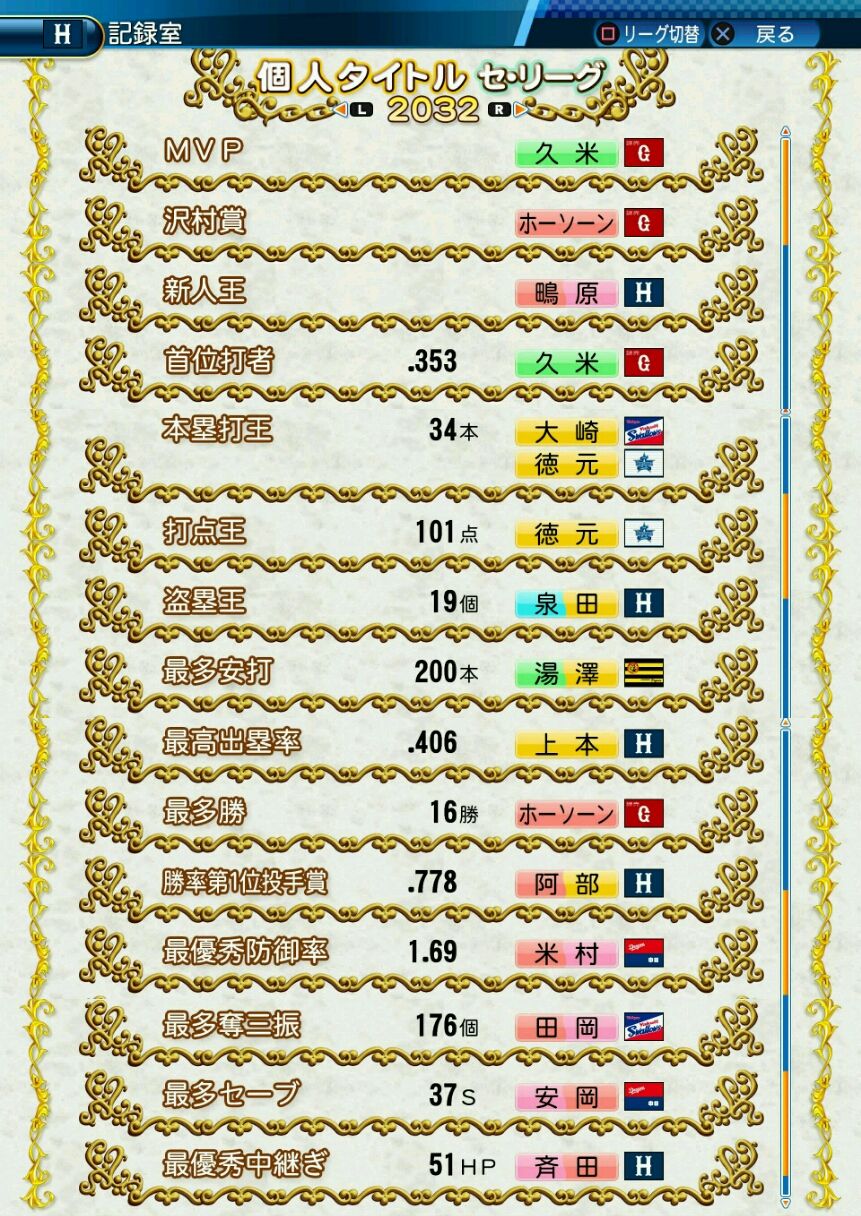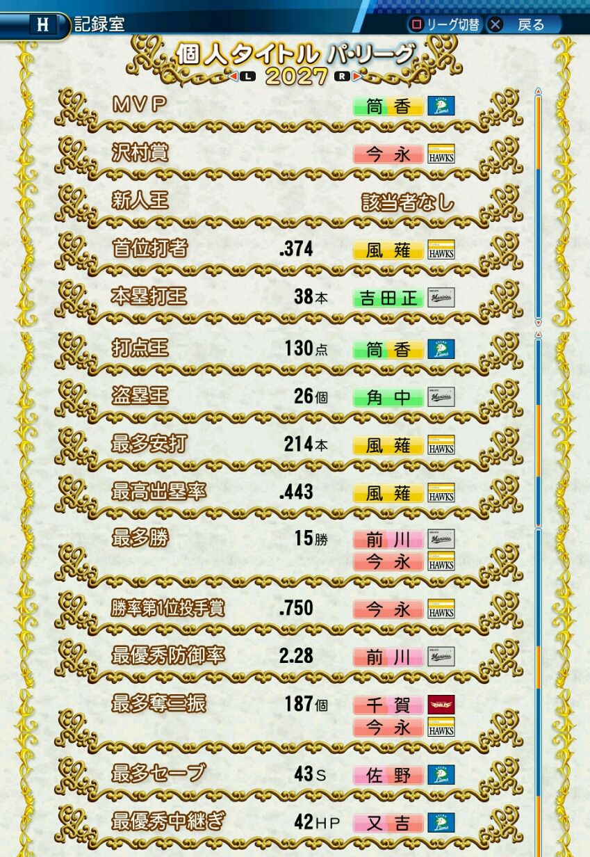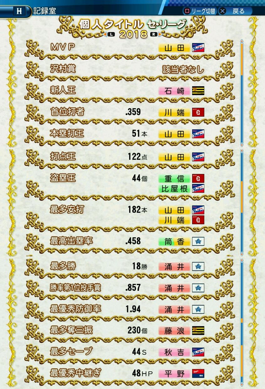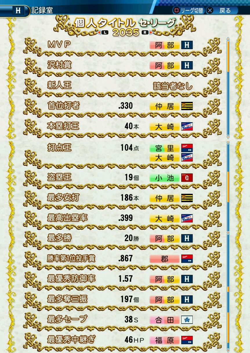 タイトルなしだから引き分け!wもそうだけど、所属チーム違うと打点だとかチーム事情によるレギュラーの取りやすさとか色々と条件が違くなるんだからこのシリーズの致命的な部分だよなあ