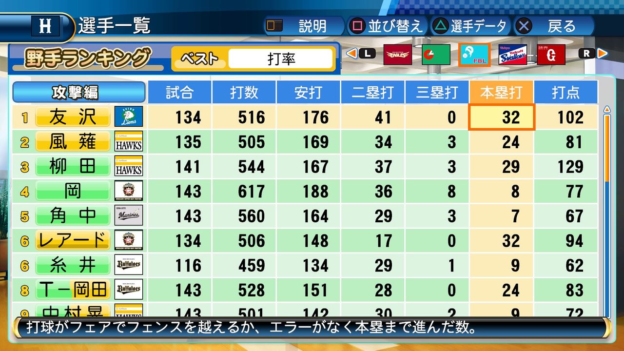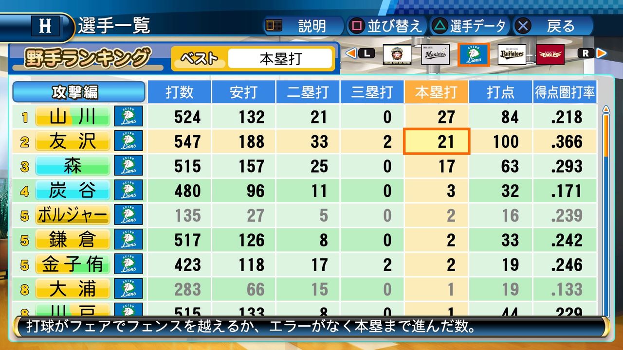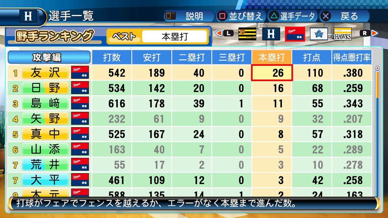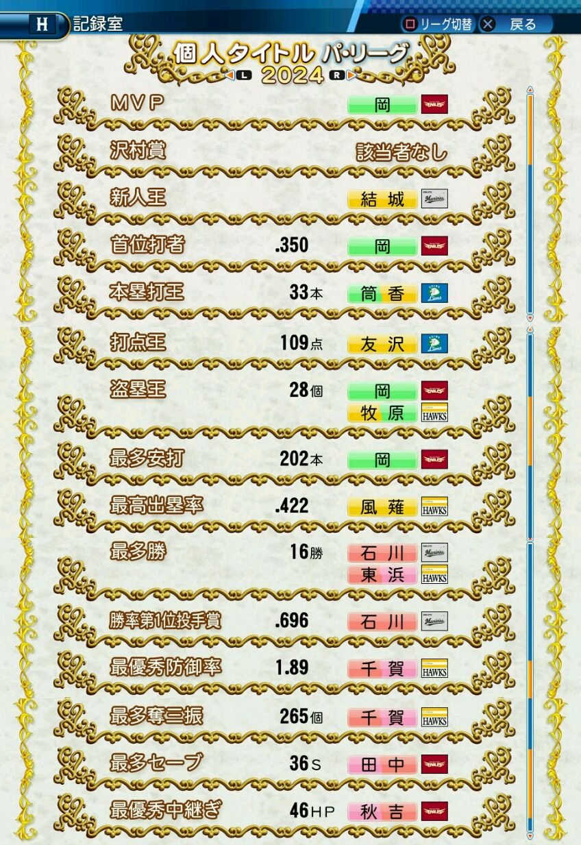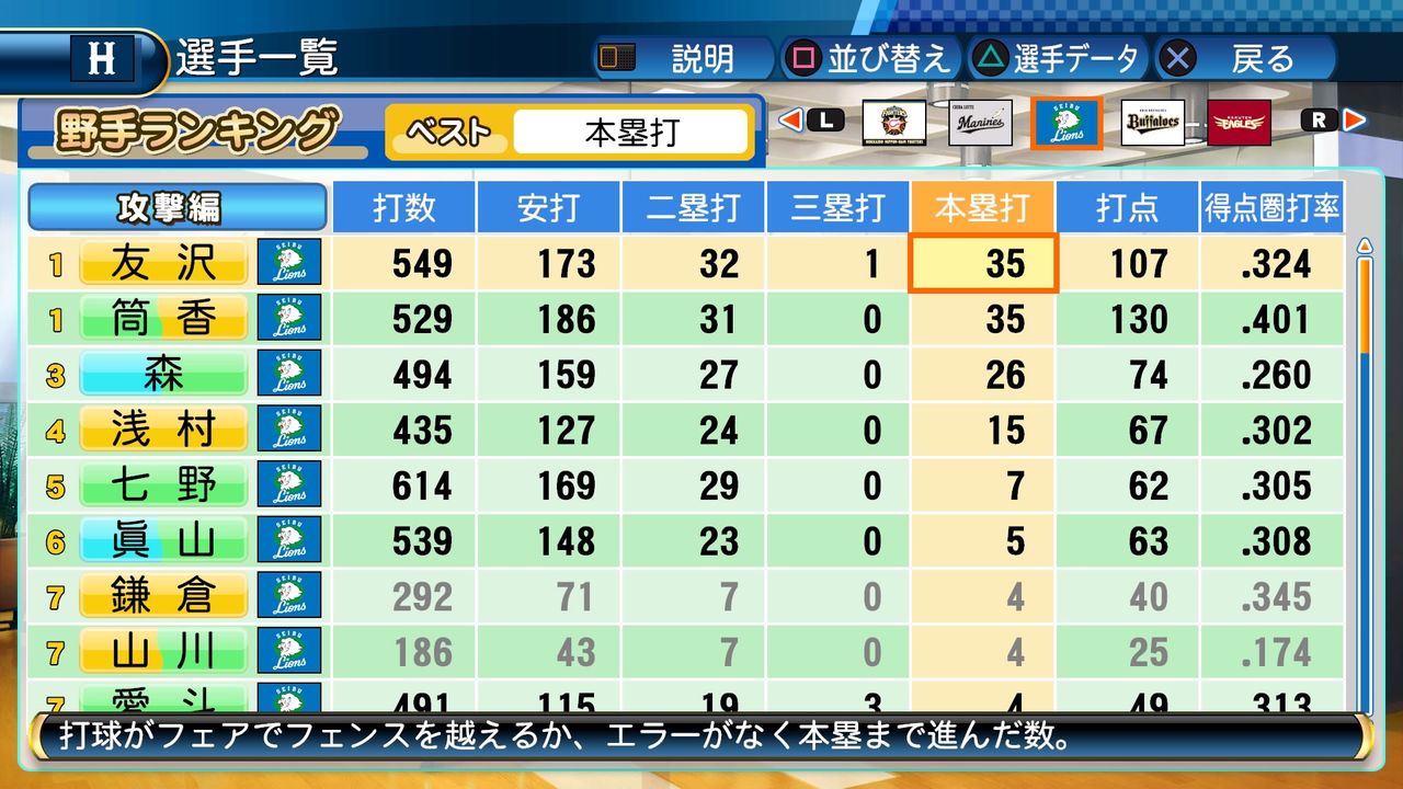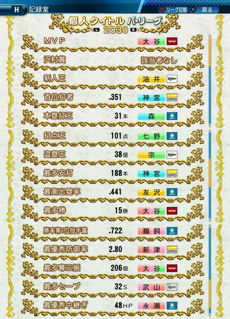 タイトルなしだから引き分け!wもそうだけど、所属チーム違うと打点だとかチーム事情によるレギュラーの取りやすさとか色々と条件が違くなるんだからこのシリーズの致命的な部分だよなあ