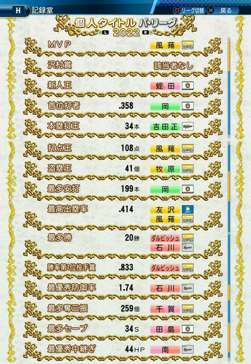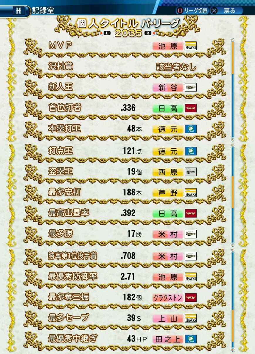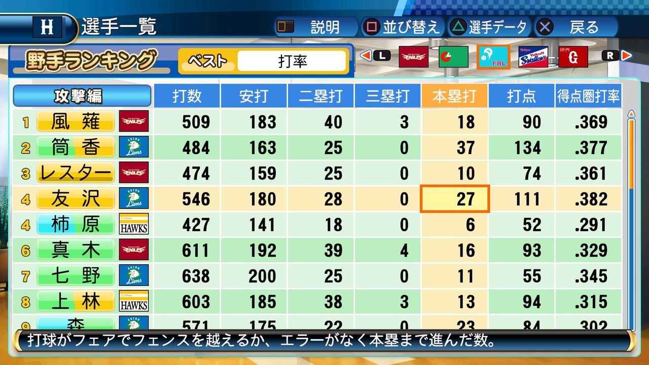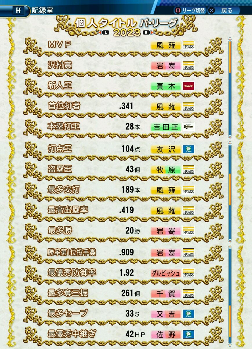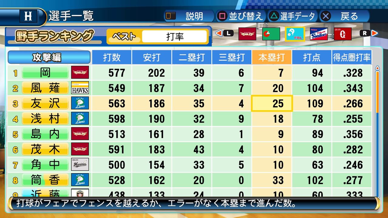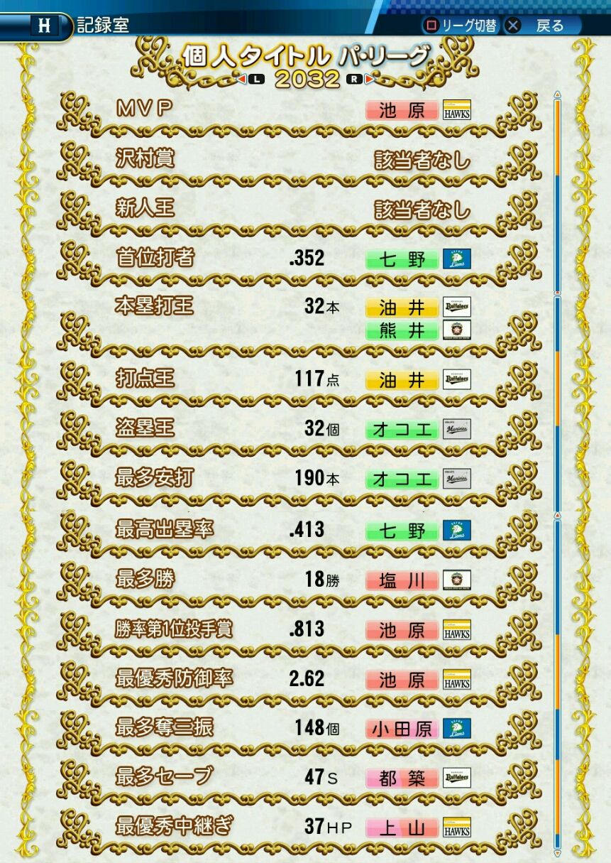 タイトルなしだから引き分け!wもそうだけど、所属チーム違うと打点だとかチーム事情によるレギュラーの取りやすさとか色々と条件が違くなるんだからこのシリーズの致命的な部分だよなあ