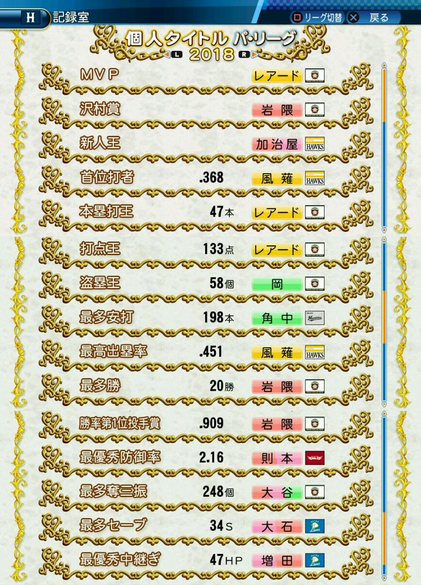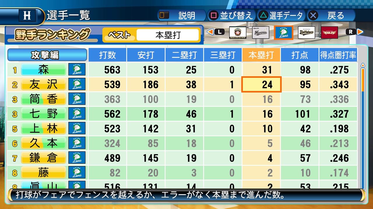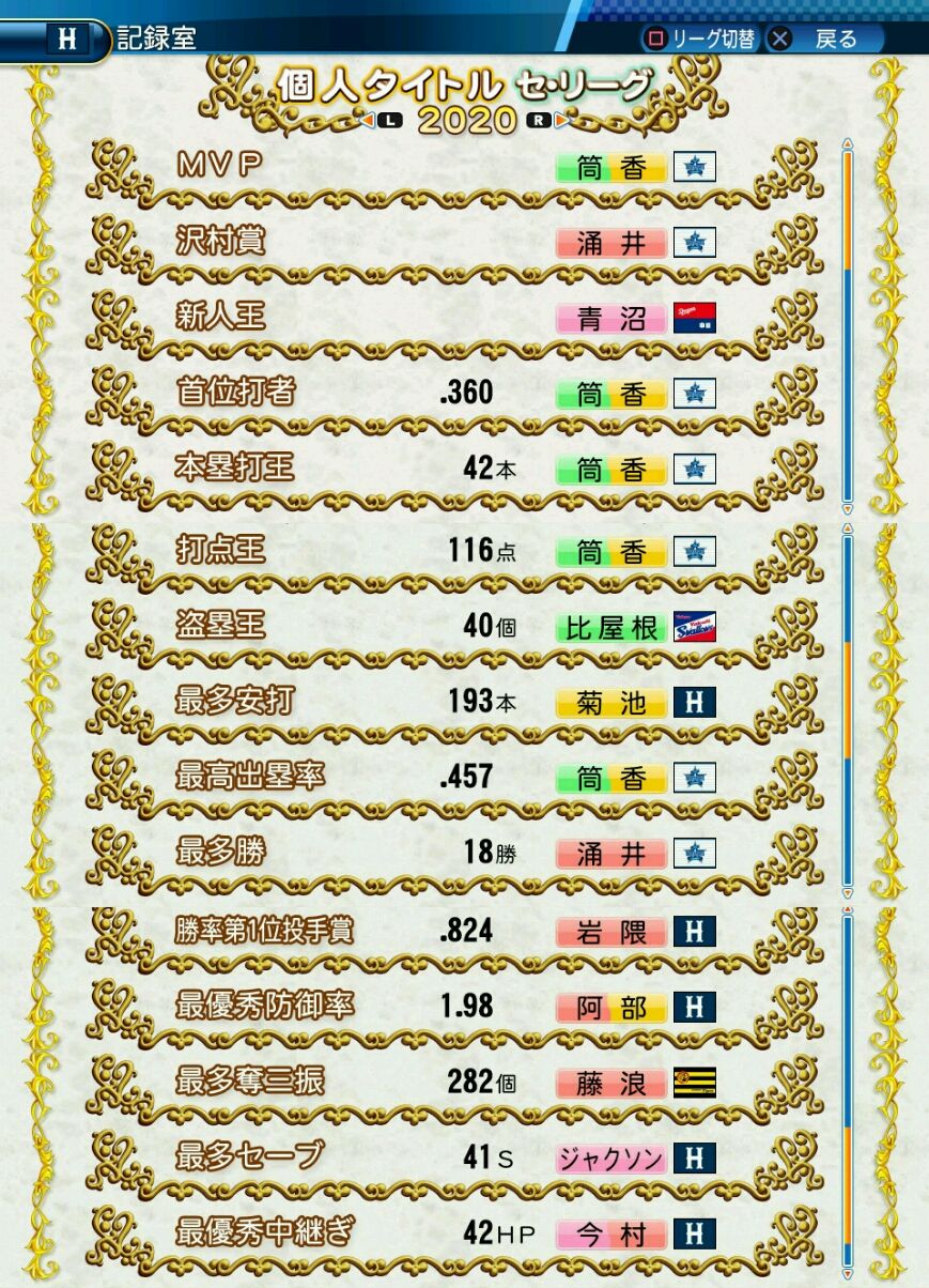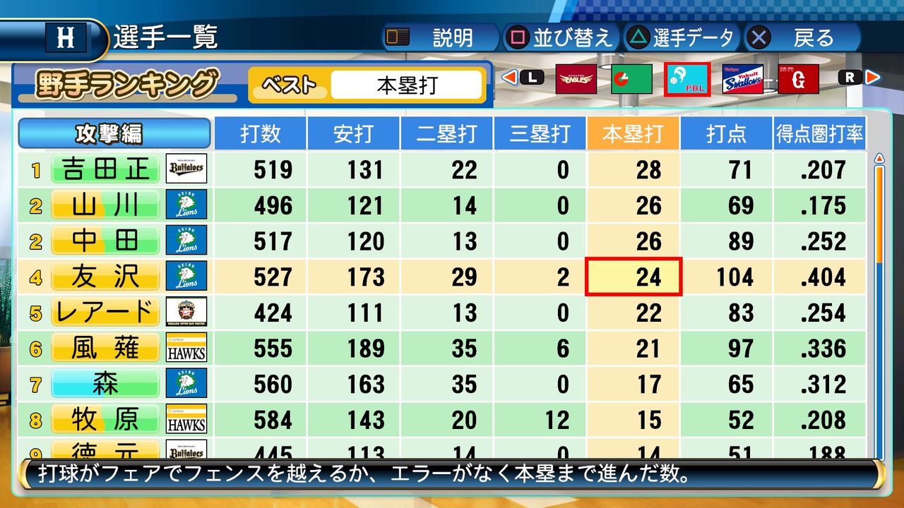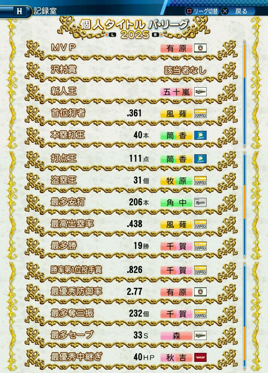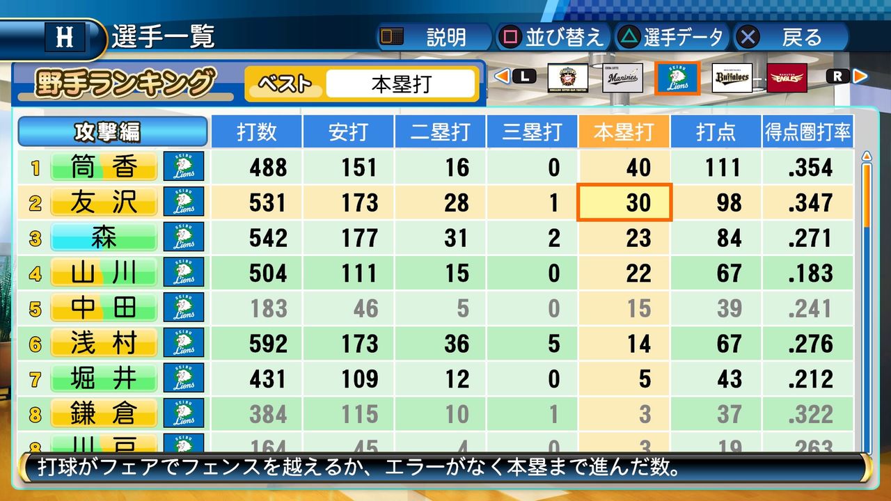 タイトルなしだから引き分け!wもそうだけど、所属チーム違うと打点だとかチーム事情によるレギュラーの取りやすさとか色々と条件が違くなるんだからこのシリーズの致命的な部分だよなあ