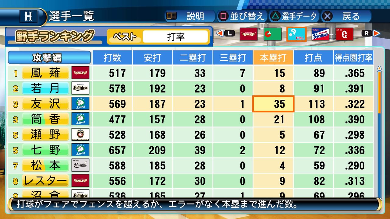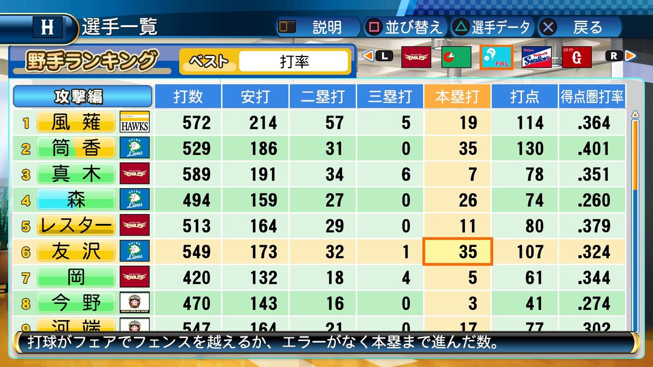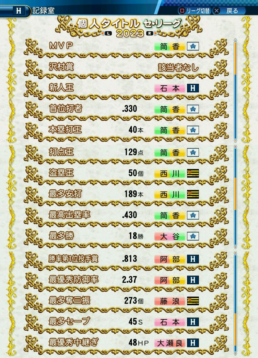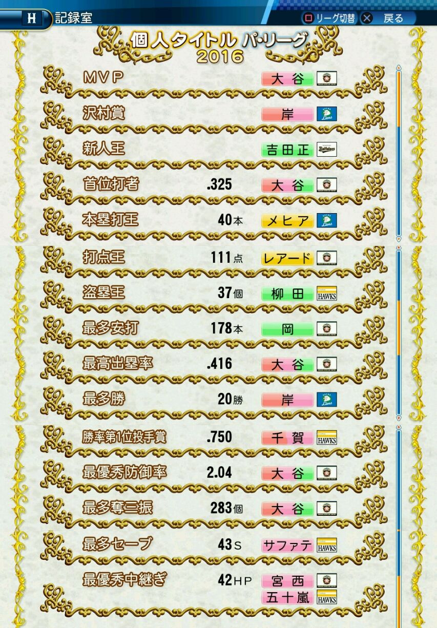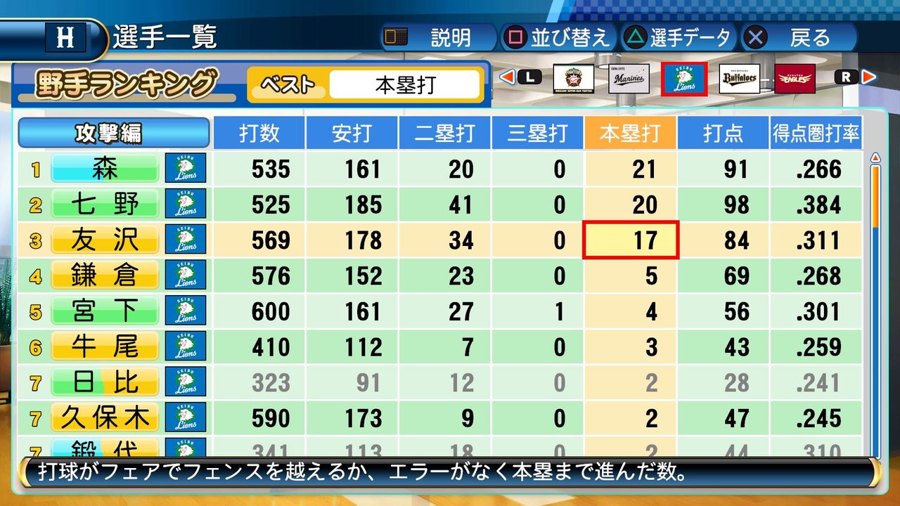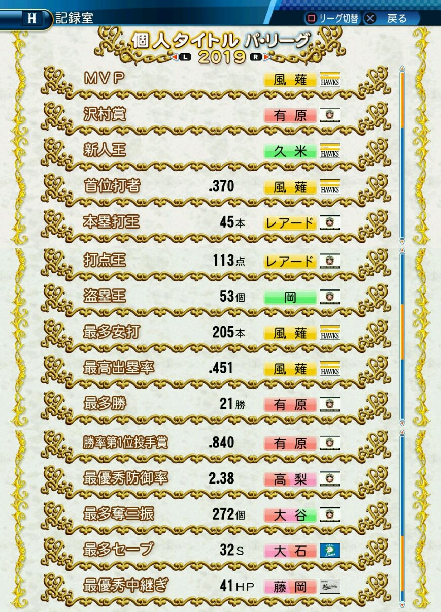タイトルなしだから引き分け!wもそうだけど、所属チーム違うと打点だとかチーム事情によるレギュラーの取りやすさとか色々と条件が違くなるんだからこのシリーズの致命的な部分だよなあ