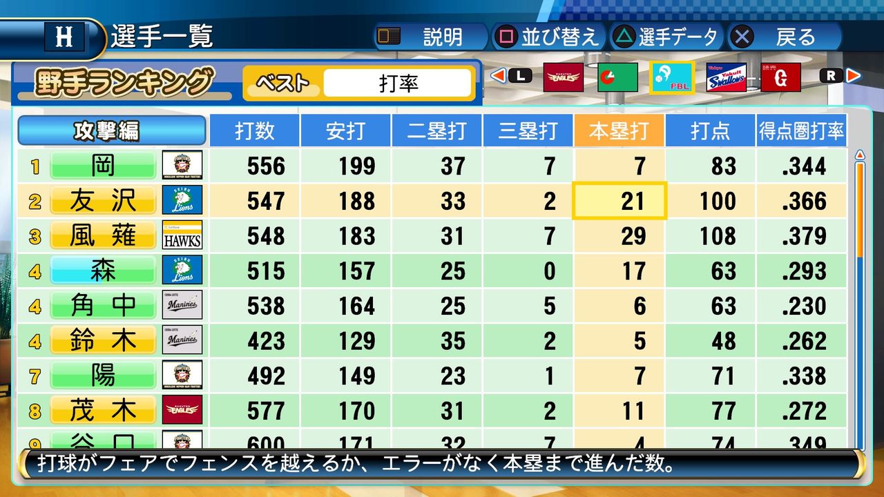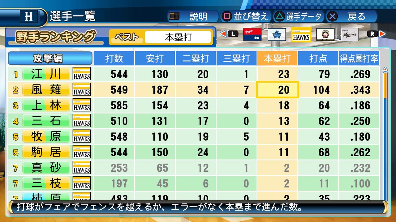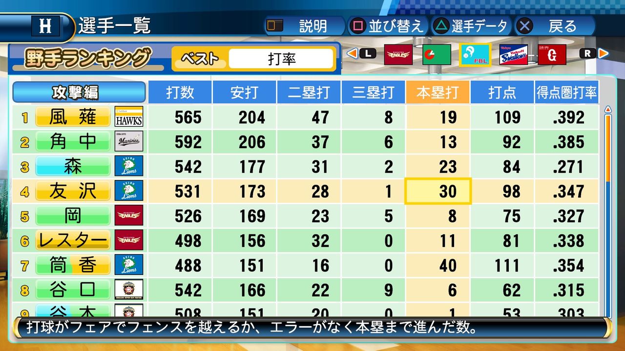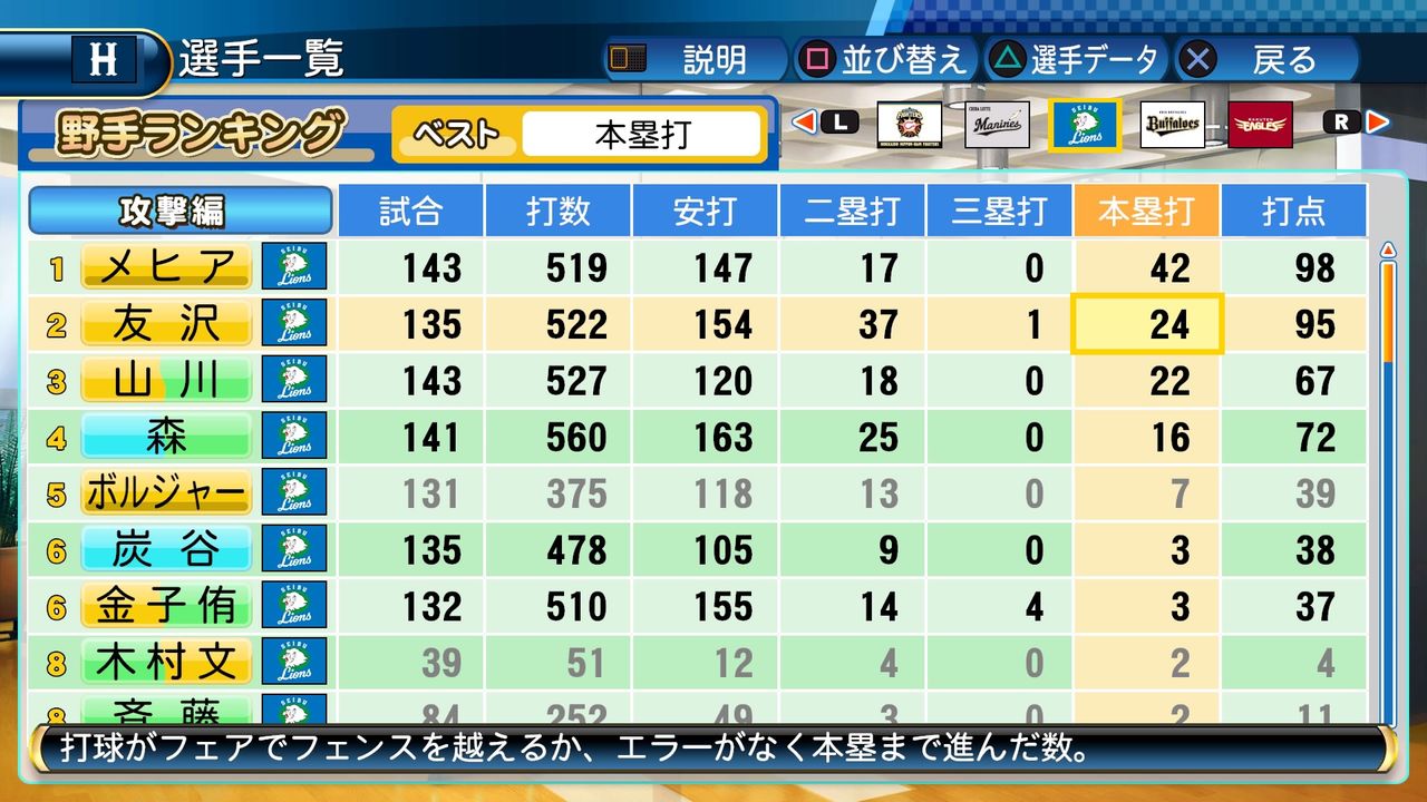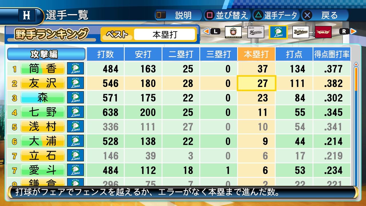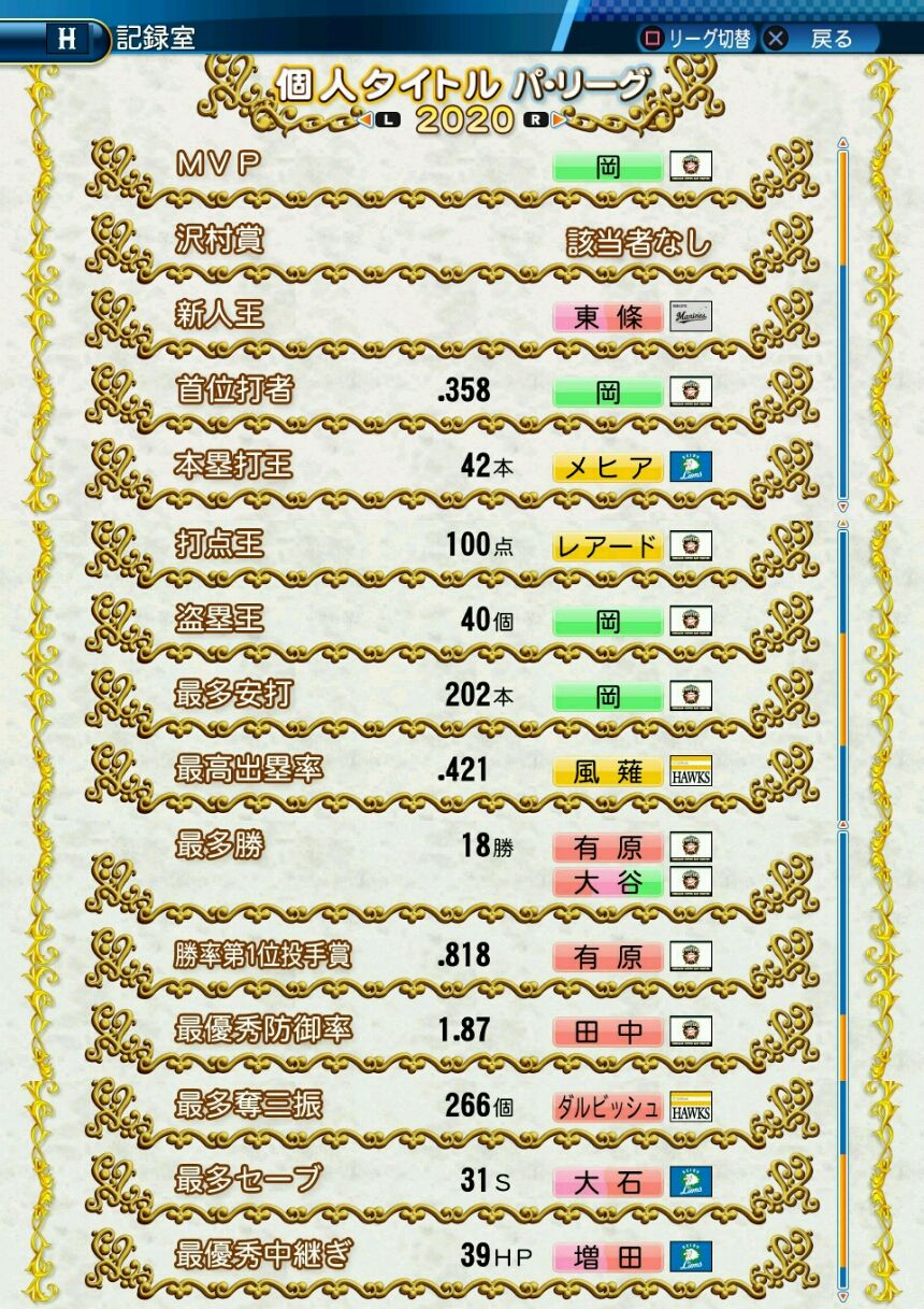 タイトルなしだから引き分け!wもそうだけど、所属チーム違うと打点だとかチーム事情によるレギュラーの取りやすさとか色々と条件が違くなるんだからこのシリーズの致命的な部分だよなあ