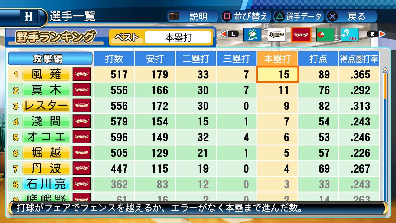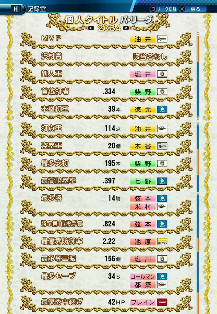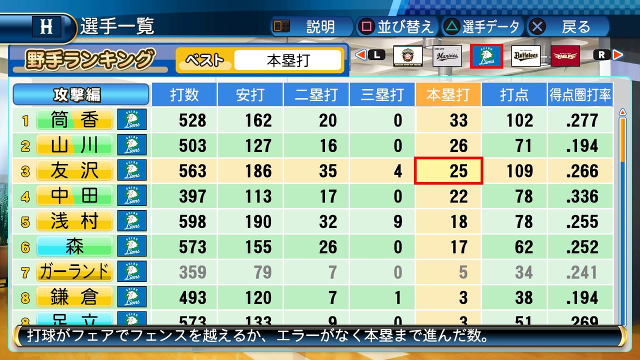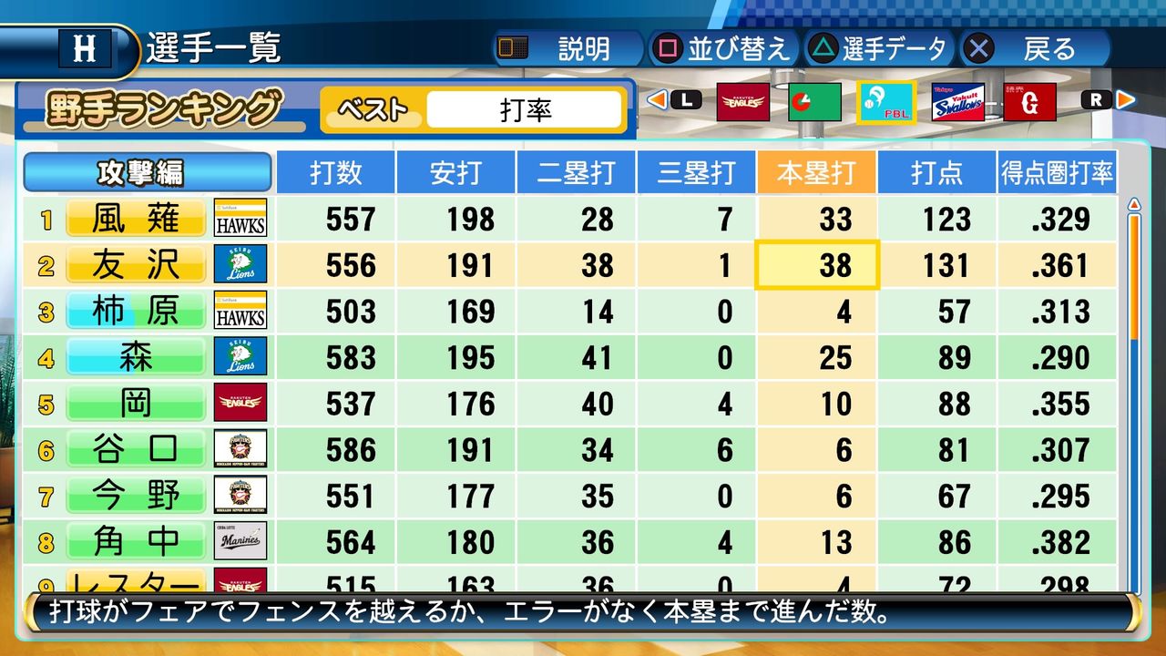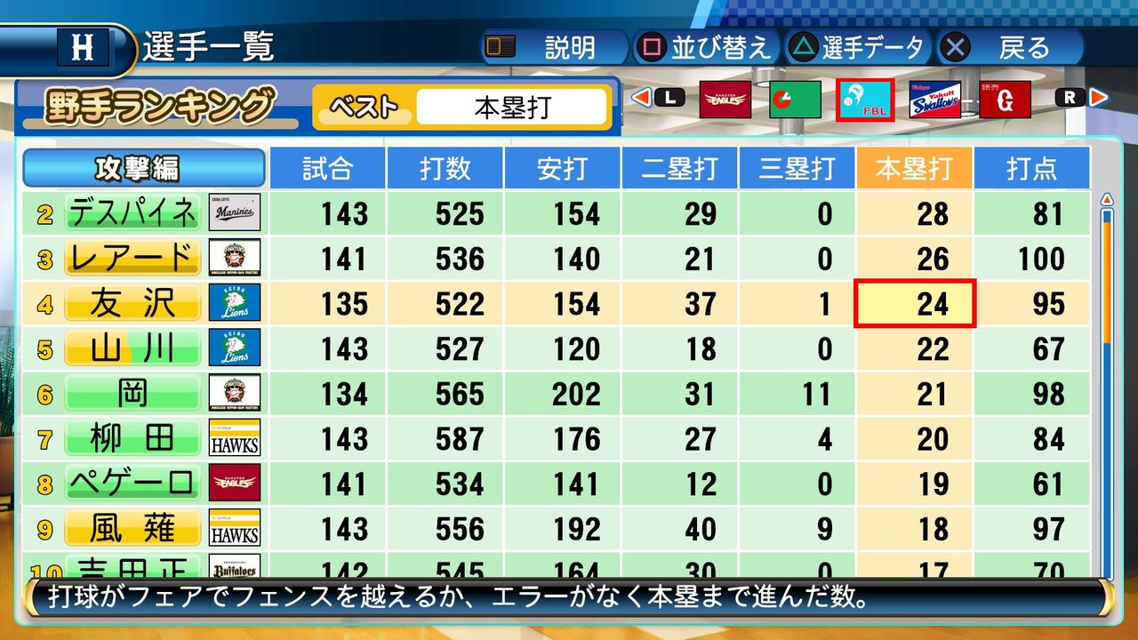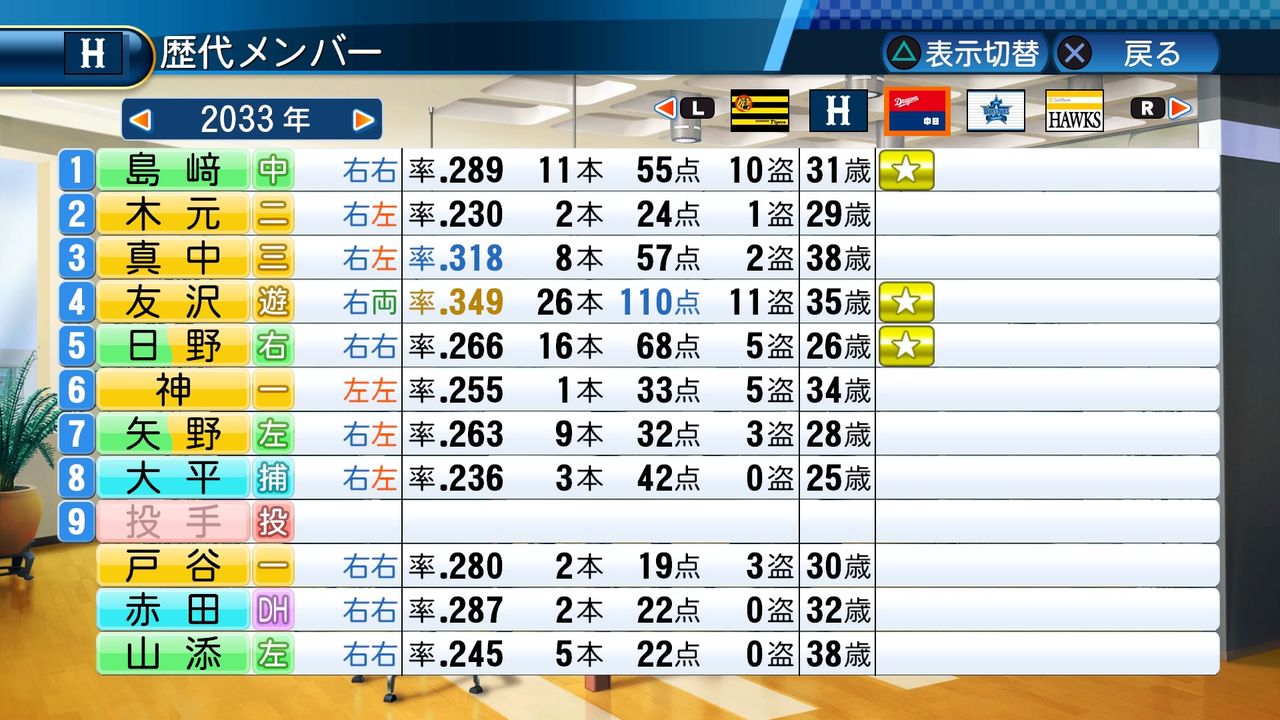 タイトルなしだから引き分け!wもそうだけど、所属チーム違うと打点だとかチーム事情によるレギュラーの取りやすさとか色々と条件が違くなるんだからこのシリーズの致命的な部分だよなあ