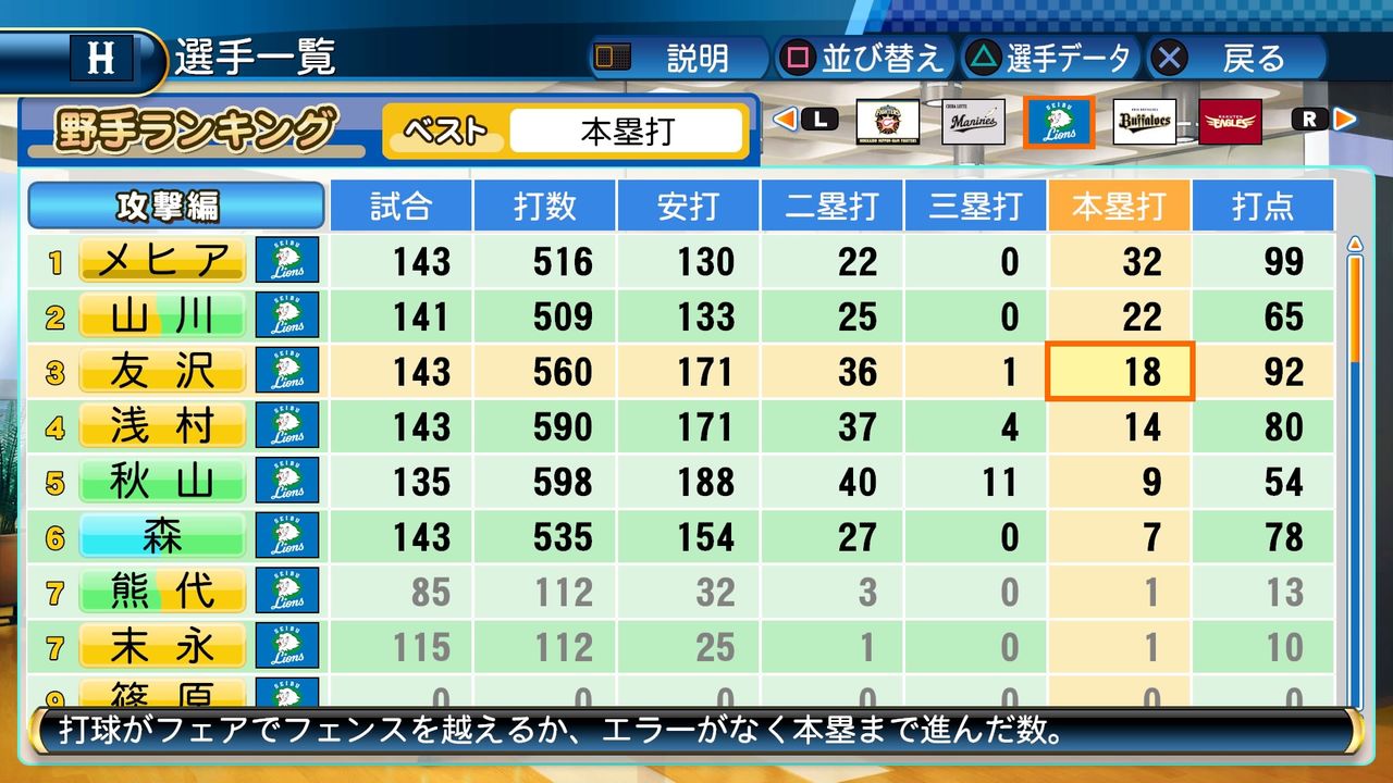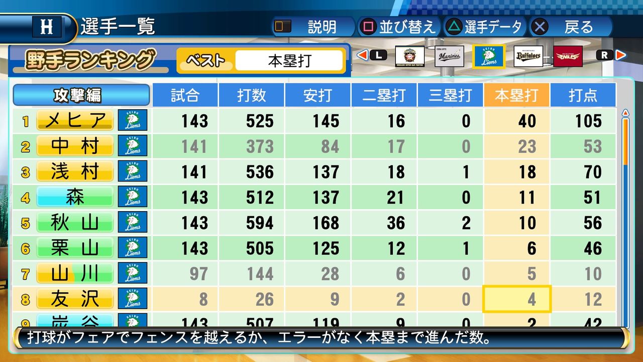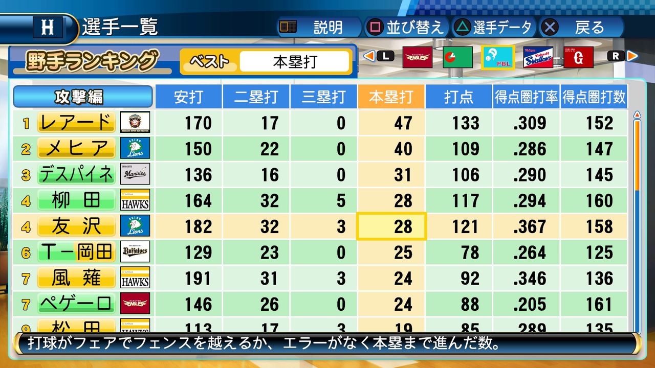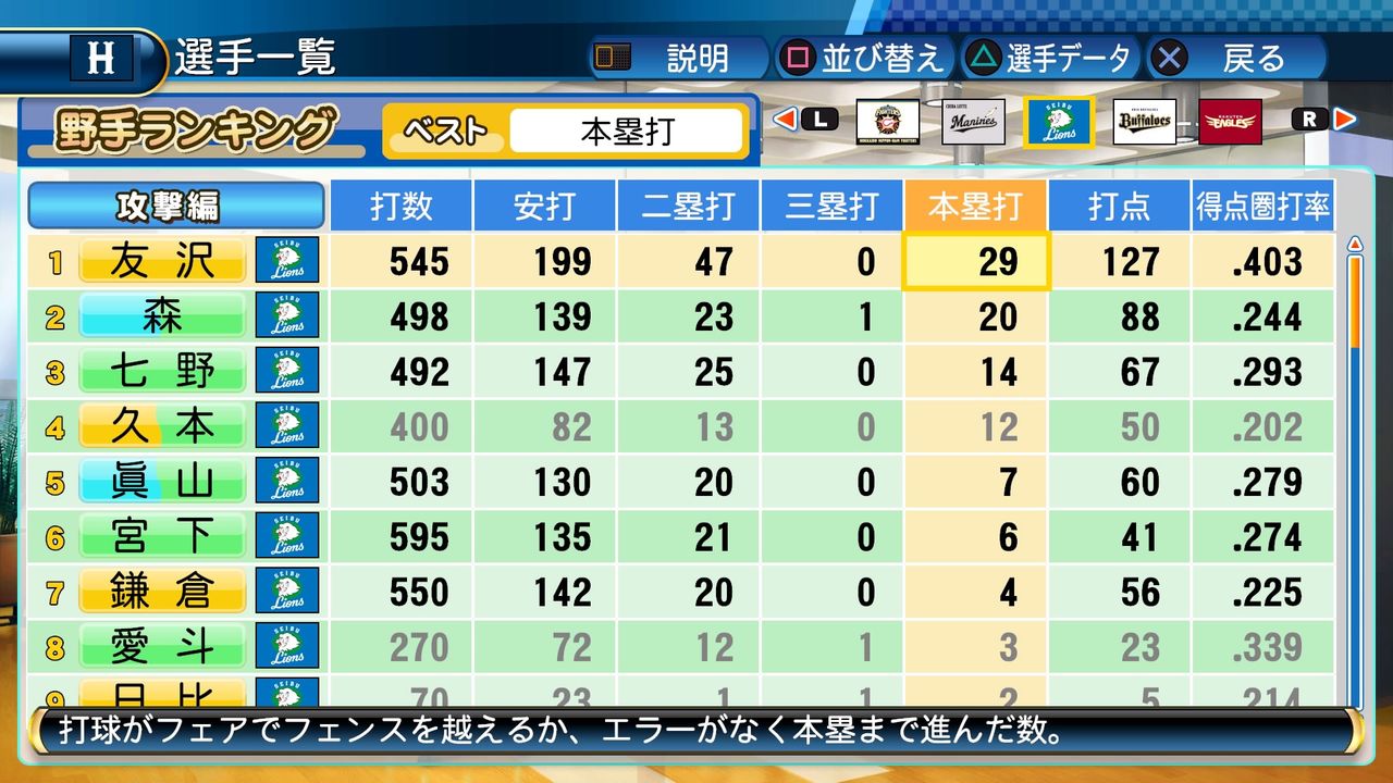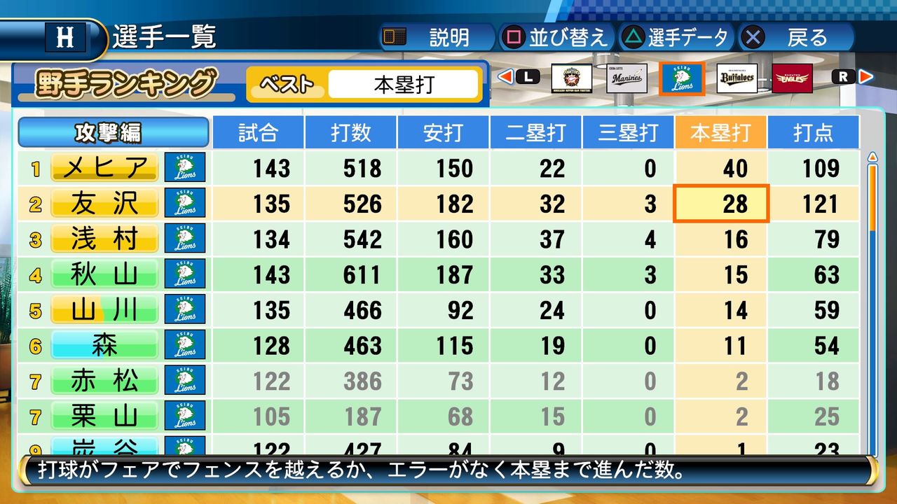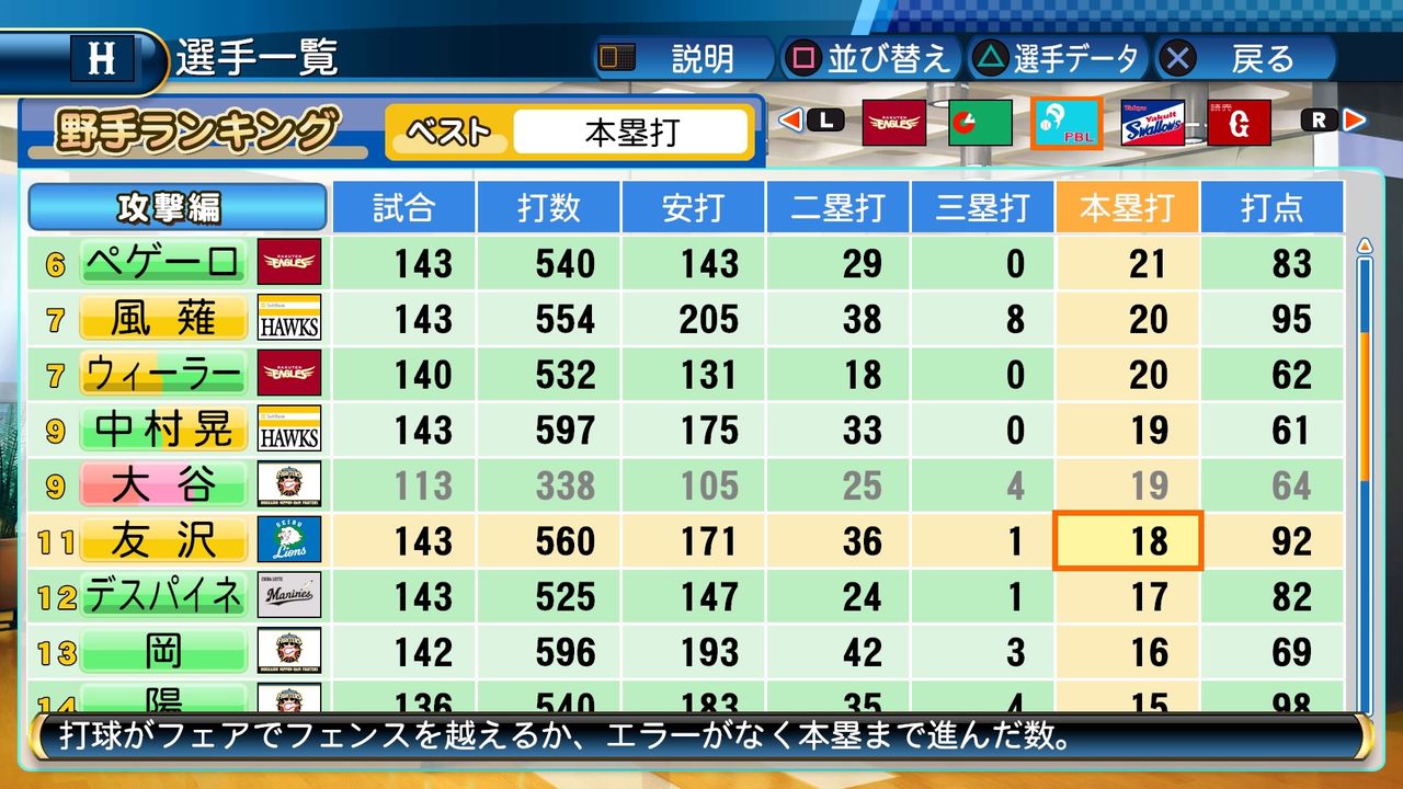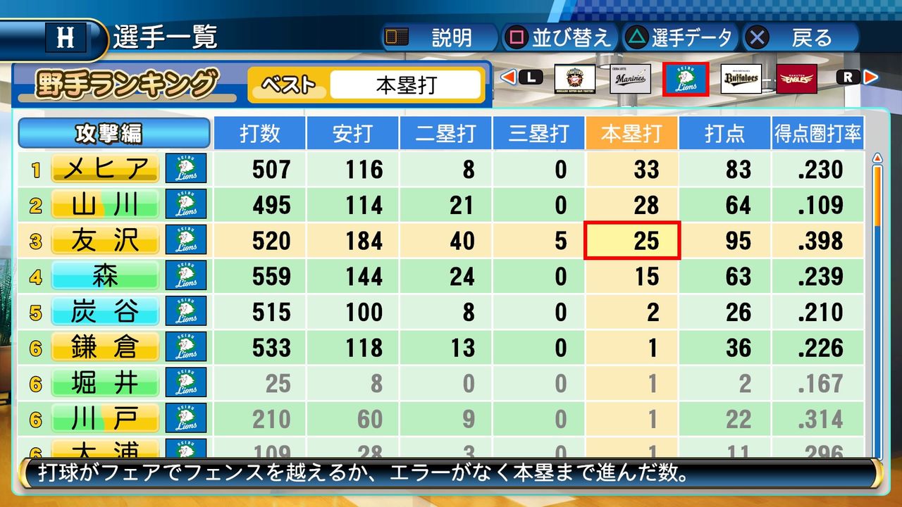 タイトルなしだから引き分け!wもそうだけど、所属チーム違うと打点だとかチーム事情によるレギュラーの取りやすさとか色々と条件が違くなるんだからこのシリーズの致命的な部分だよなあ