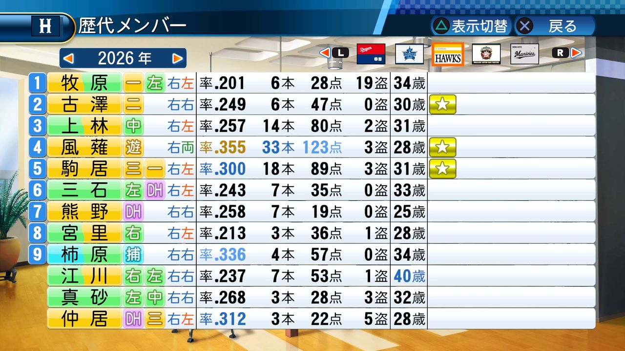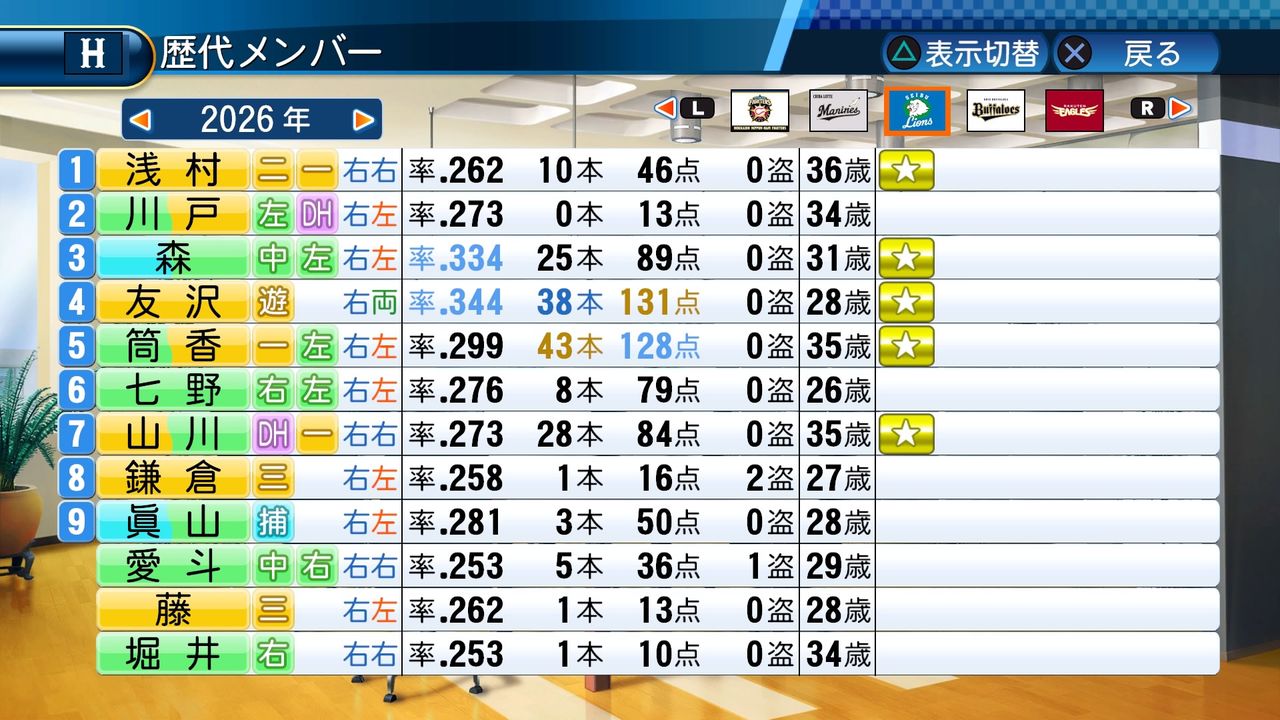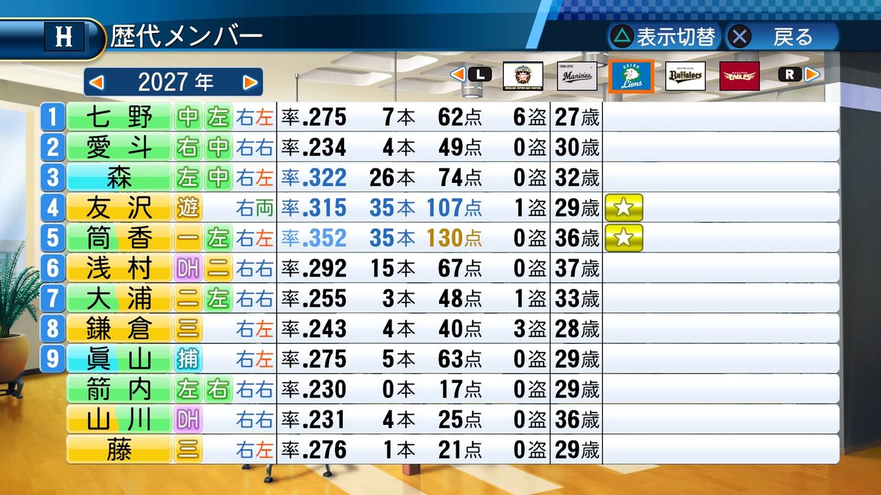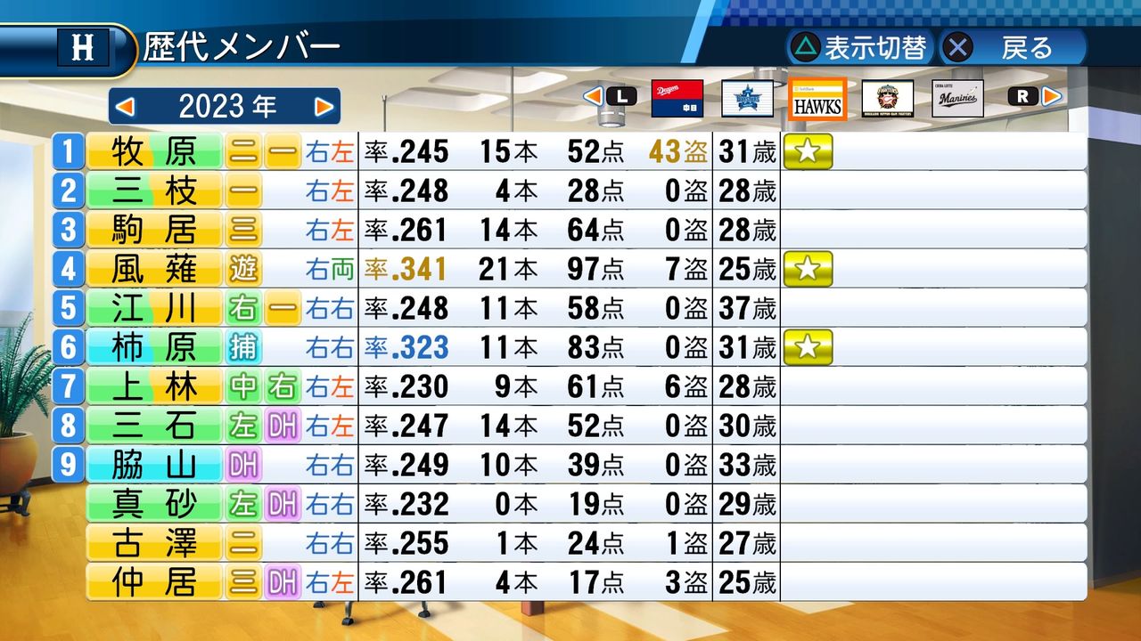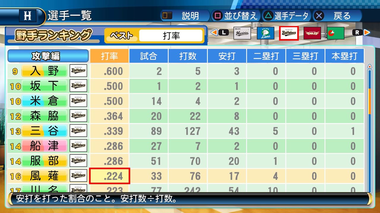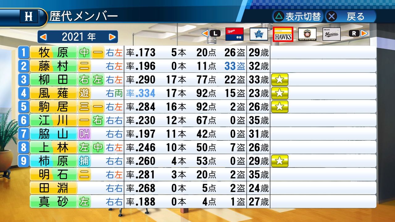タイトルなしだから引き分け!wもそうだけど、所属チーム違うと打点だとかチーム事情によるレギュラーの取りやすさとか色々と条件が違くなるんだからこのシリーズの致命的な部分だよなあ