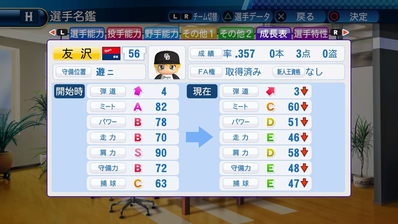 相変わらず山田は何回ペナント回しても無双するから、得能も有利不利みたいなんがあるんかな?