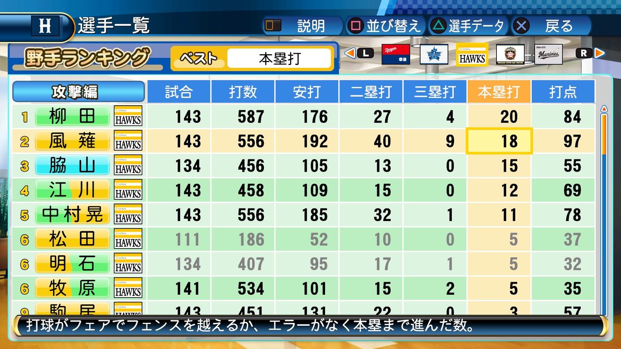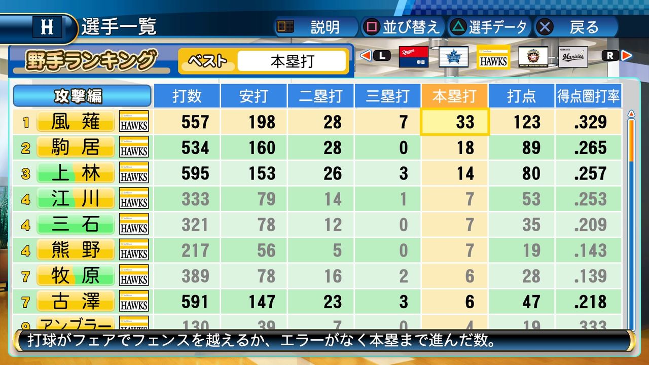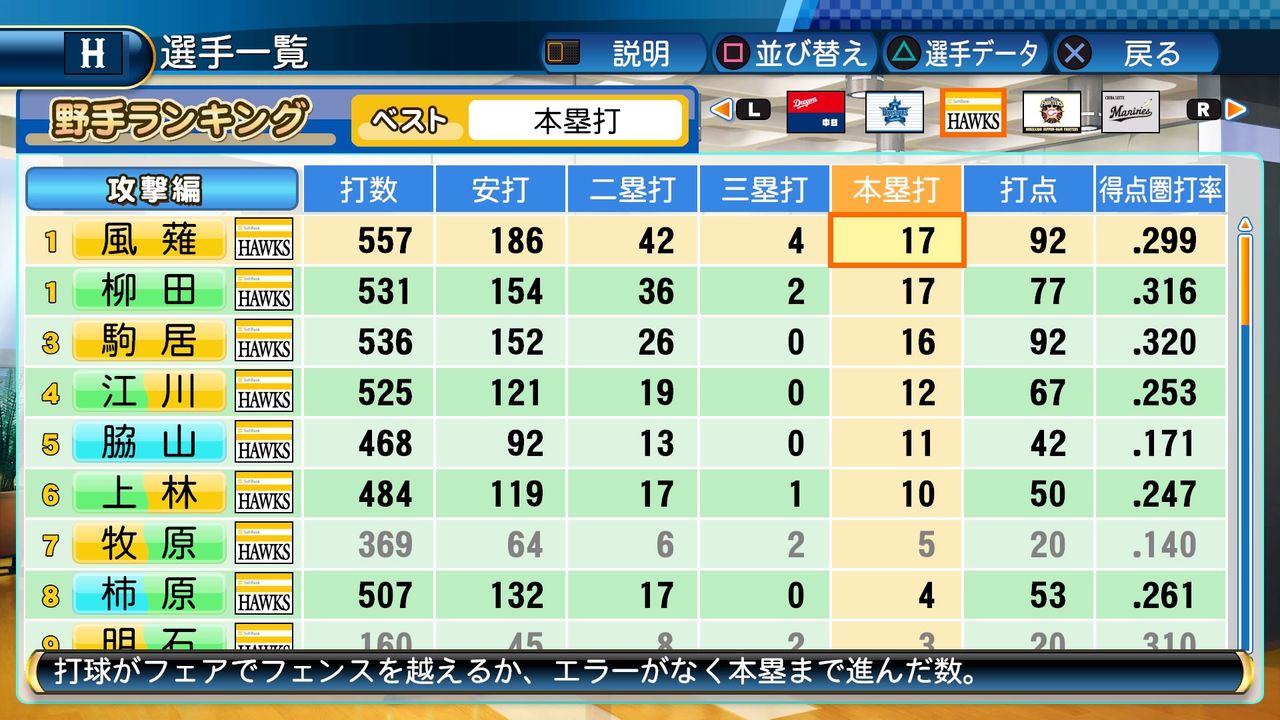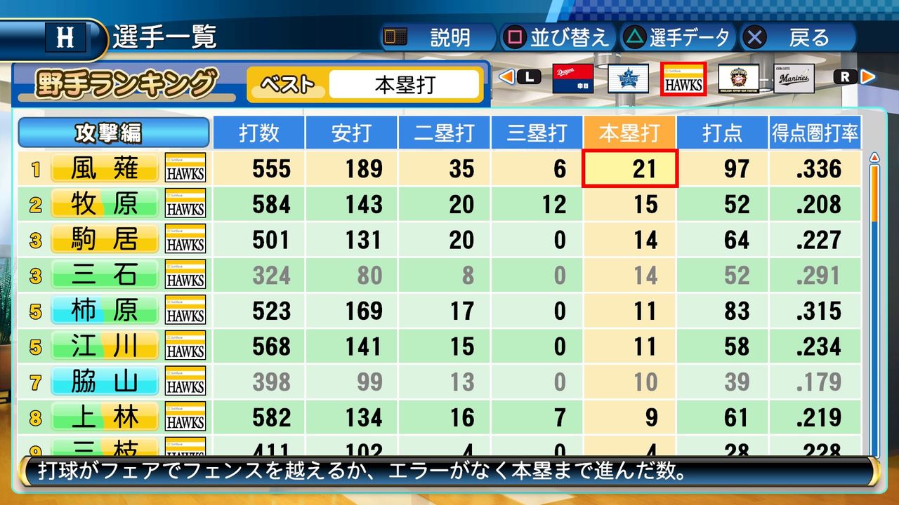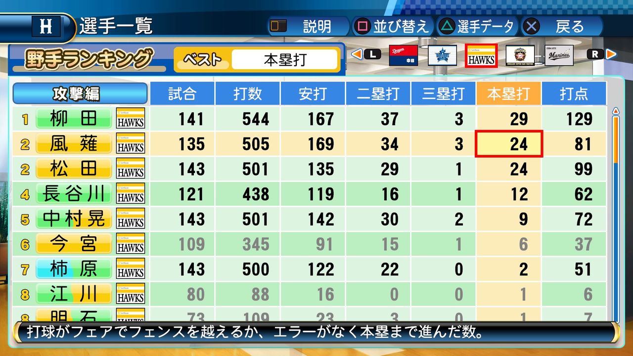 風薙も得能の力で無双するかと思ったけどパワヒがないと本塁打は伸びないんやね