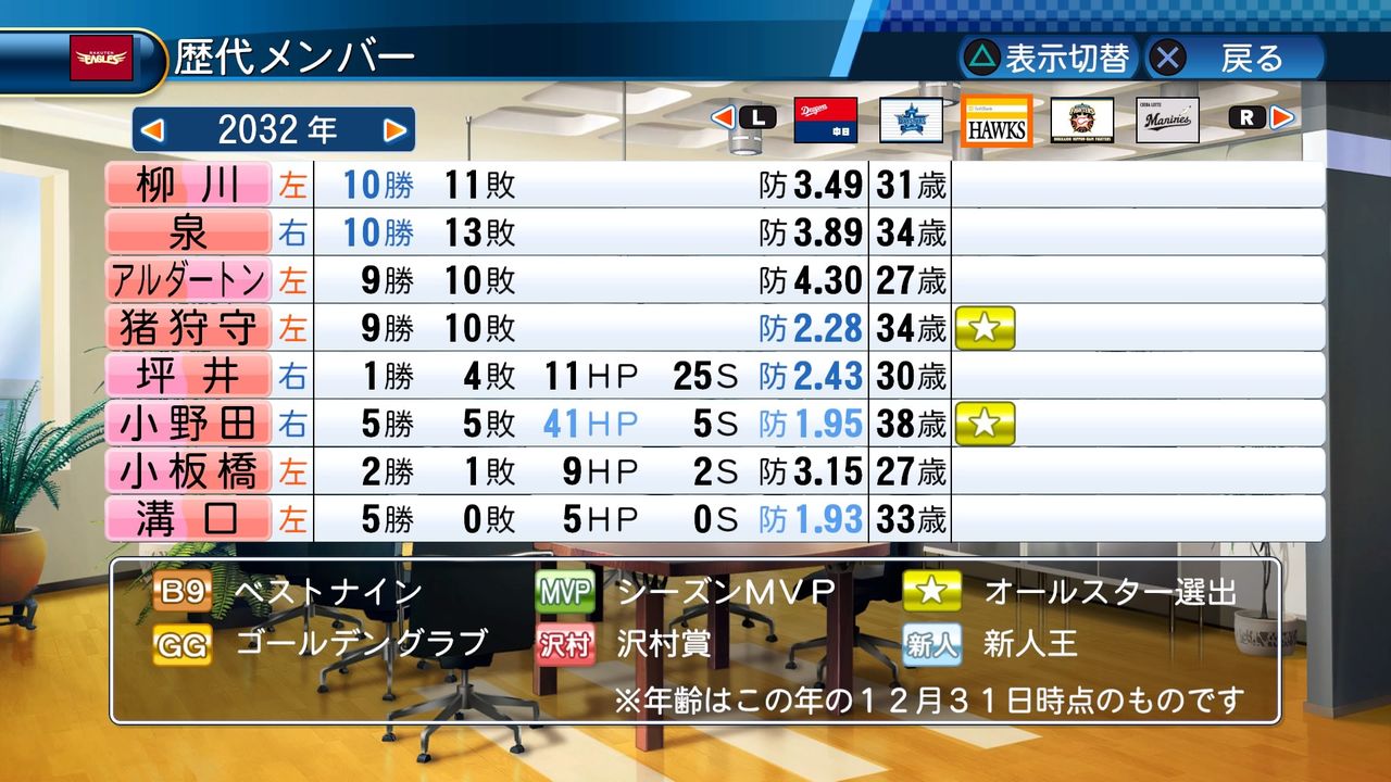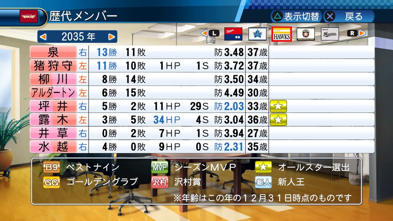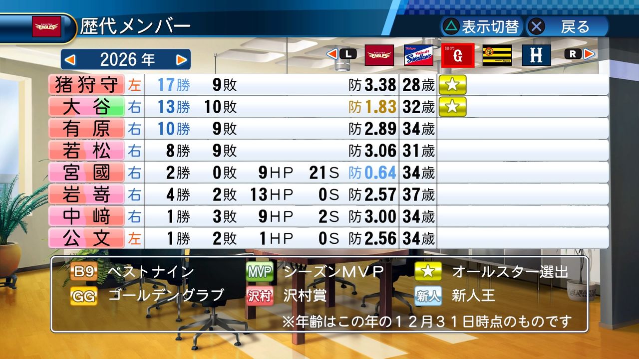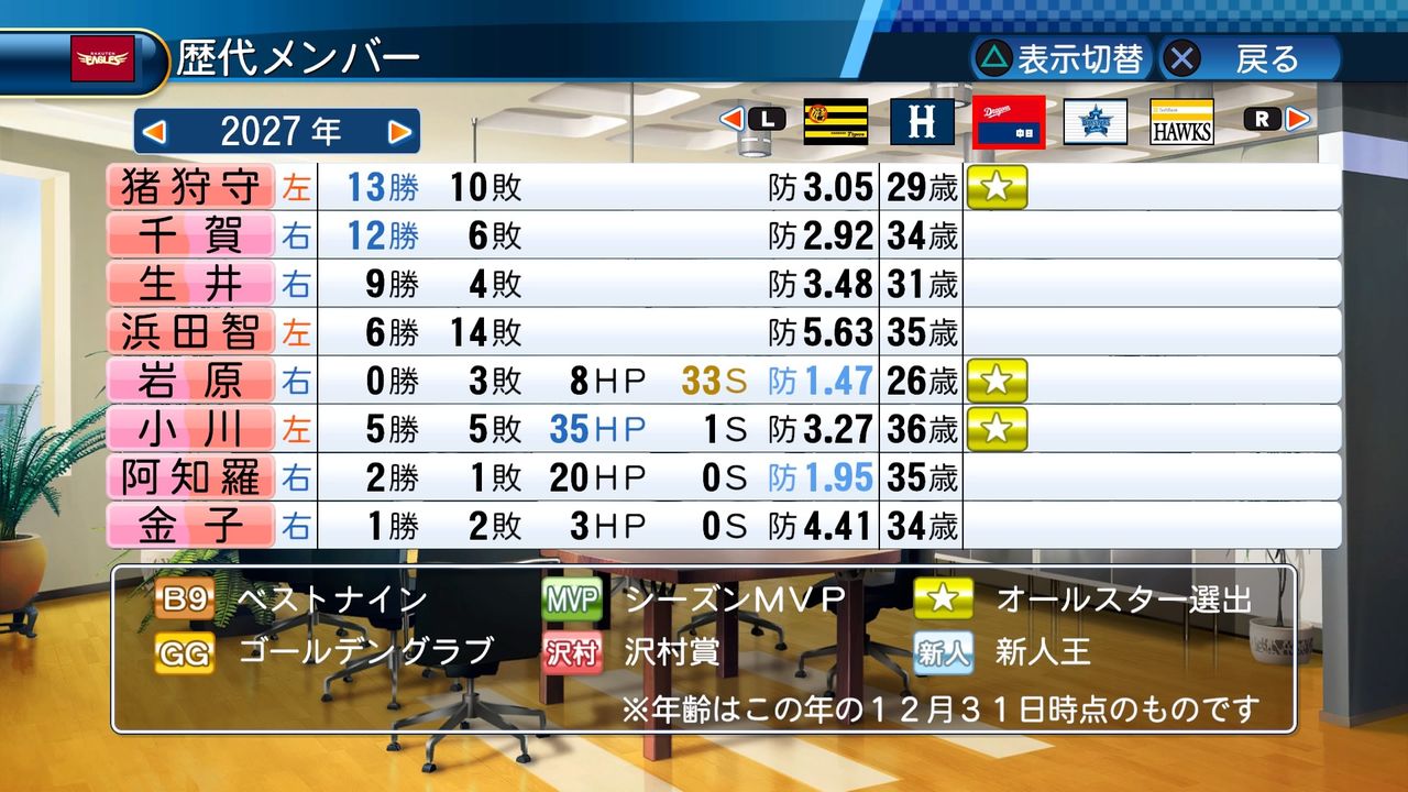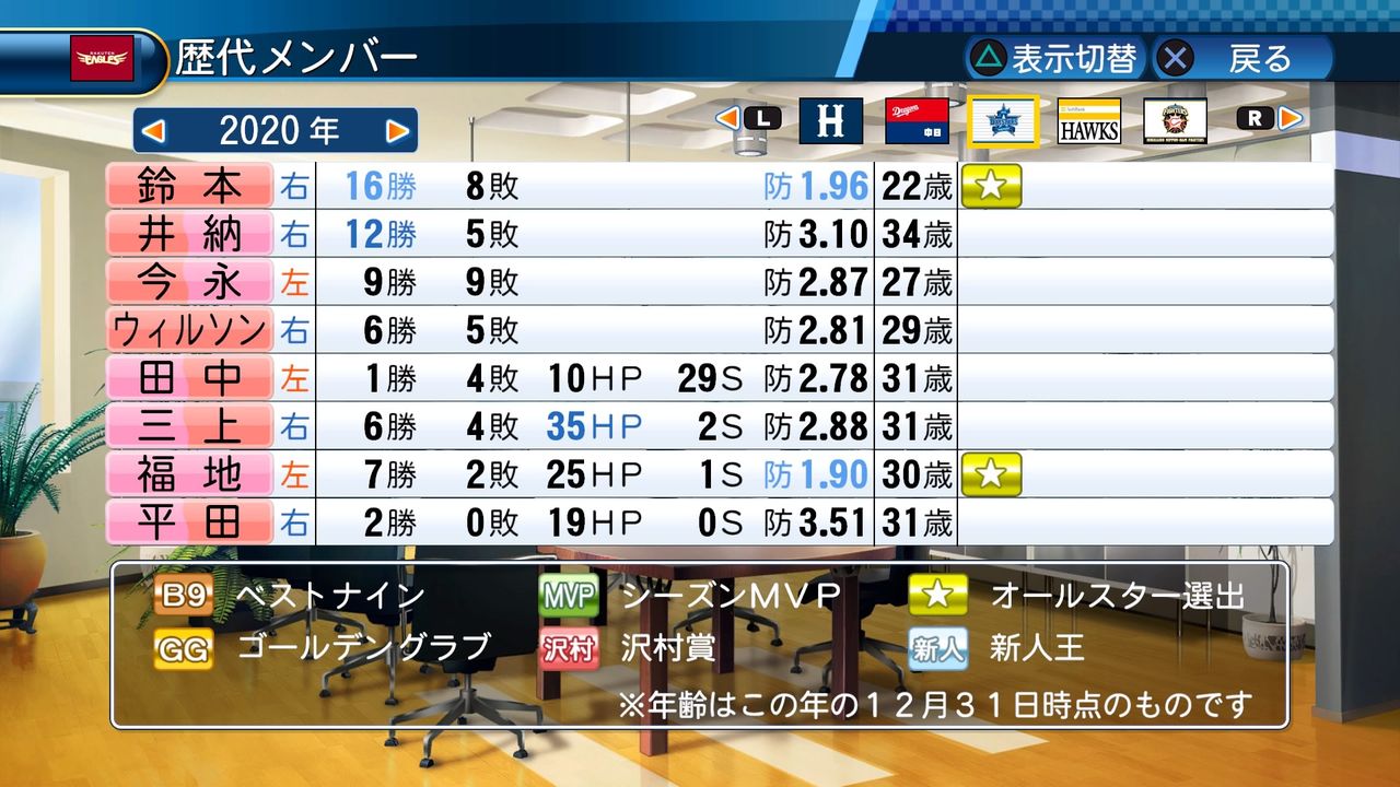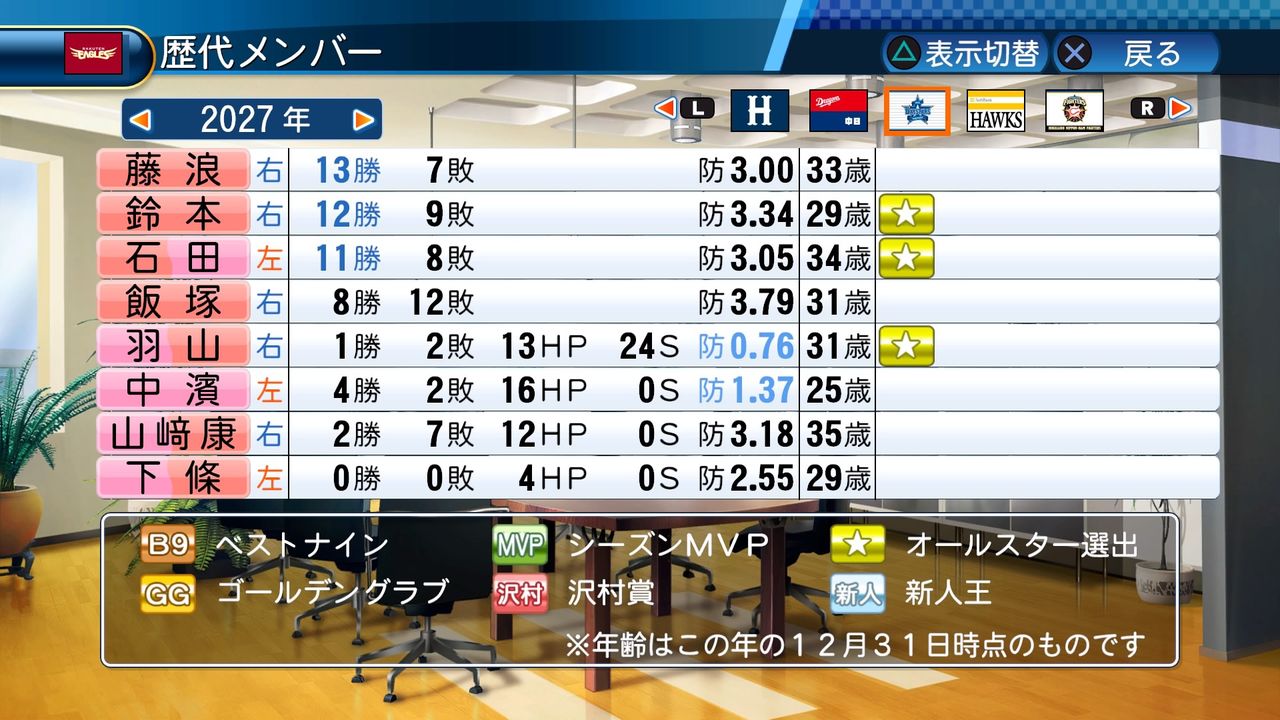 勝率1位投手 7回(2019、2021、2023、2028、2030、2031、2033)