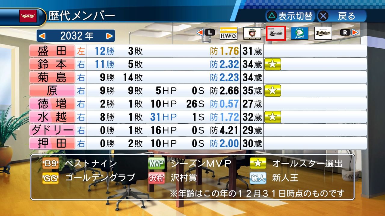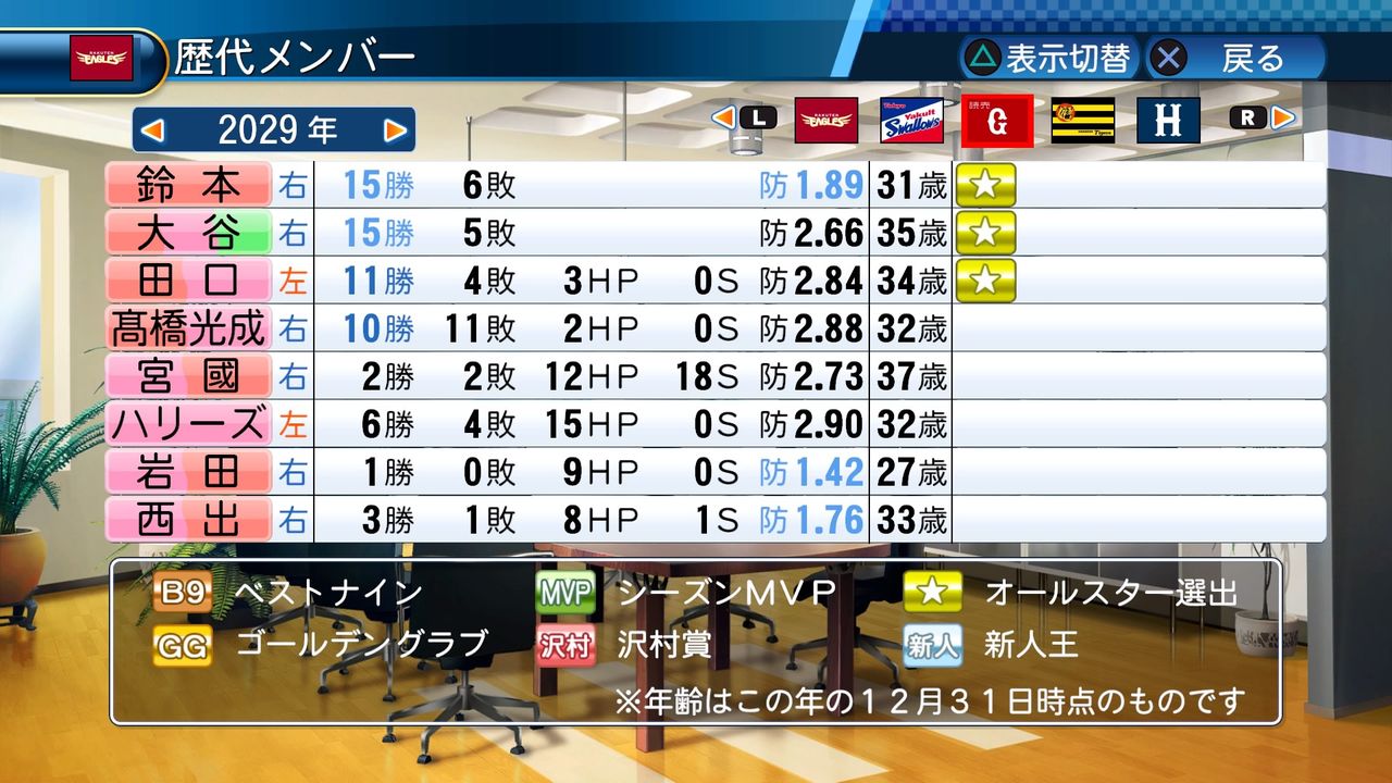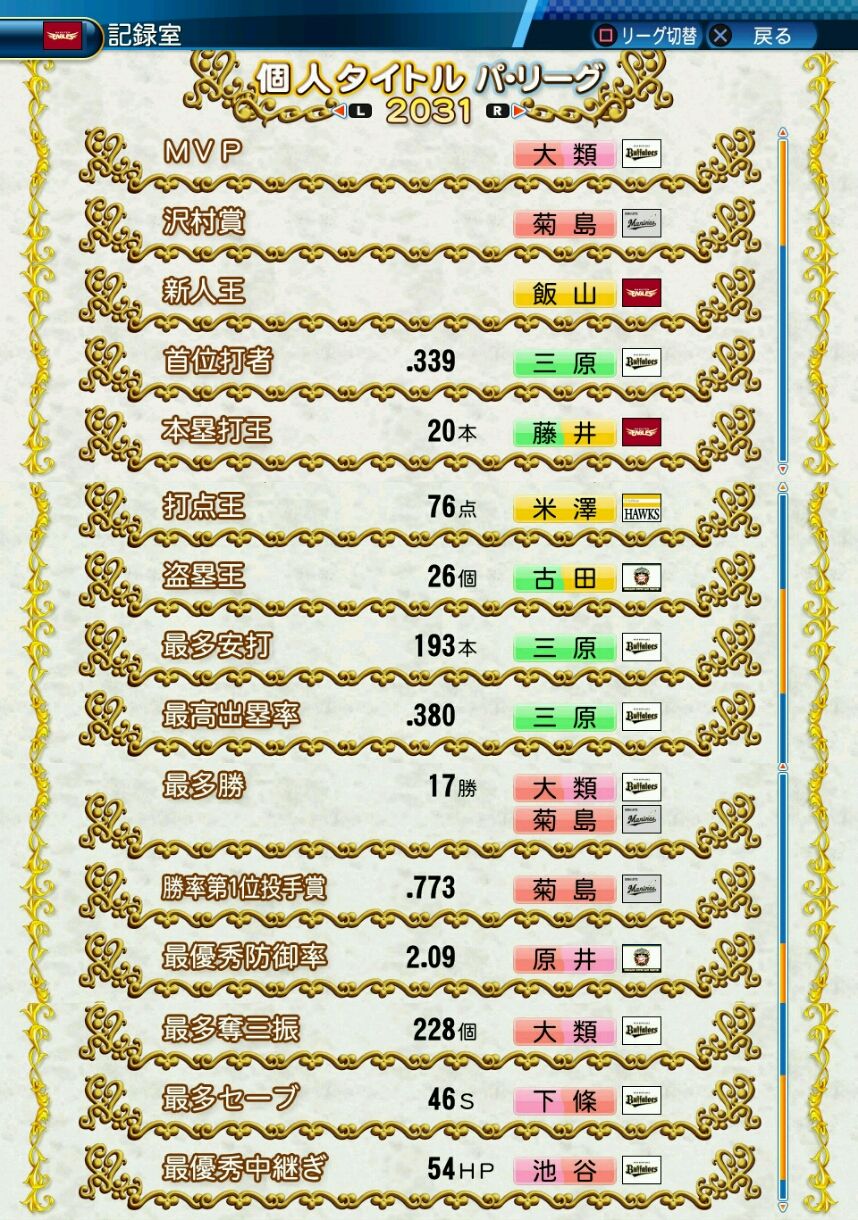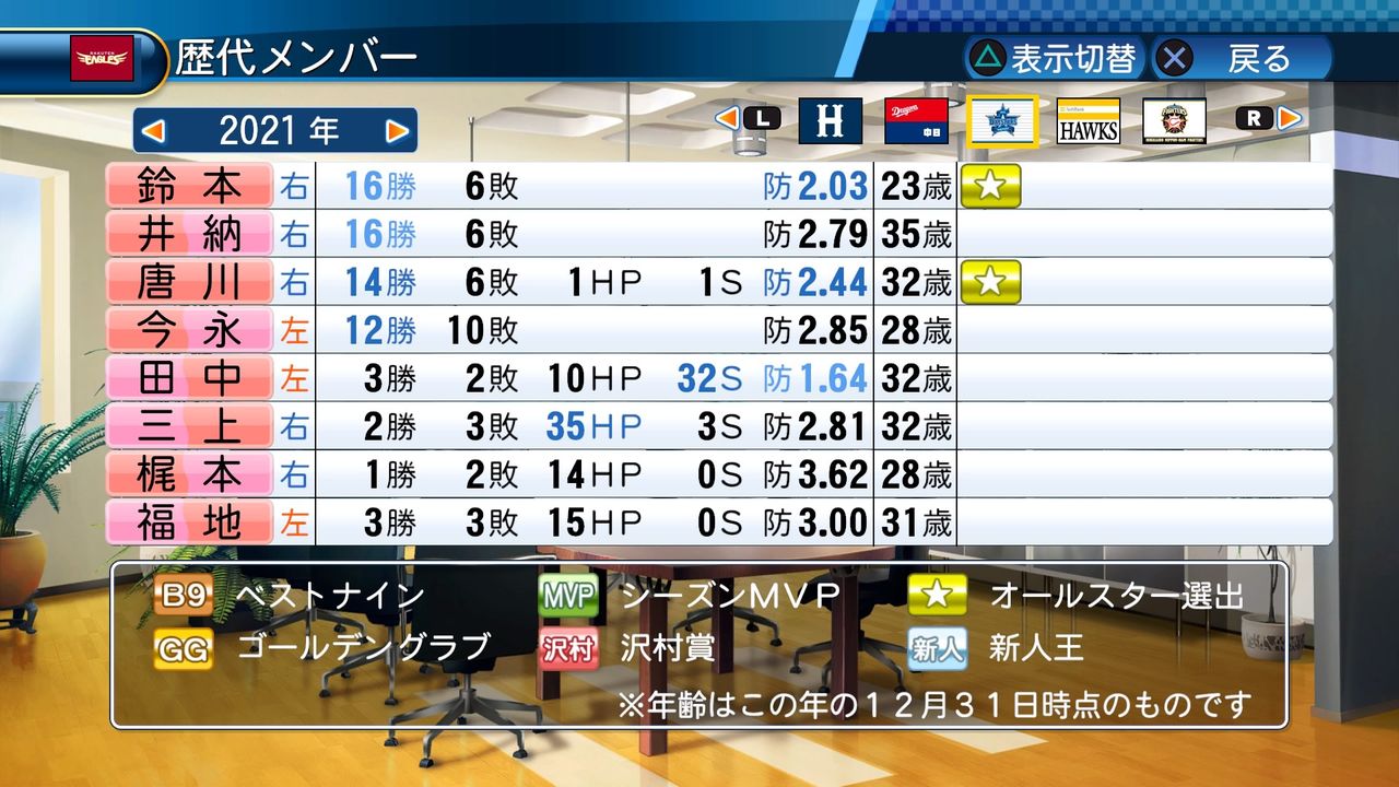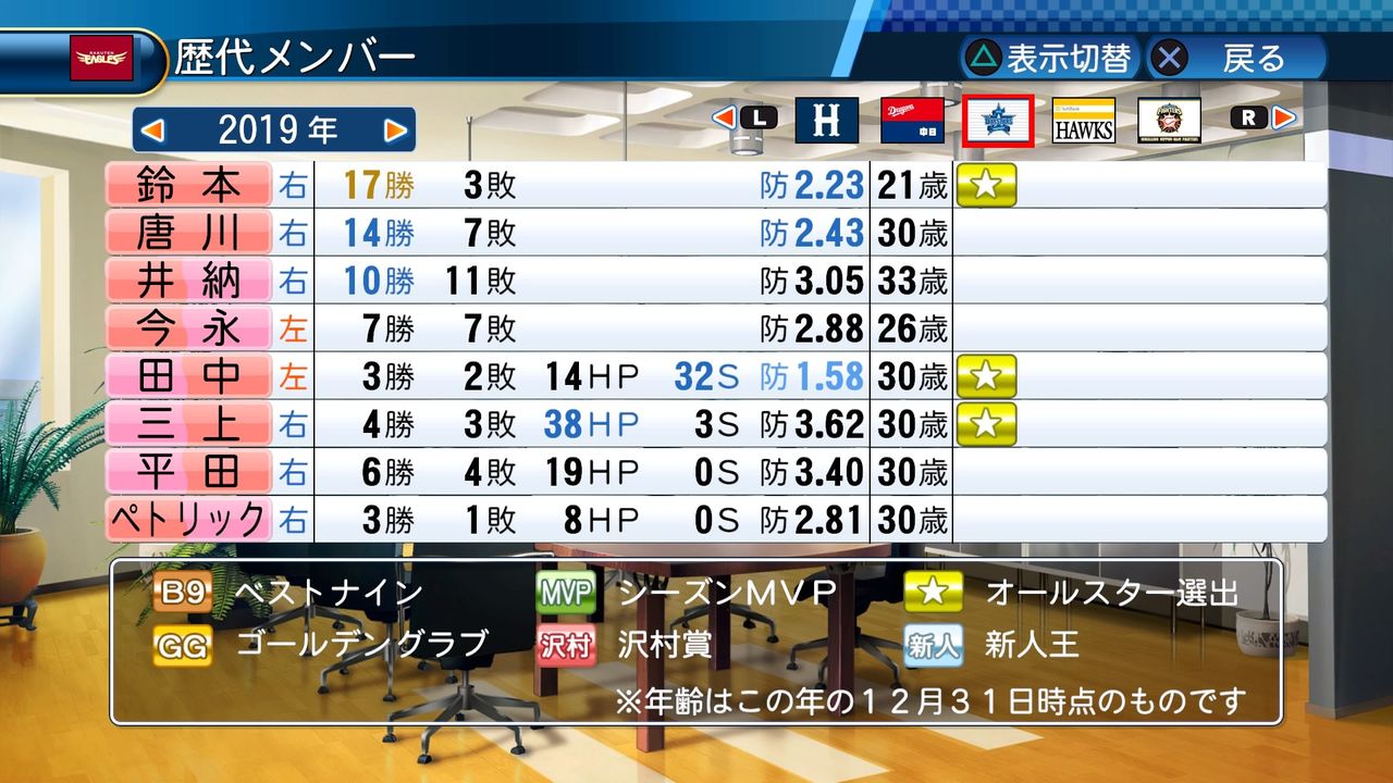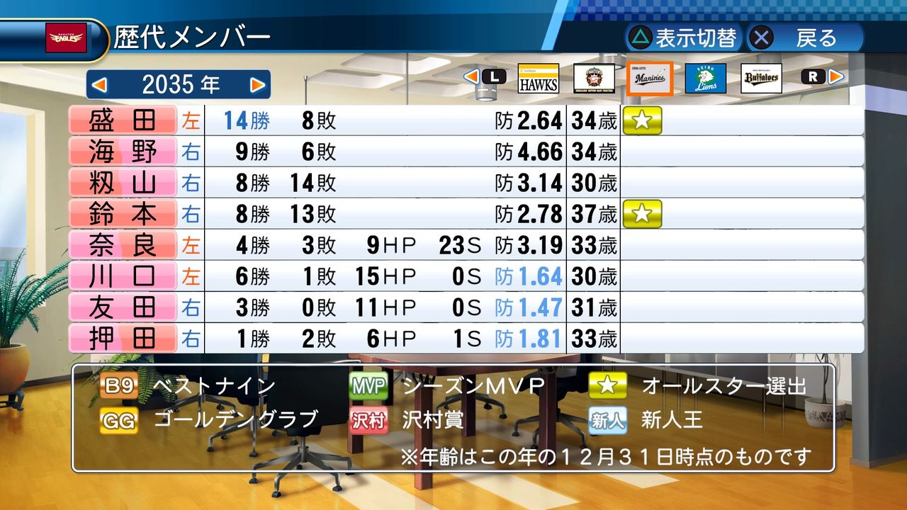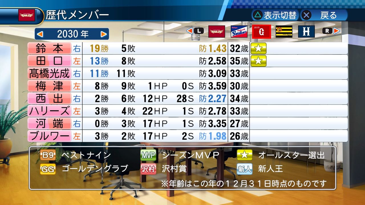 勝率1位投手 7回(2019、2021、2023、2028、2030、2031、2033)