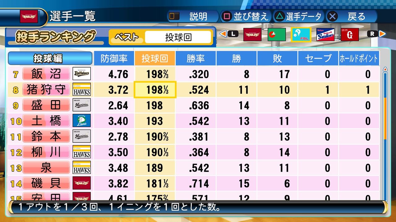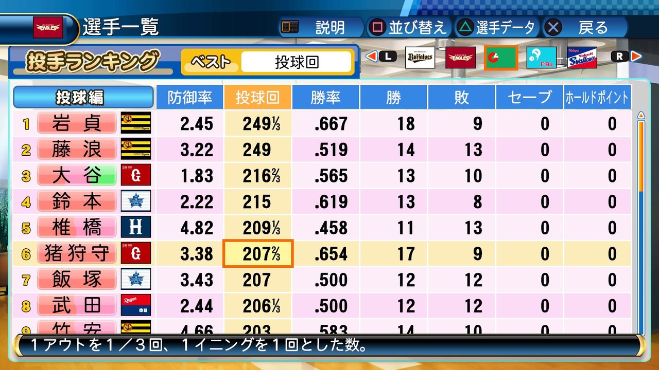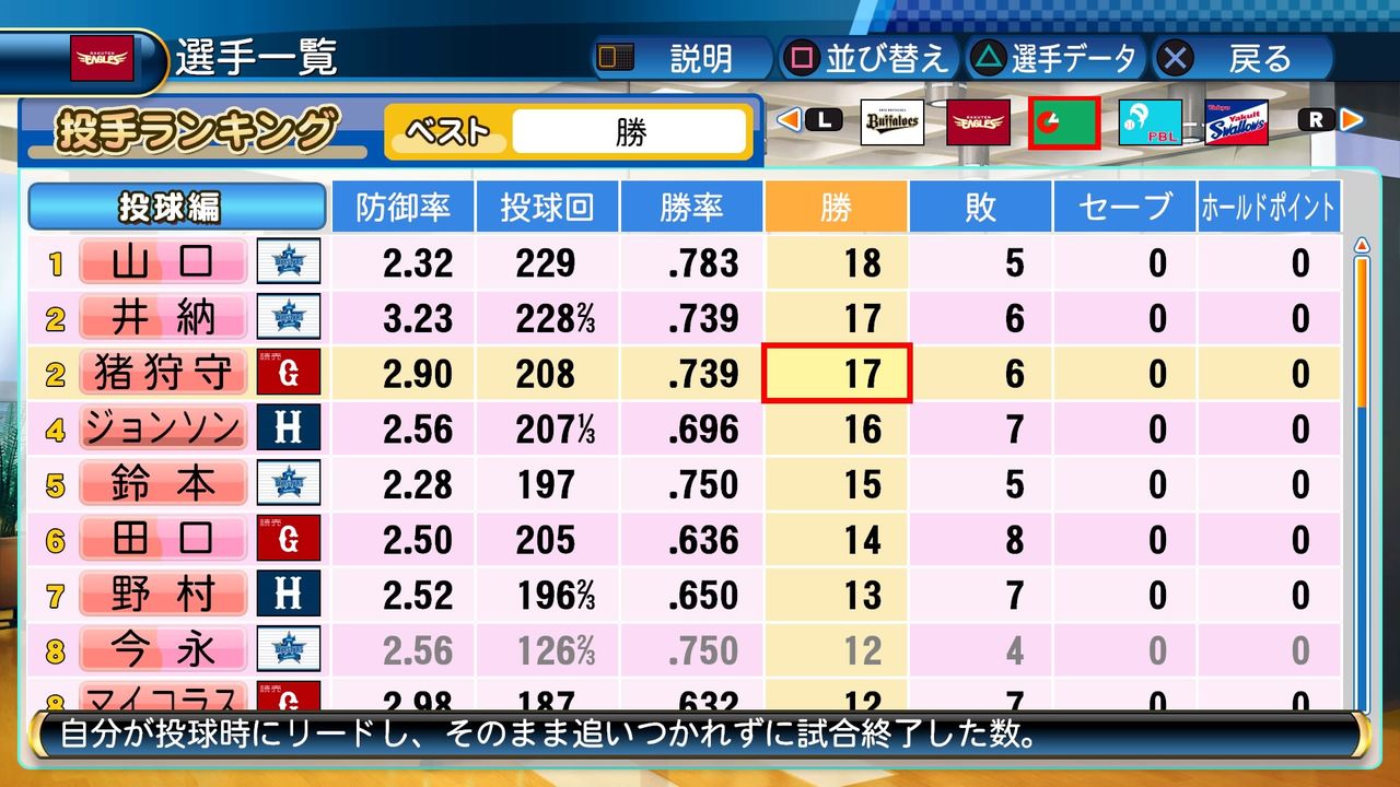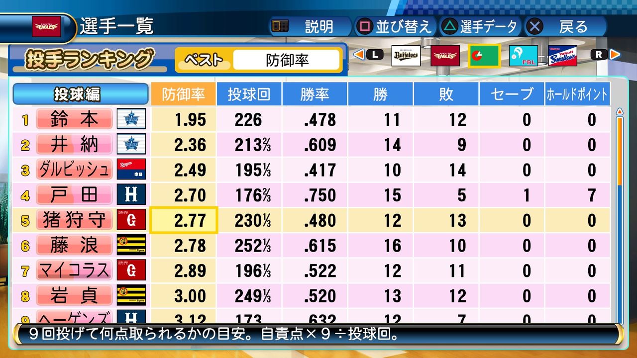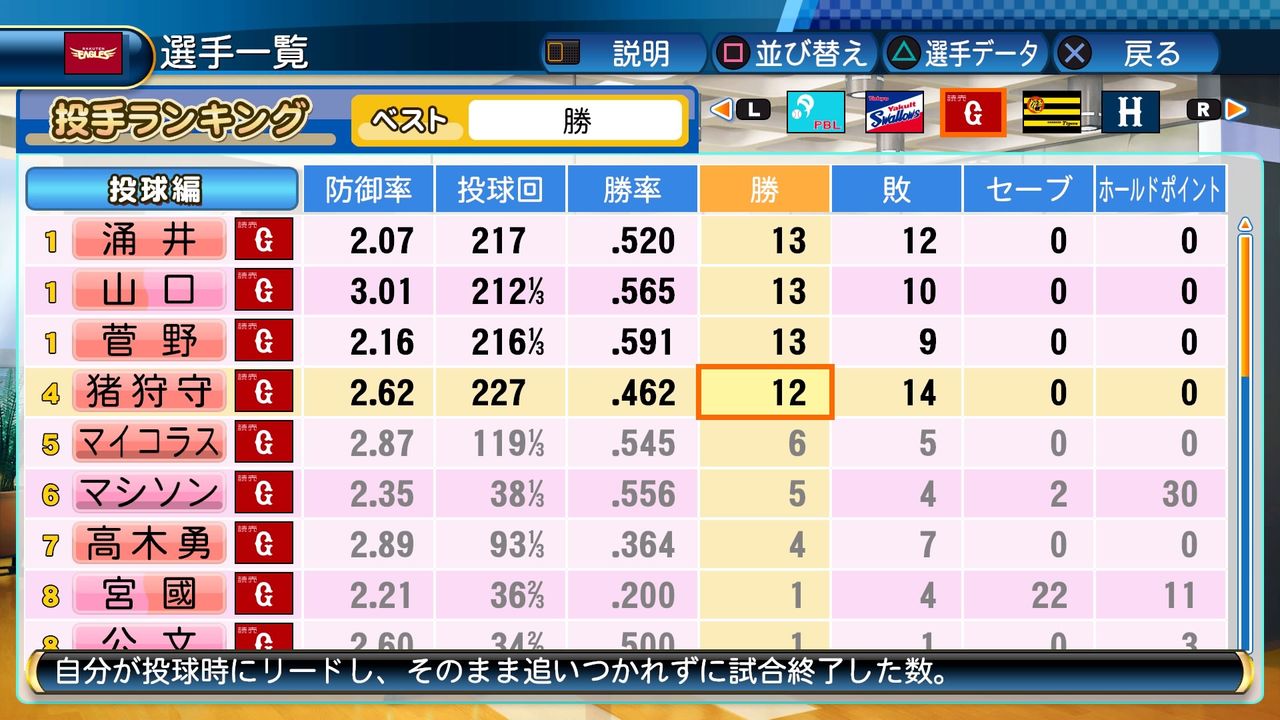 猪狩は防御率の割に勝ち星に恵まれず、菅野選手と共に不遇なエースとなった。