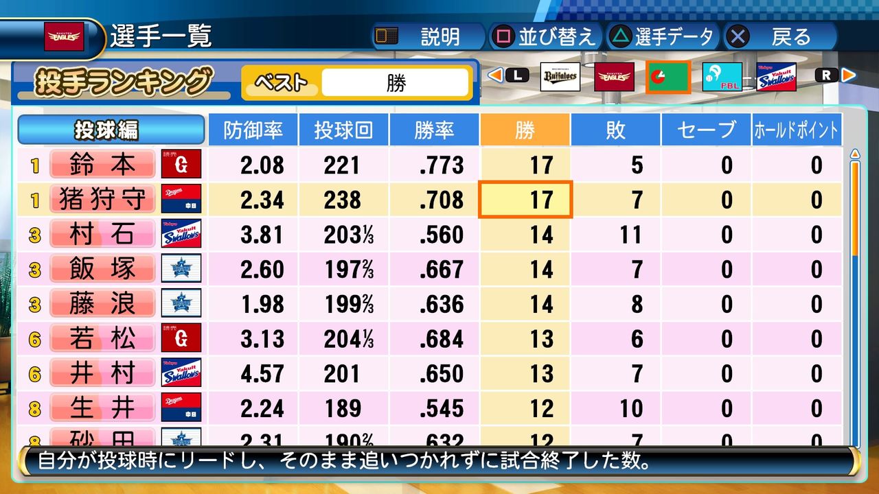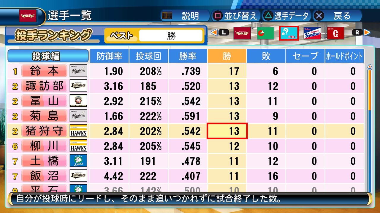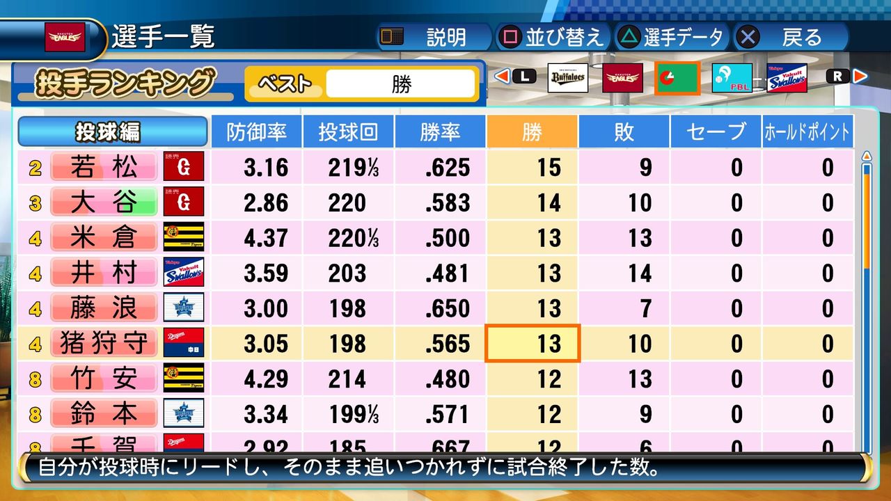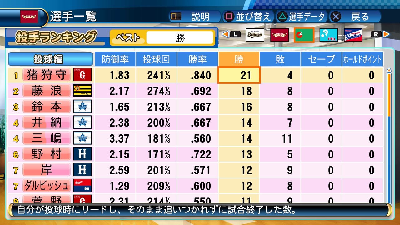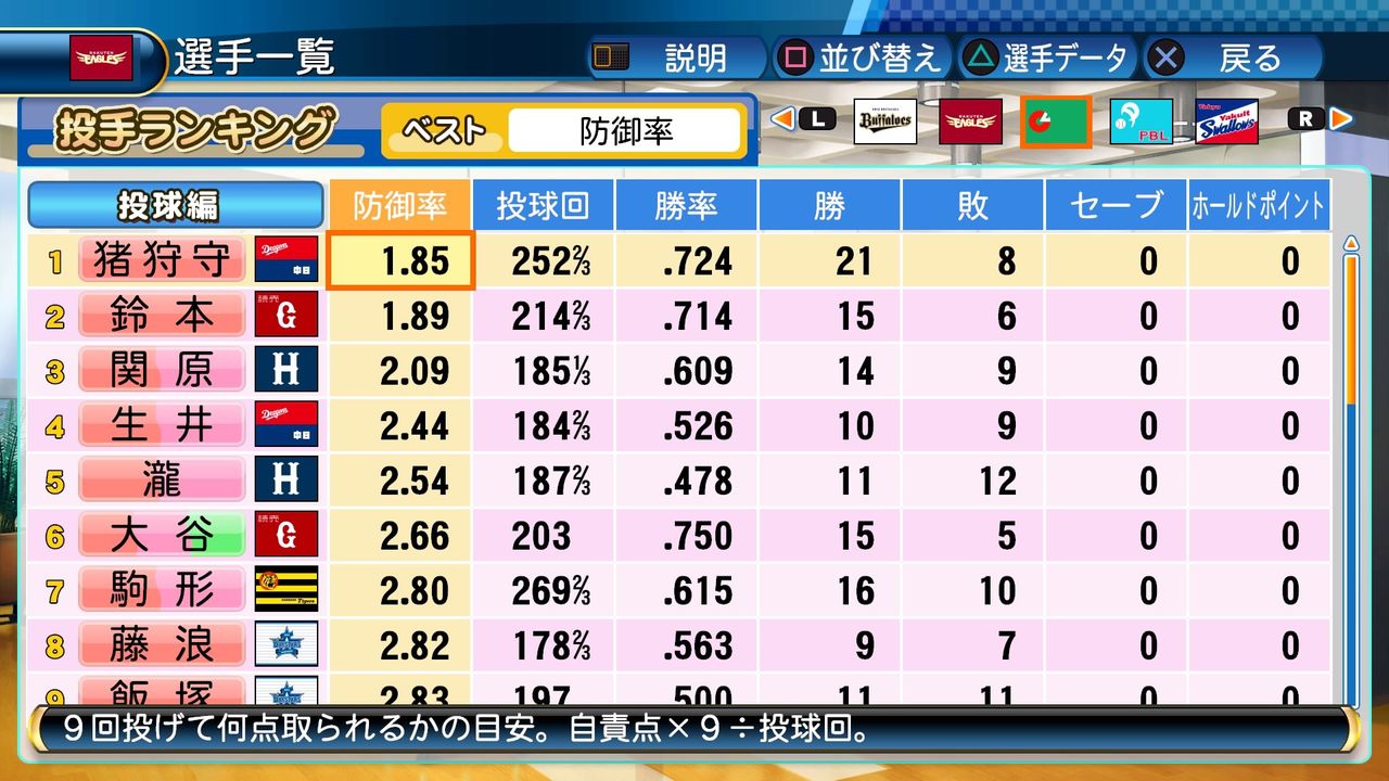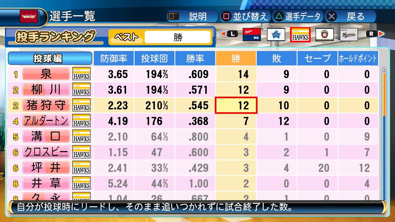 猪狩は防御率の割に勝ち星に恵まれず、菅野選手と共に不遇なエースとなった。