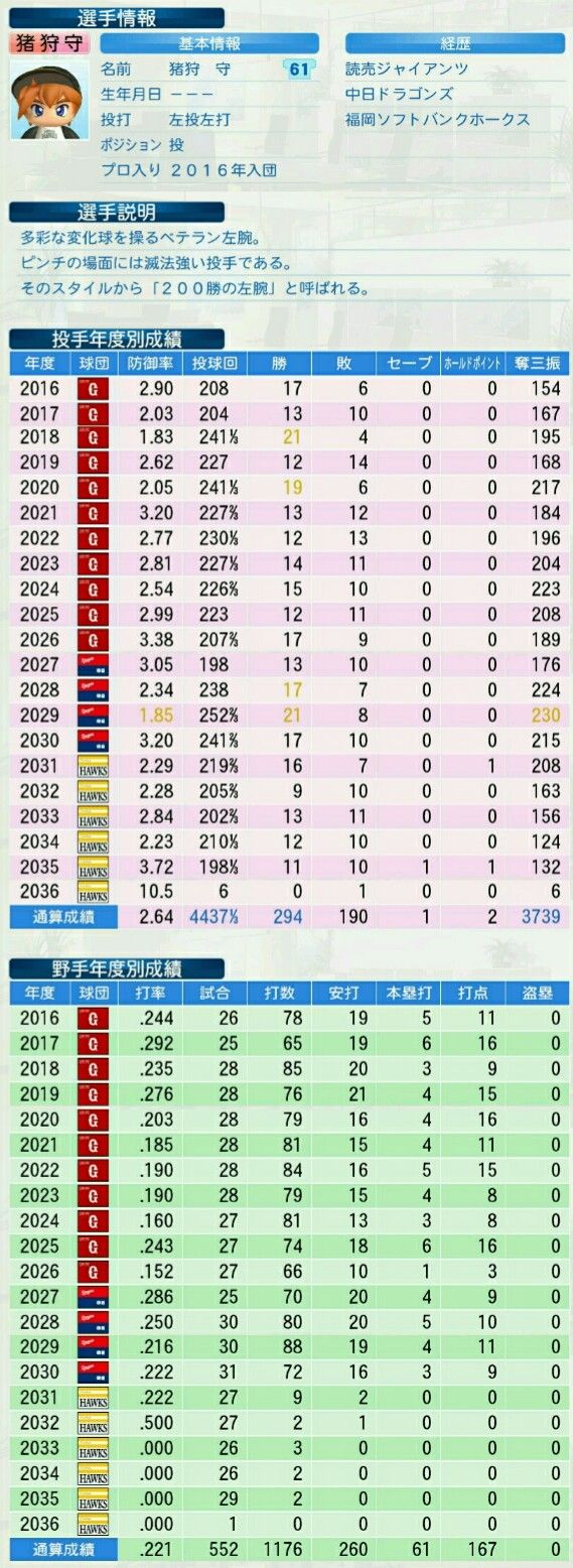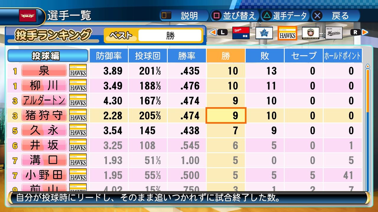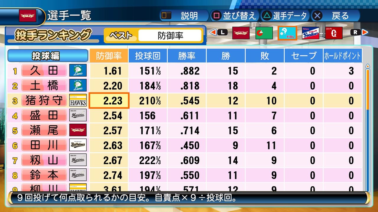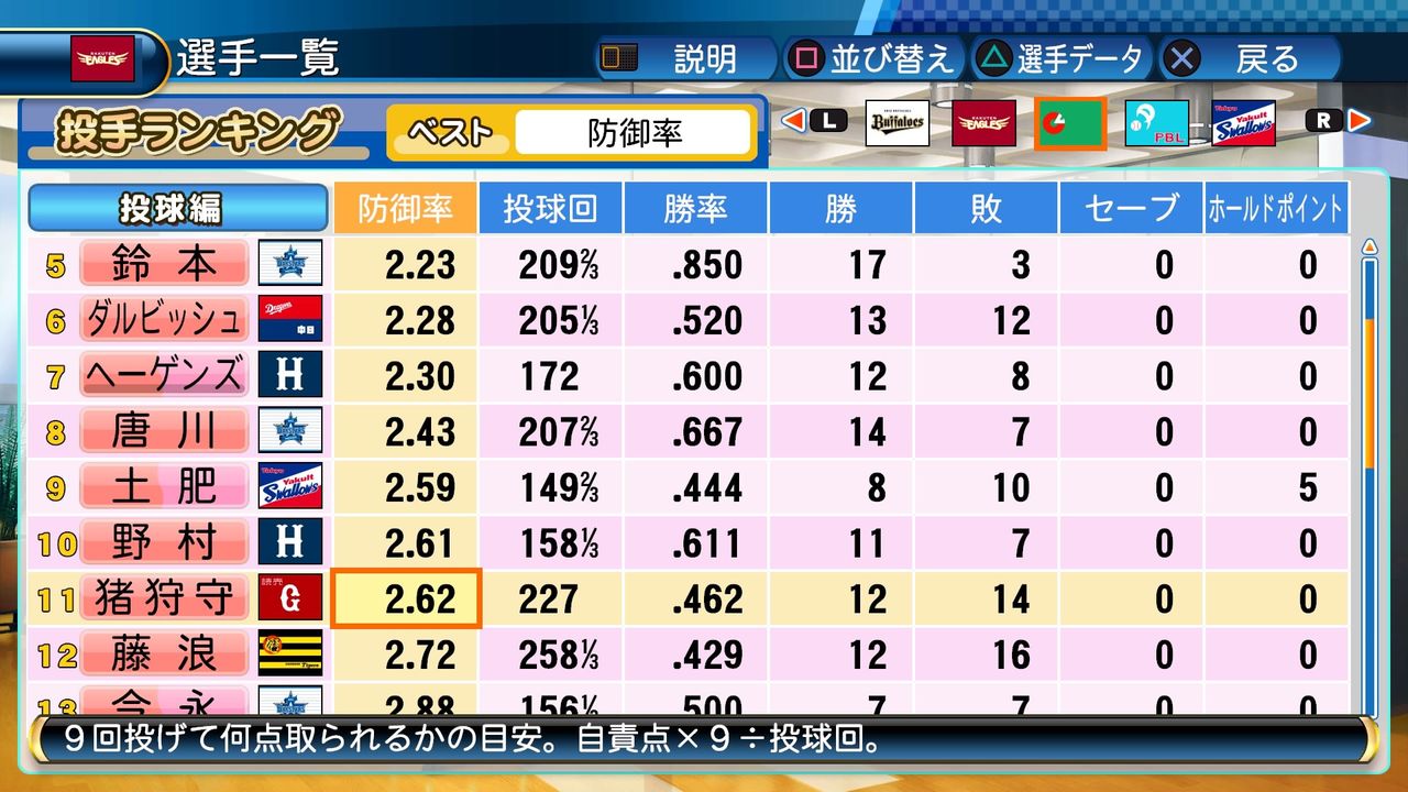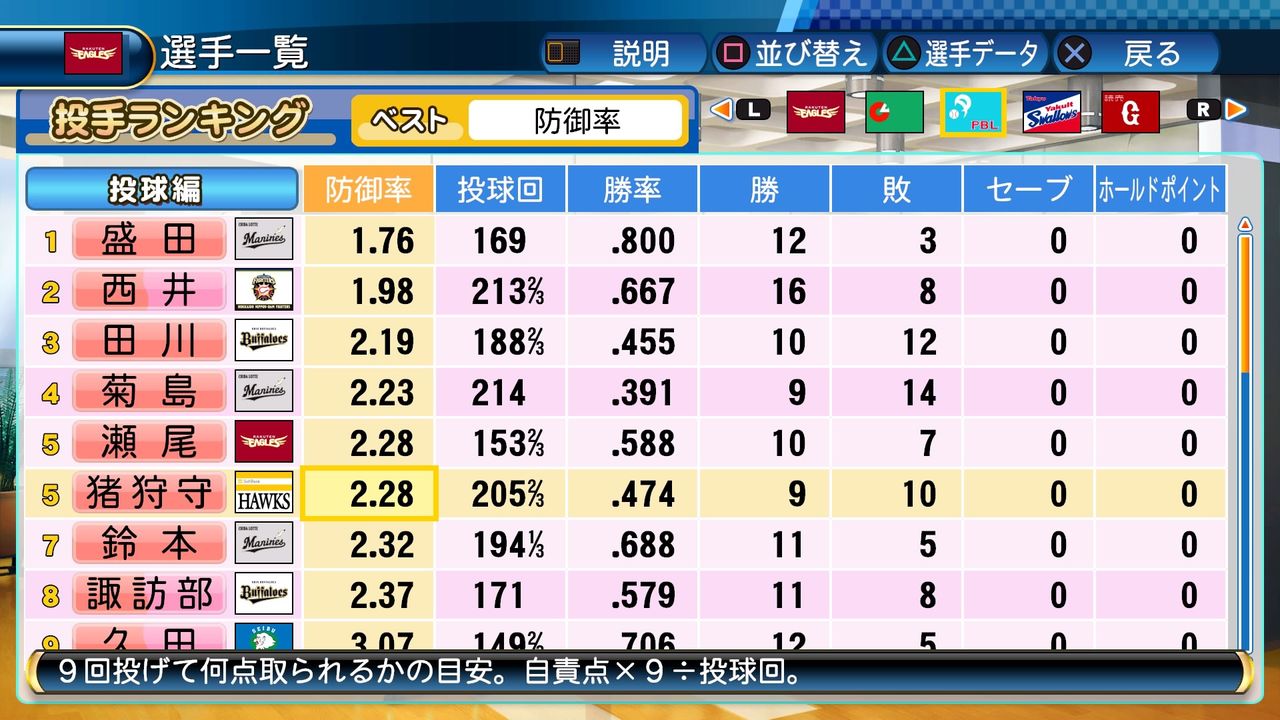 猪狩は防御率の割に勝ち星に恵まれず、菅野選手と共に不遇なエースとなった。