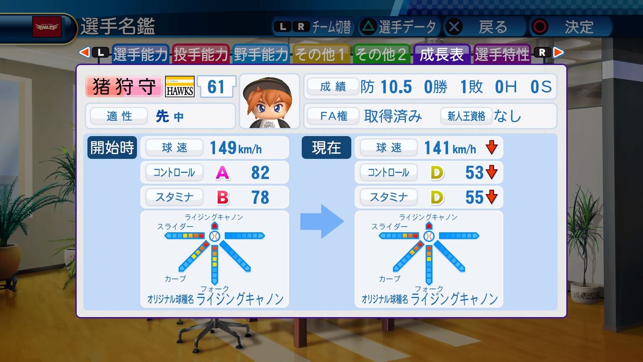 昔のまっもは尻上がり、ノビ、ジャイロ、威圧感、リリース、ピンチと特殊モリモリだったのにね。フォークが1増えて、得能を軒並み奪い取るとかおかしいでホンマ。
