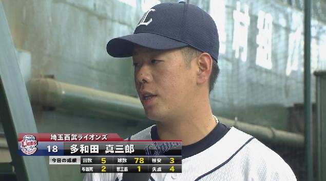 多和田 5回 78球 3安 1K 2四 自責4