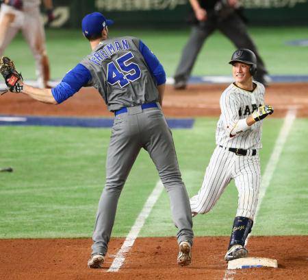 捕手でも攻めの走塁を忘れない侍の鑑