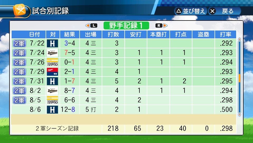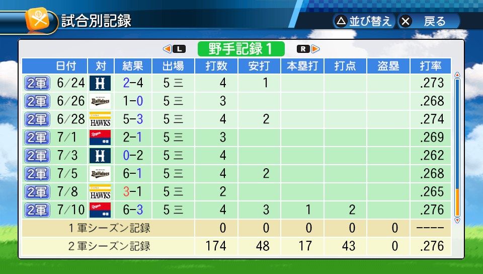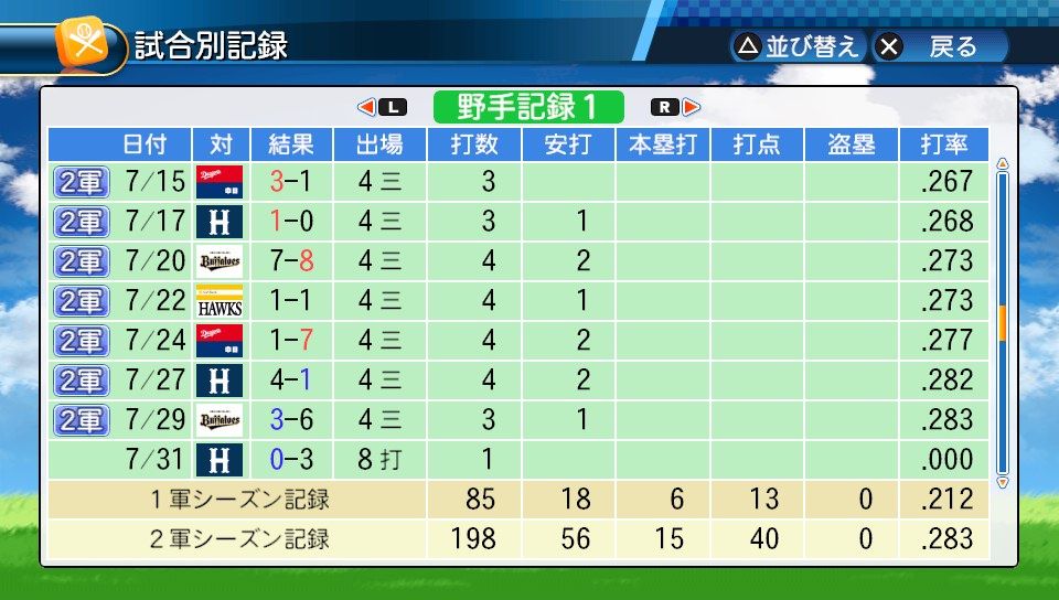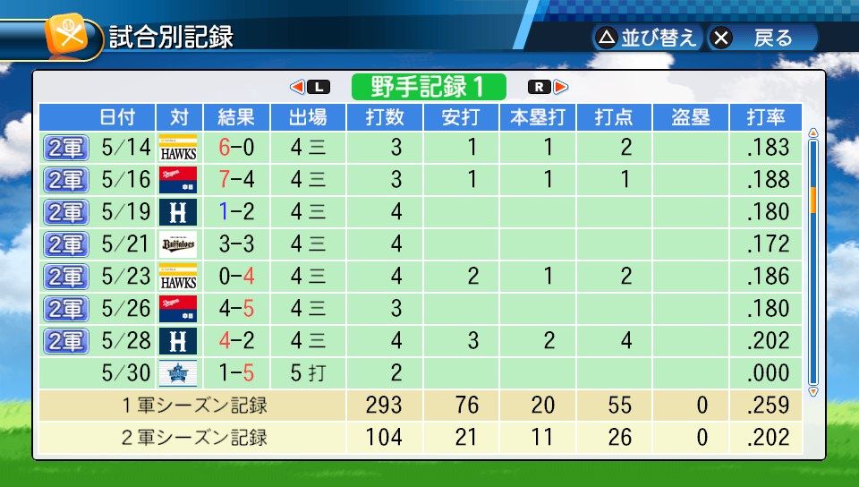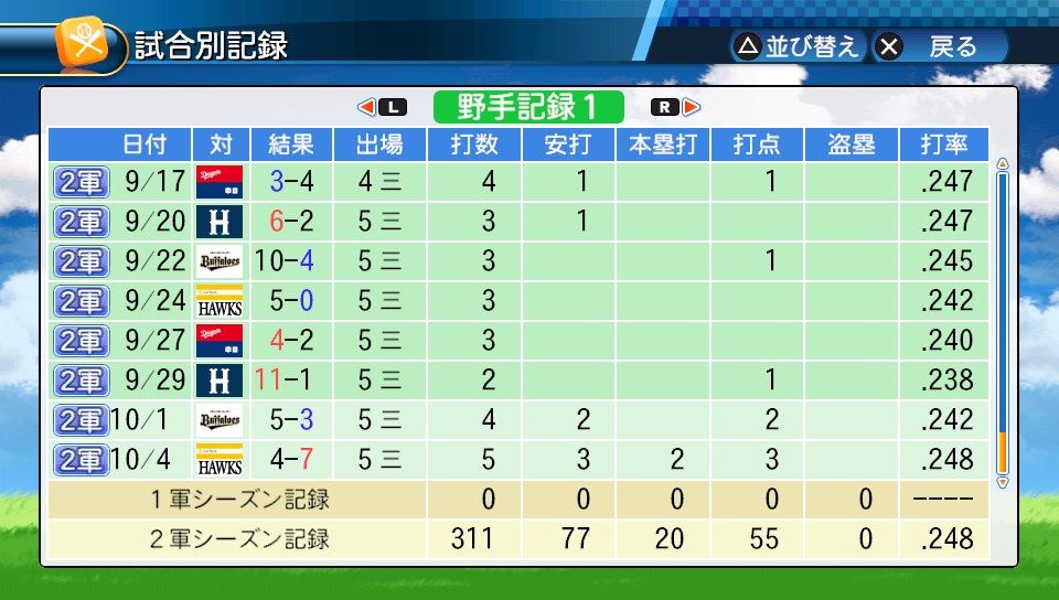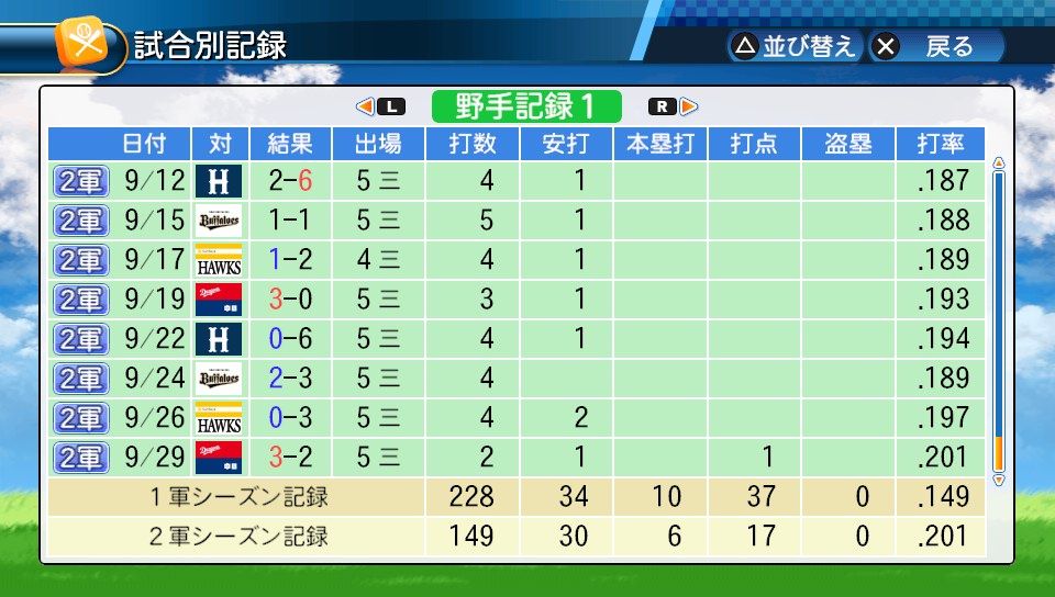 弾4FSESDG 送球F 三振 逆境○ エラー