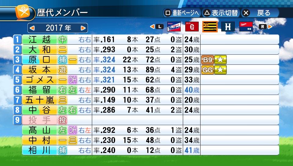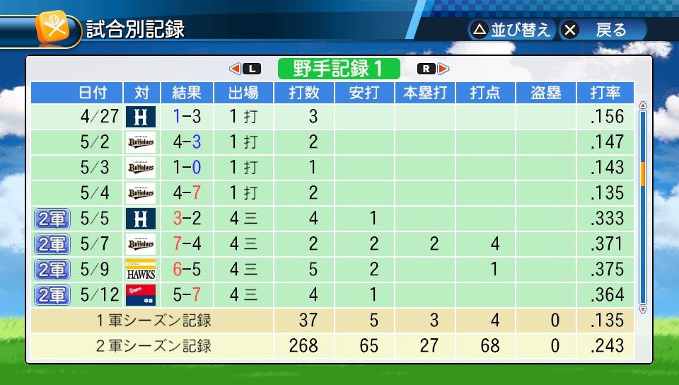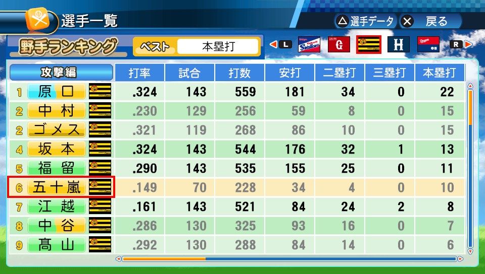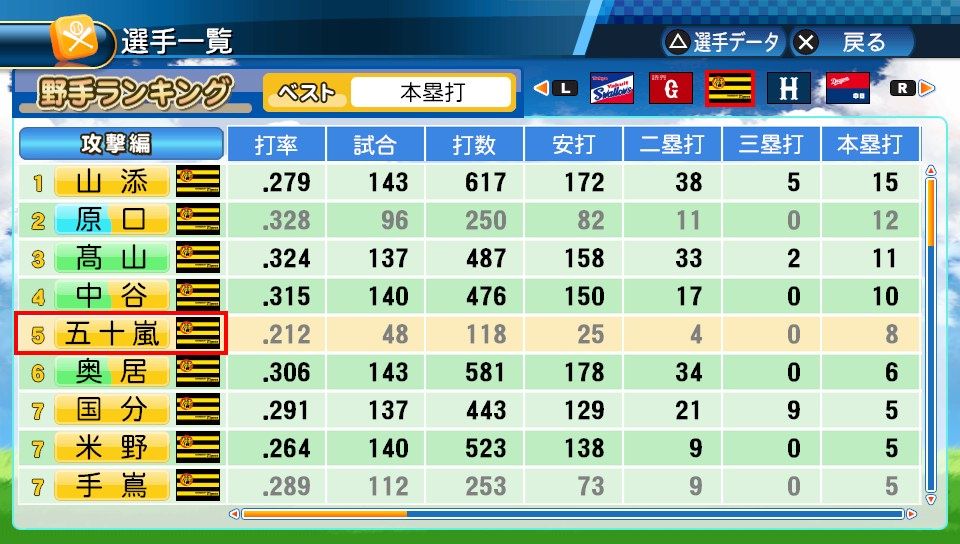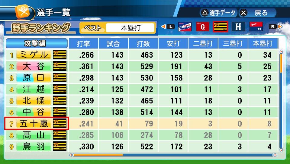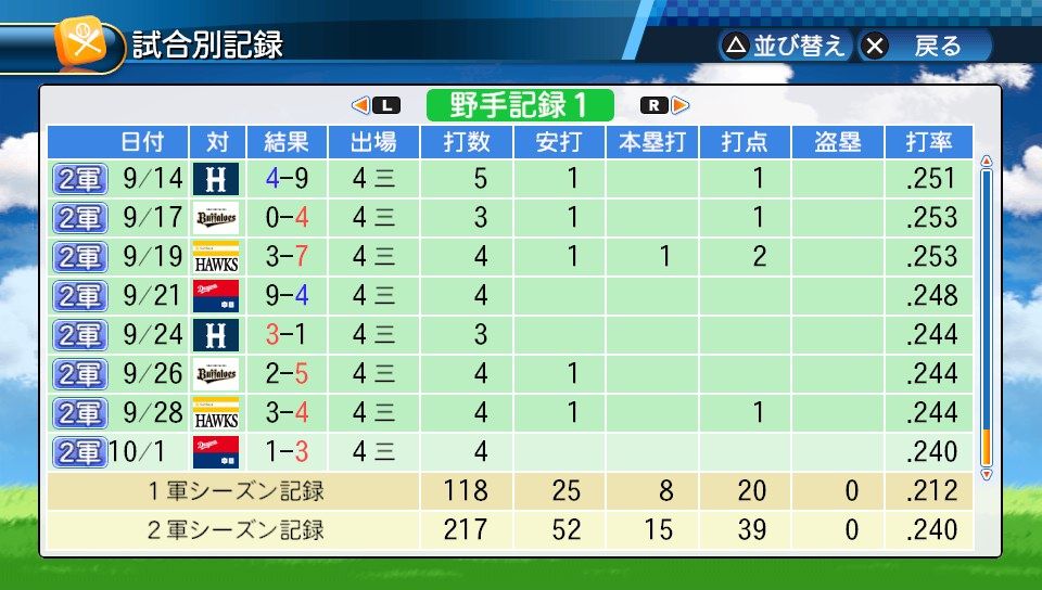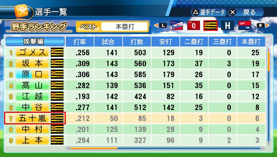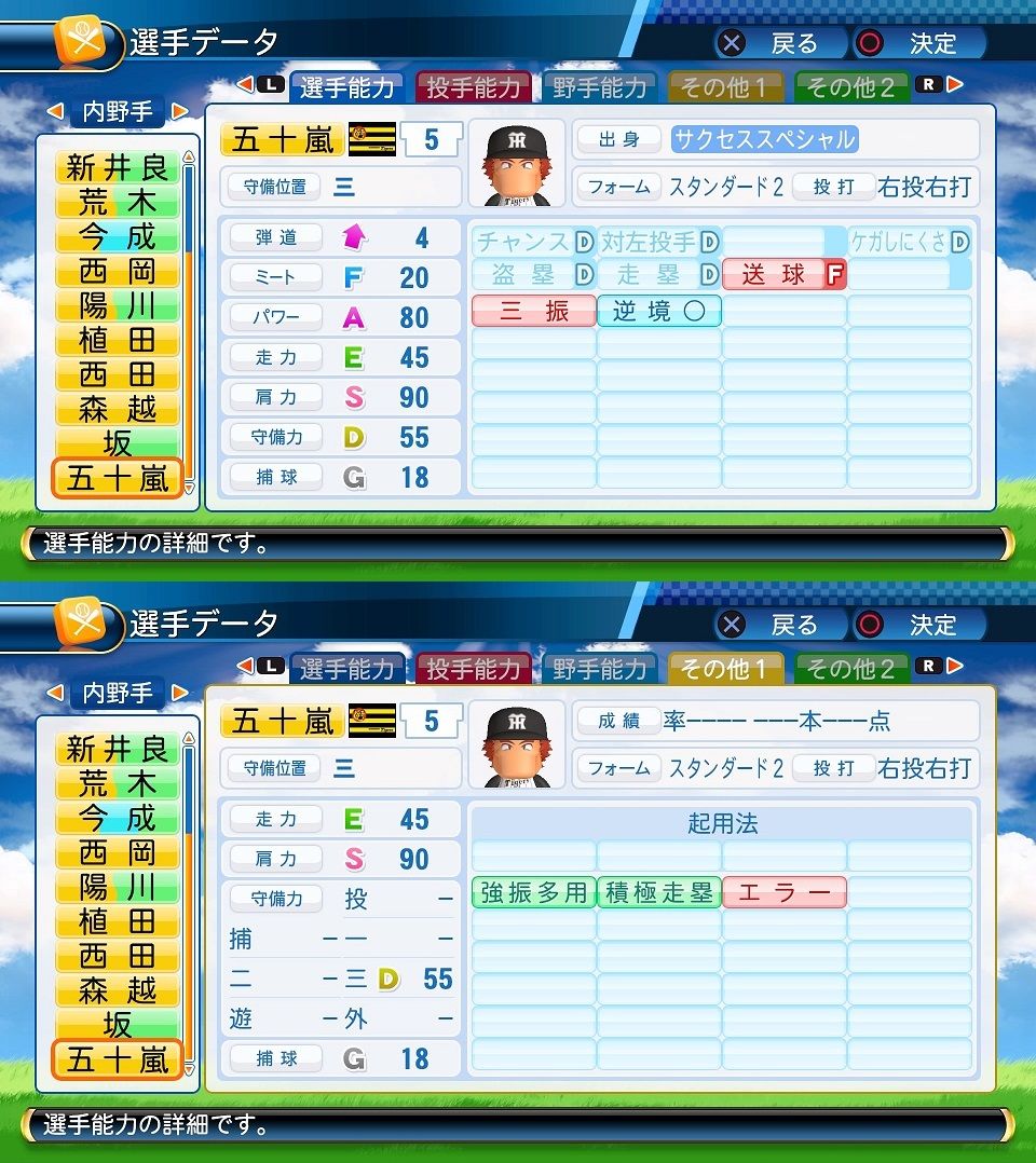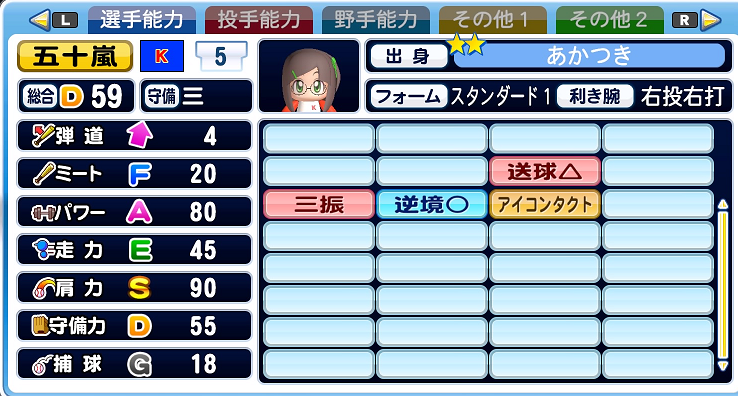 弾4FSESDG 送球F 三振 逆境○ 代打○ エラー