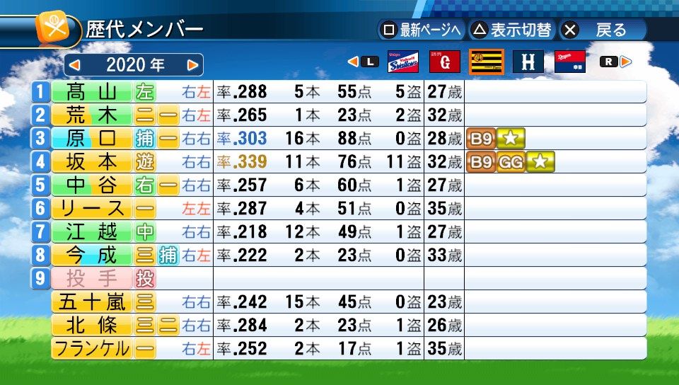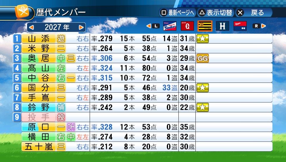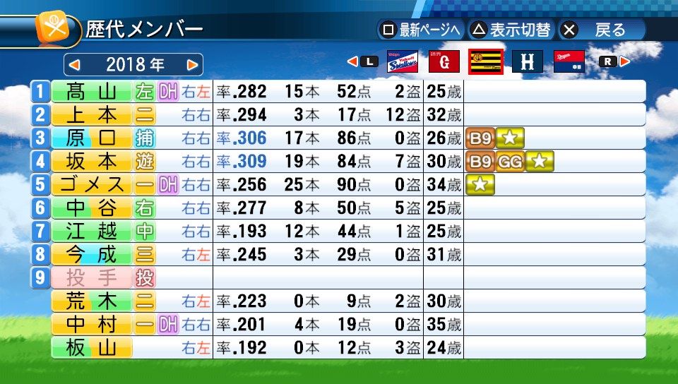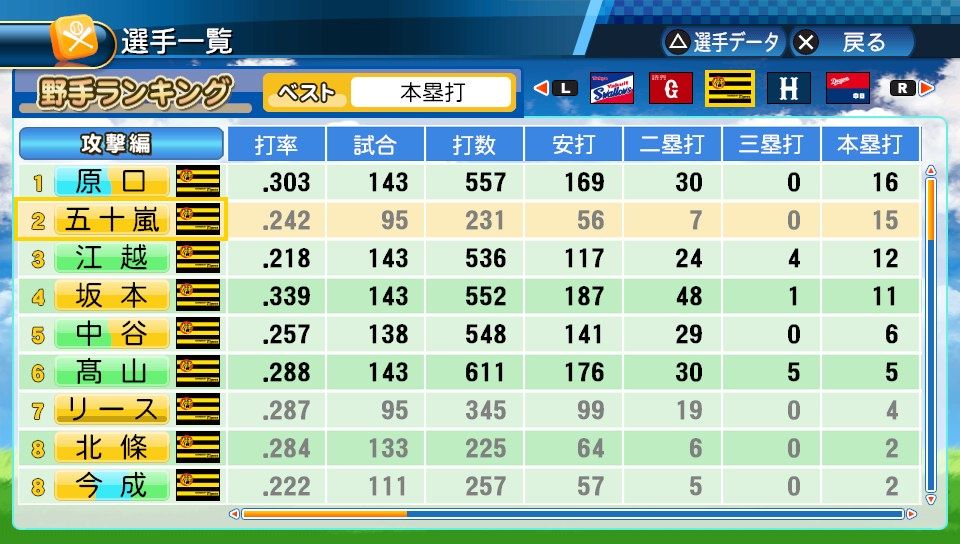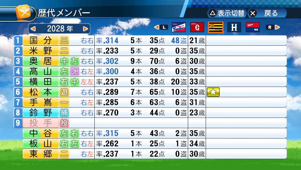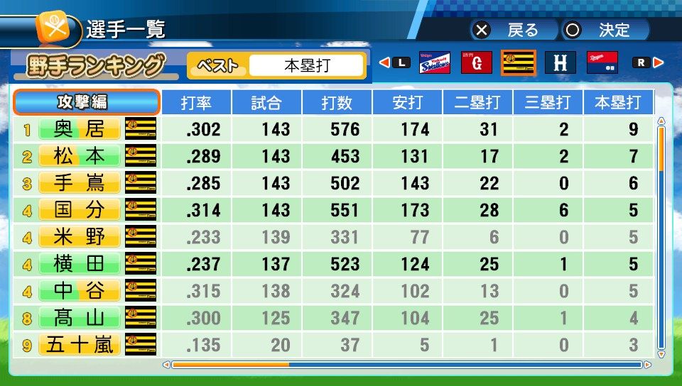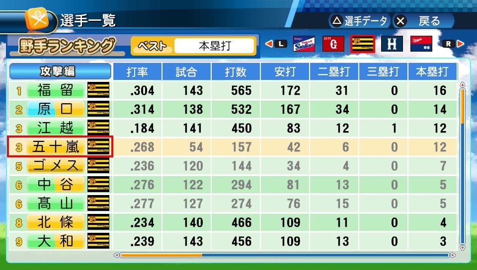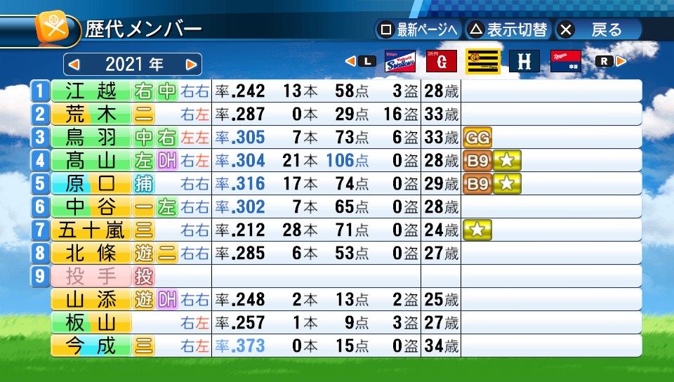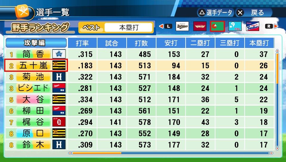 弾4FSESDG 送球F 三振 逆境○ 代打○ エラー