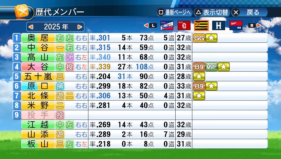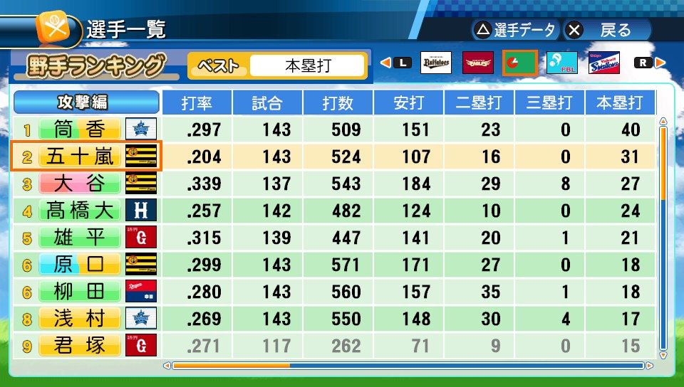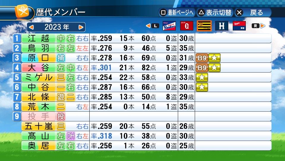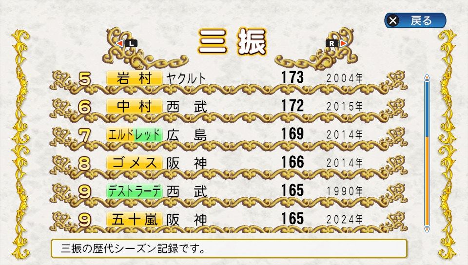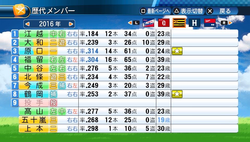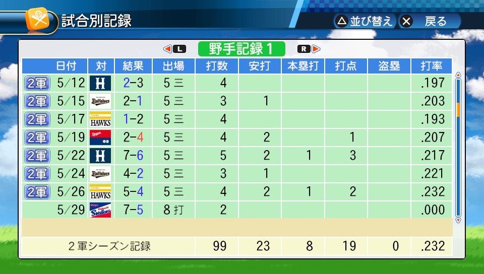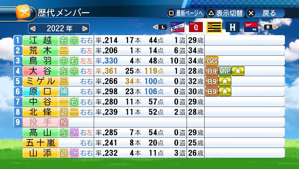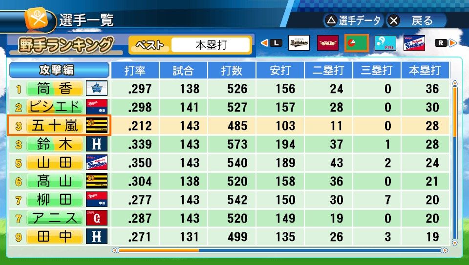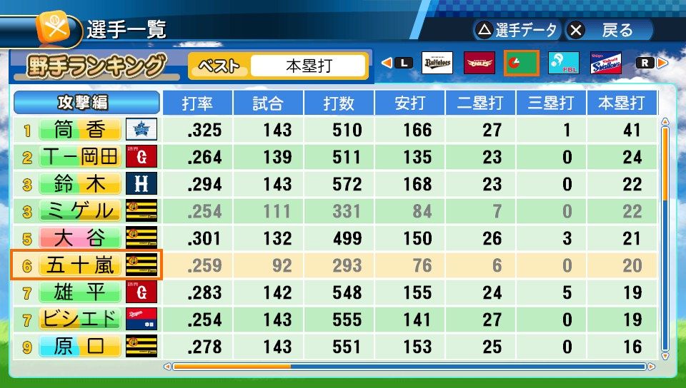 弾4FSESDG 送球F 三振 逆境○ 代打○ エラー