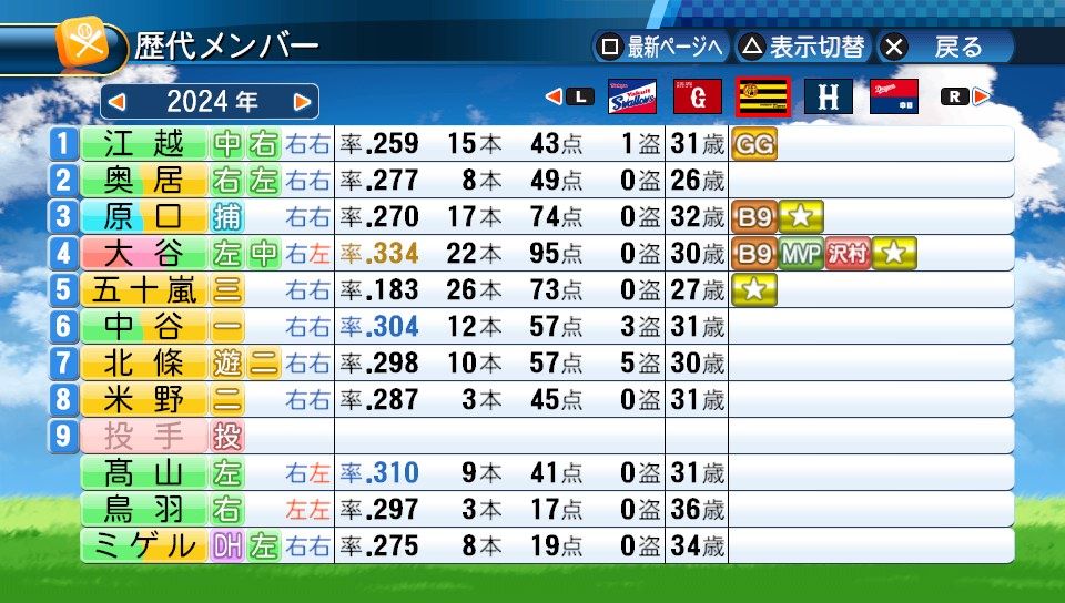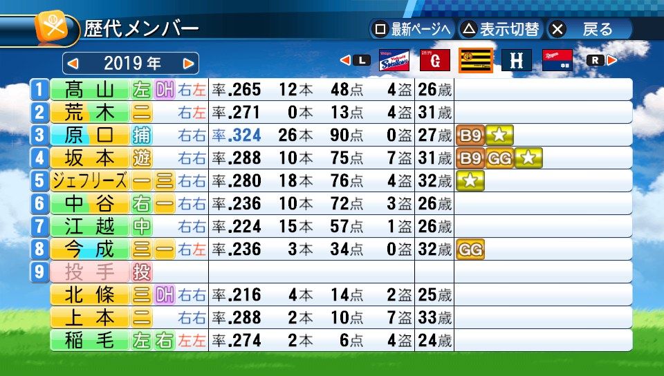 弾4FSESDG チャンスC 送球F 三振 満塁男 逆境○ 代打○ エラー