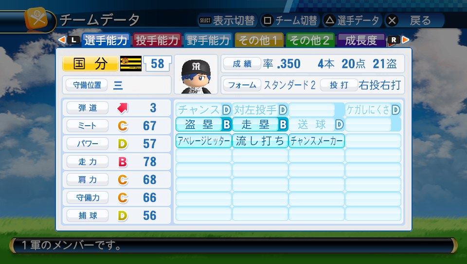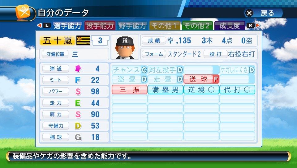 弾4FSESDG チャンスC 送球F 三振 逆境○ 代打○ エラー