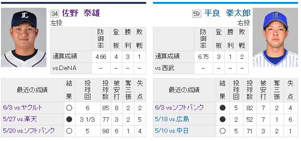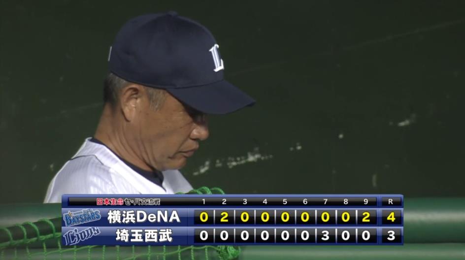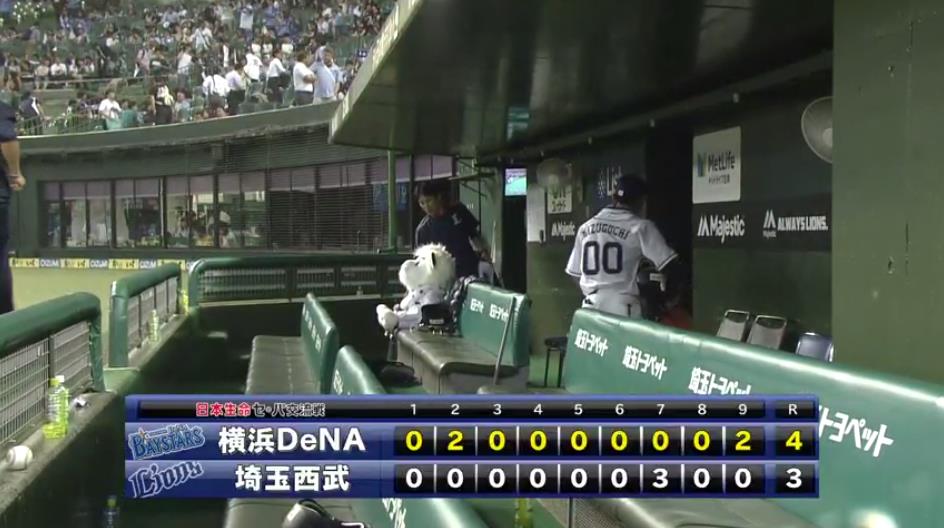 DeNAが逆転勝ち。二回に田中浩の移籍後1号となる2ランで先制。七回に逆転を許したが、1点を追う九回に宮崎の左越え2ランで試合を引っ繰り返した。3番手のパットンが3勝目。西武は抑えの増田が痛打を浴び、連勝が6で止まった。