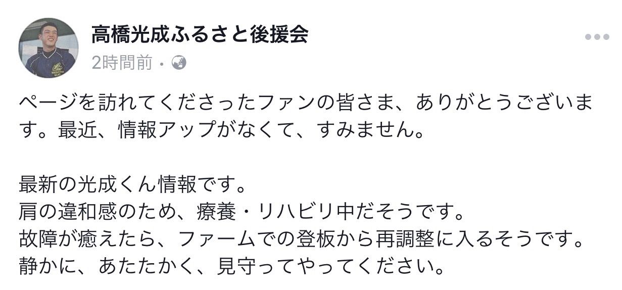 きょうあすじゃなくて5年後10年後をしょってたつ選手や。焦らずゆっくり治してや。