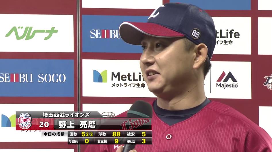 ライオンズの先発は野上
