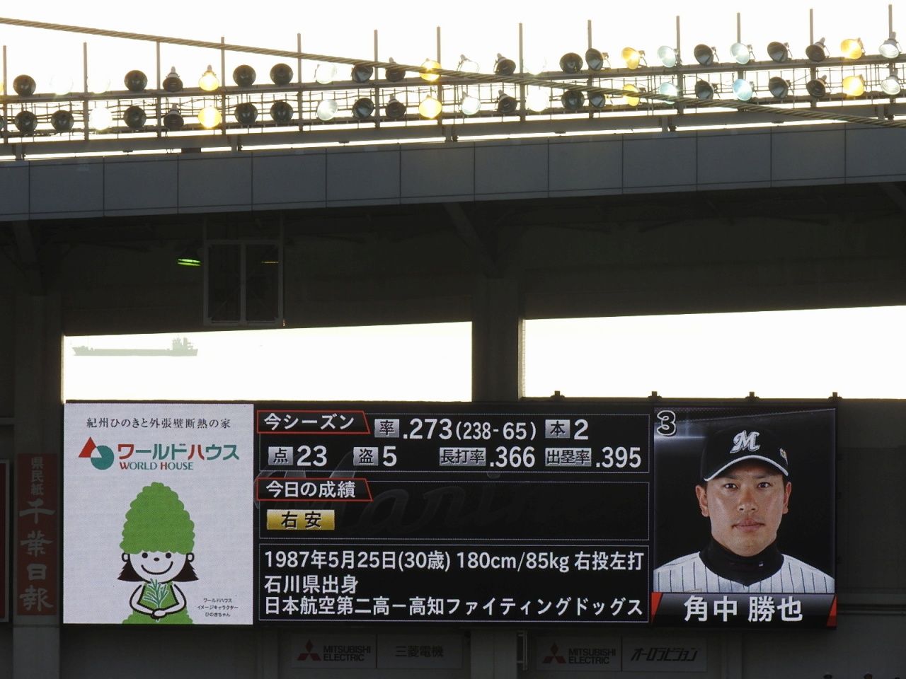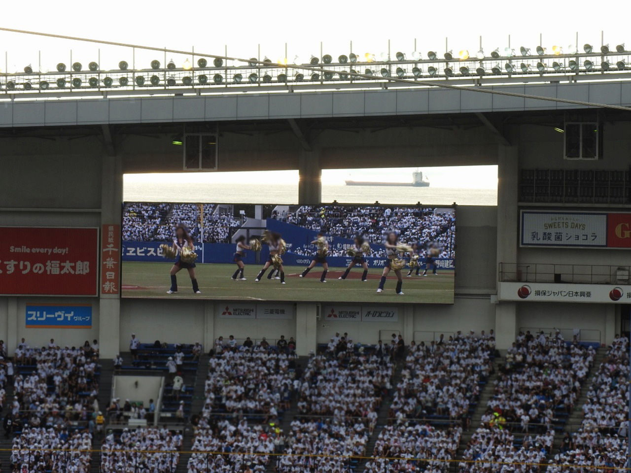 外野応援席の上に設置されたサブビジョンは