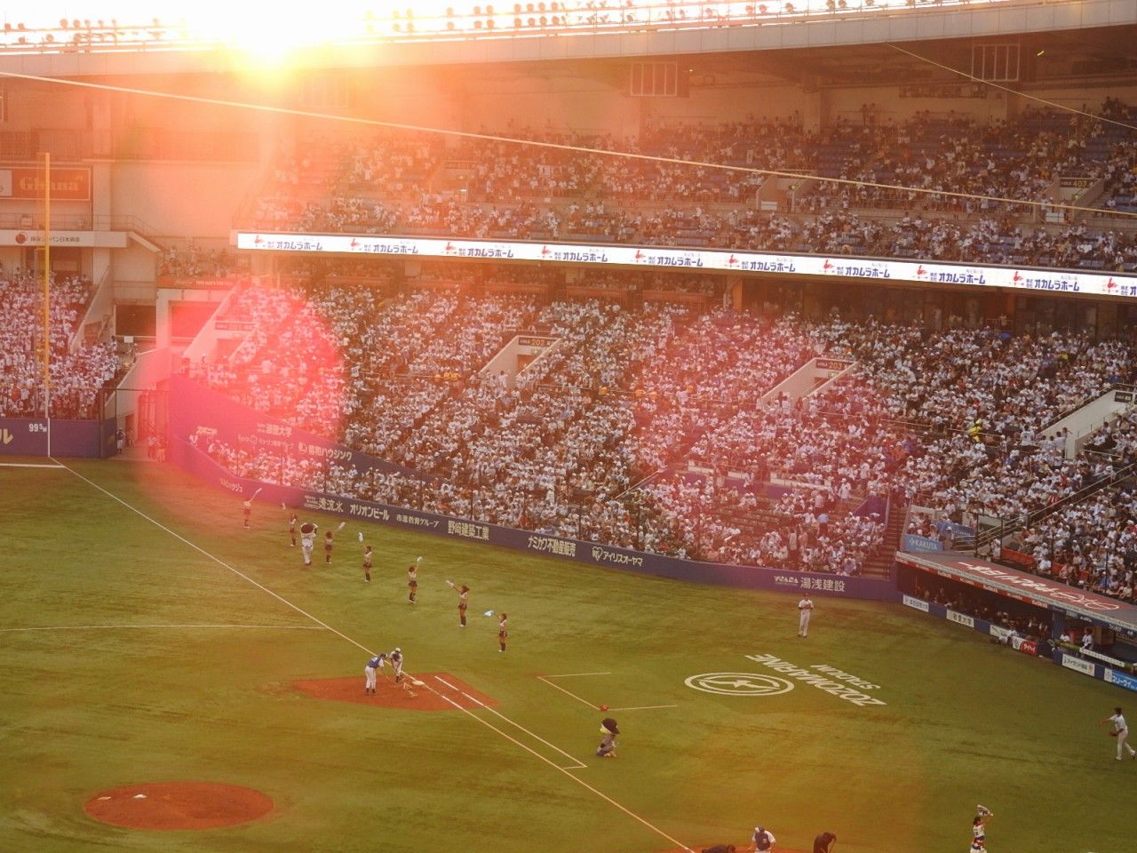 回が進むと強烈な西日が三塁側客席を襲う。