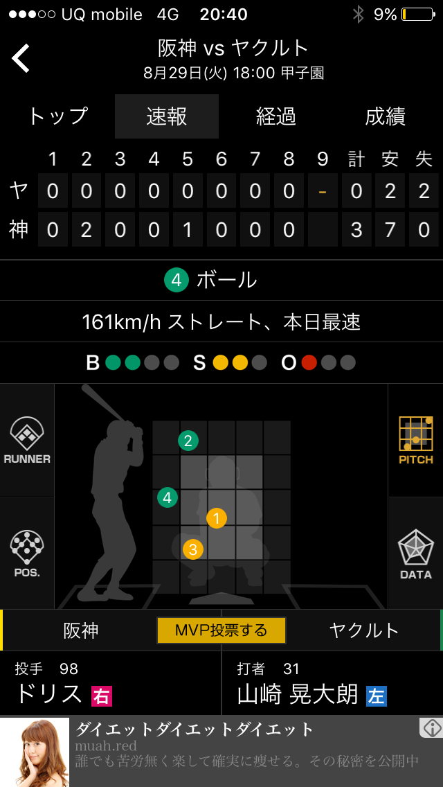 サイドスローでこんなに速い球よくおかわりファウルにできたな