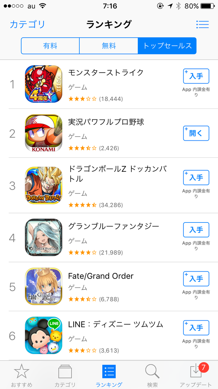 やっぱりその時の1位はモンスト?