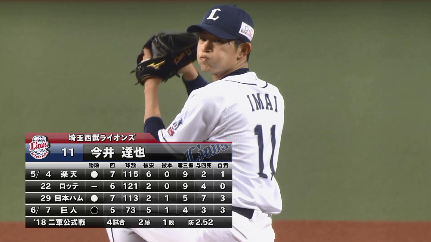 バジリスクに調子を良くした今井、6回を1失点(自責0)で堂々の勝ち投手。