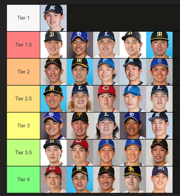 ここに上沢が入るとしたらどの位置なのか気になるTier2.5か3.0辺りなんだろうか